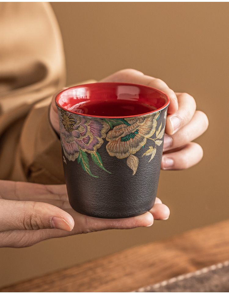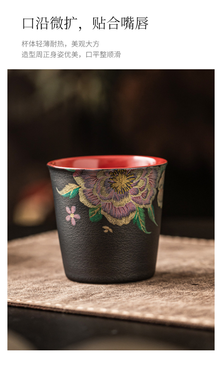 - Cốc trà hoa nướng Kesi cốc chủ nhân cao cấp gốm sứ cốc ống thẳng Mohua lộng lẫy cốc uống trà sang trọng nhẹ gia dụng