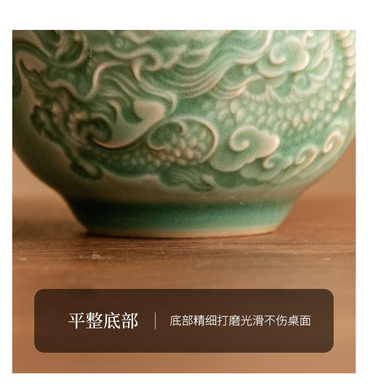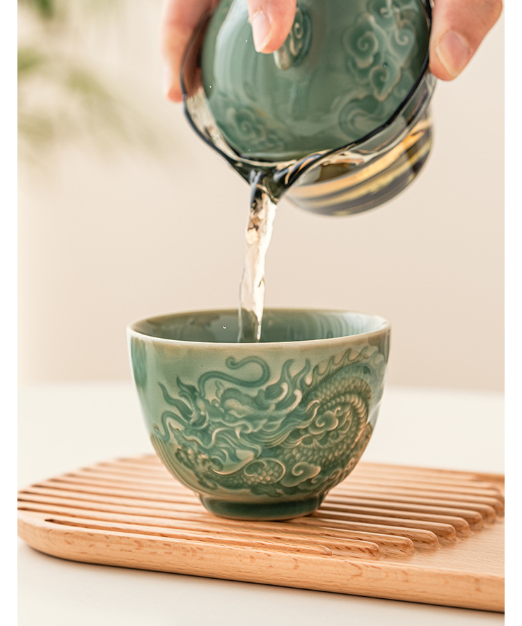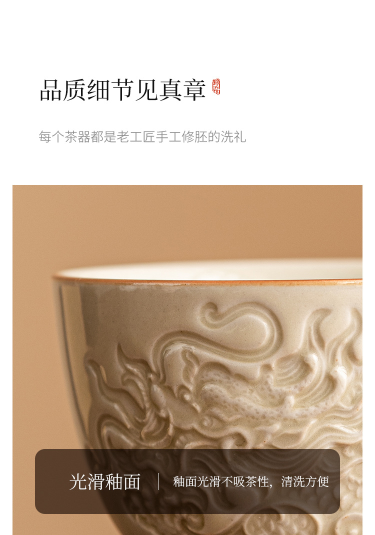 Cốc trà họa tiết rồng chạm nổi tráng men dày đặc, cốc chủ nhân, cốc trà Kung Fu Trung Quốc, cốc bộ trà gốm sứ đơn cao cấp