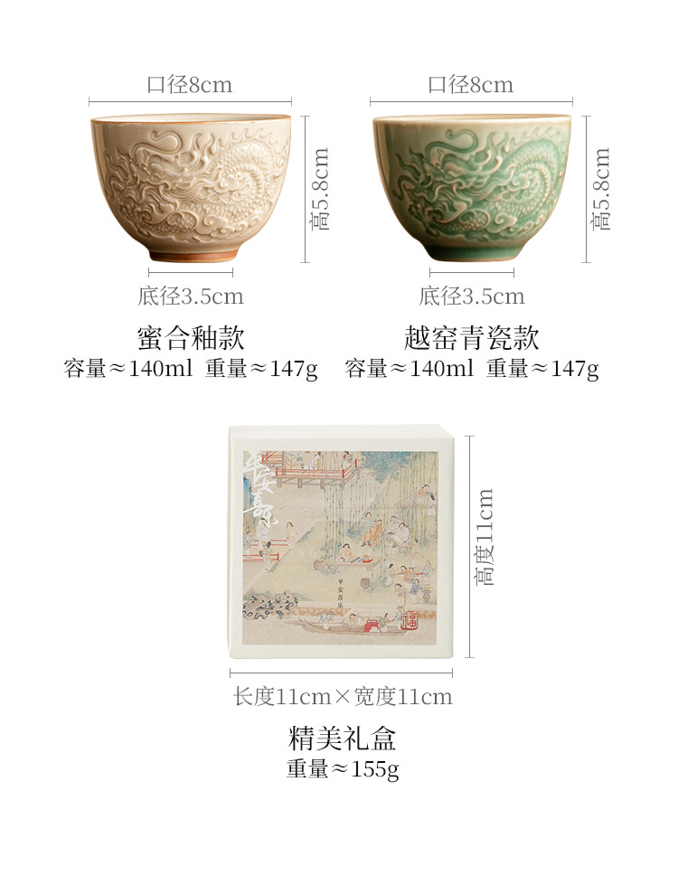 - Cốc trà họa tiết rồng chạm nổi tráng men dày đặc, cốc chủ nhân, cốc trà Kung Fu Trung Quốc, cốc bộ trà gốm sứ đơn cao cấp