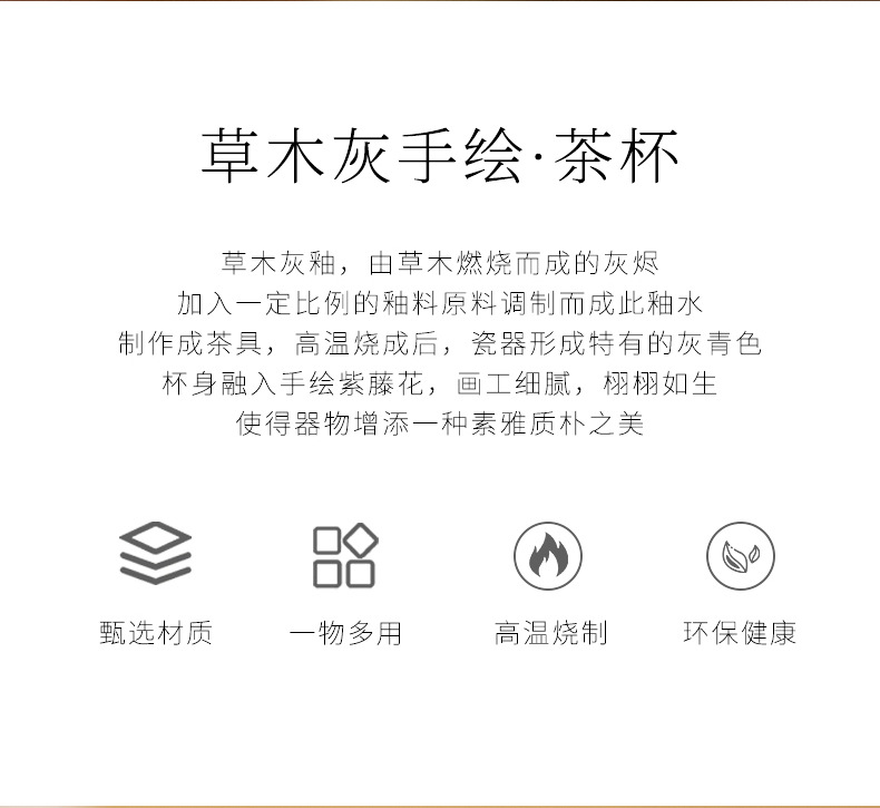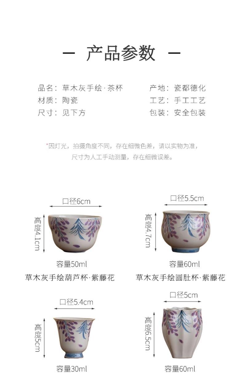 - Cốc trà hoa tử đằng vẽ tay cốc đơn men màu xám thực vật gia dụng gốm sứ công phu cốc trà cốc chủ nhân cốc nữ