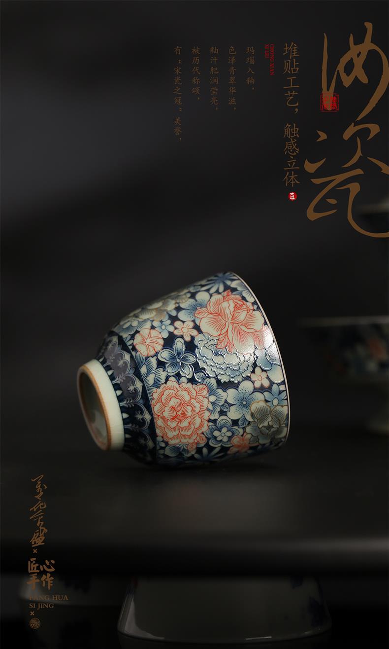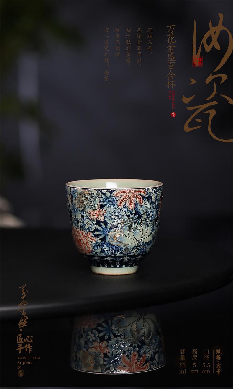 - Cốc trà Kung Fu gốm sứ hoa mẫu đơn chạm khắc vàng cổ điển cốc chủ nhân cốc đơn tách trà cốc cá nhân tách trà
