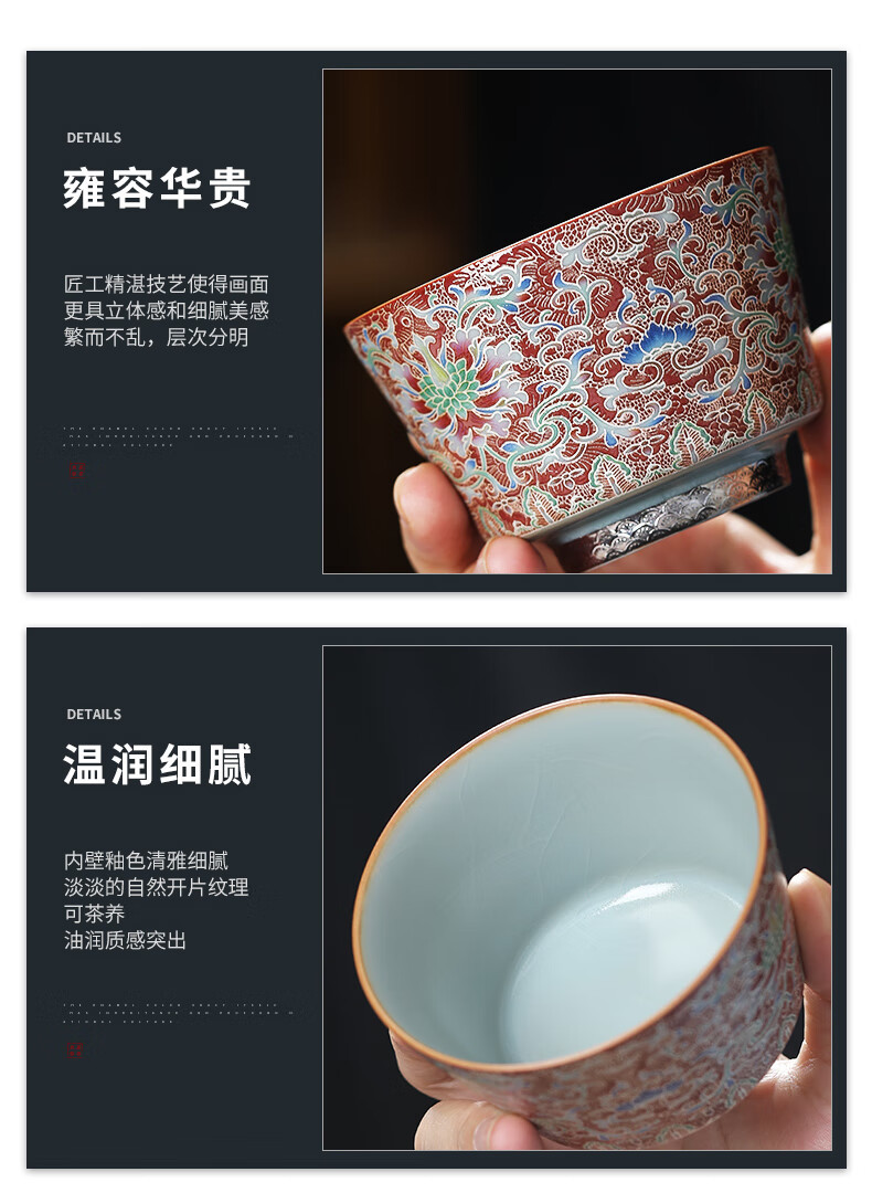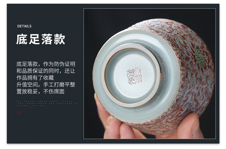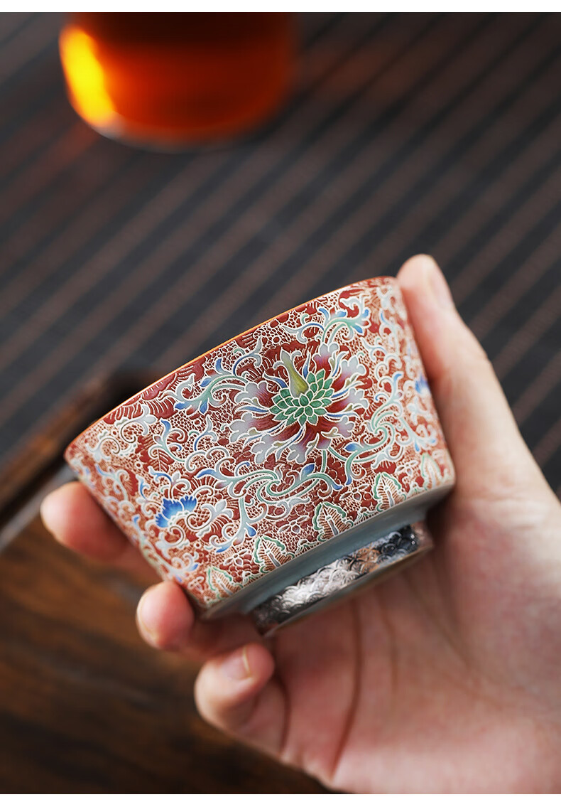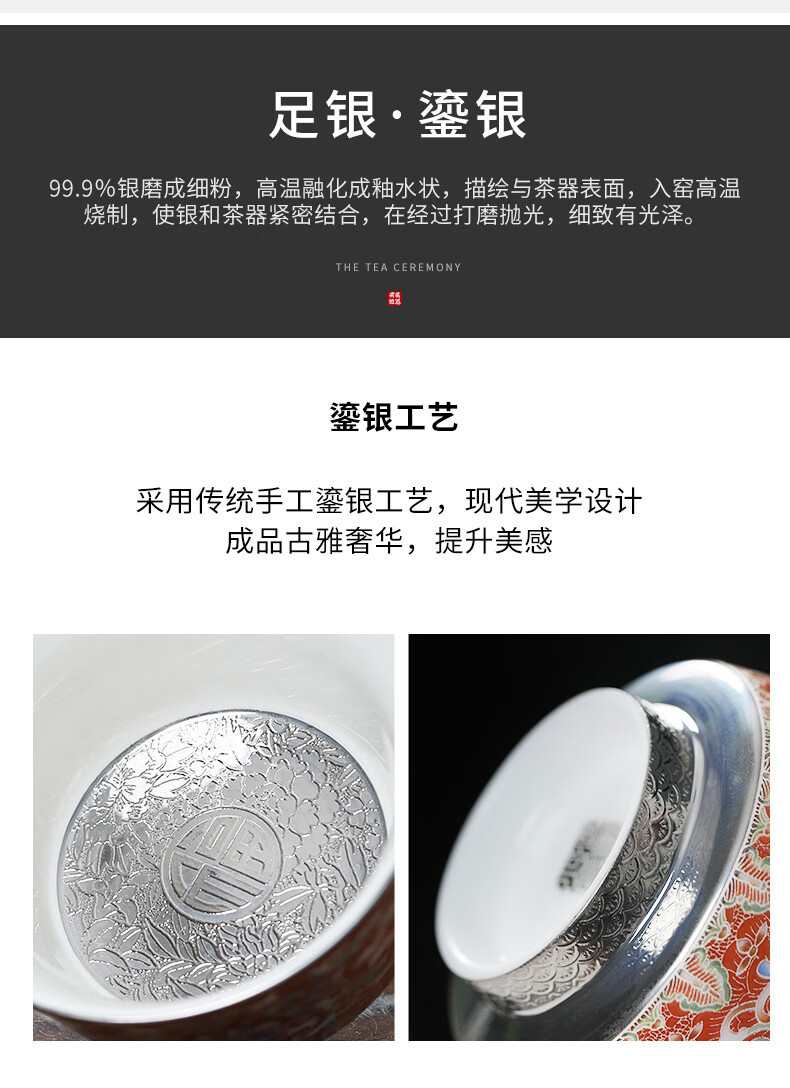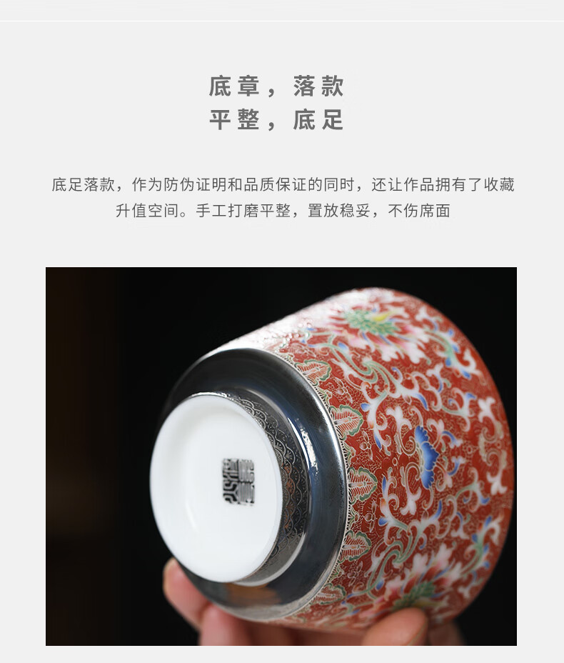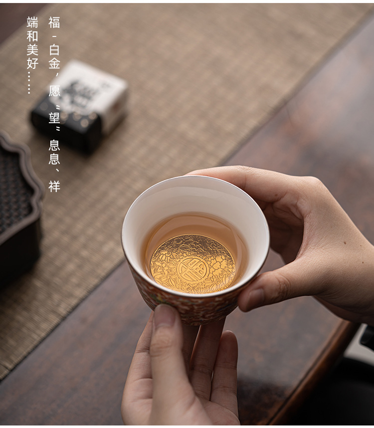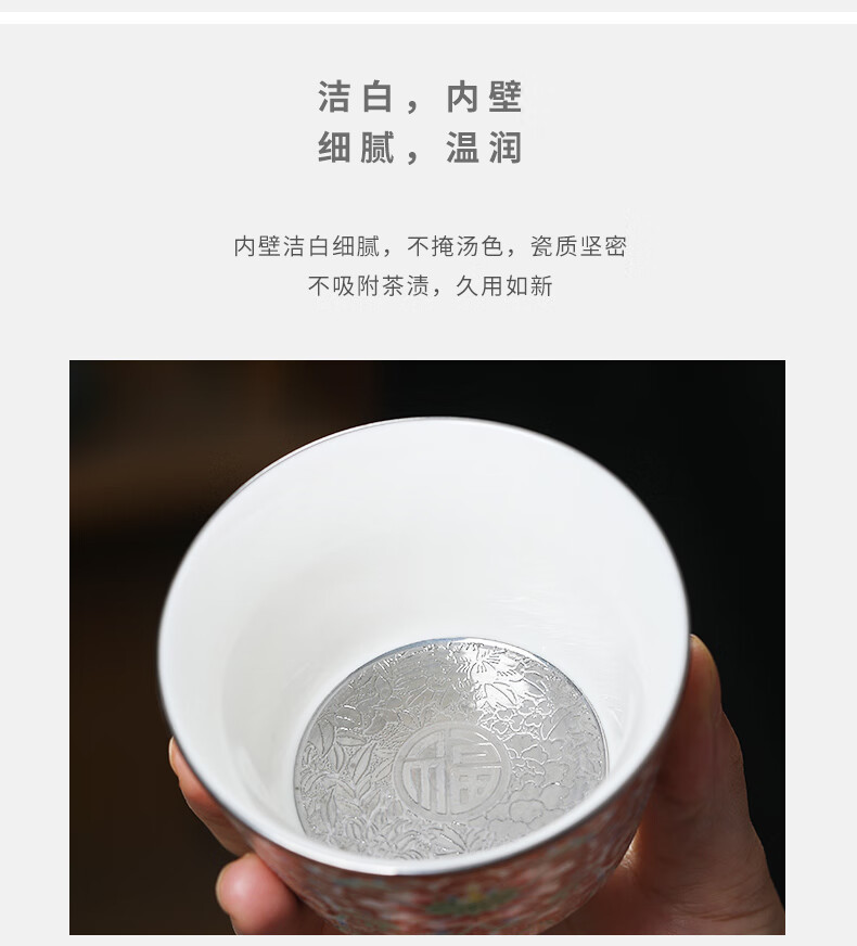 - Cốc trà Kung Fu gốm sứ màu bạc chạm khắc Huang Xudong cốc đơn cốc đơn cốc trà men cao cấp chuyên dụng cá nhân