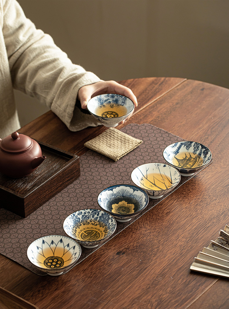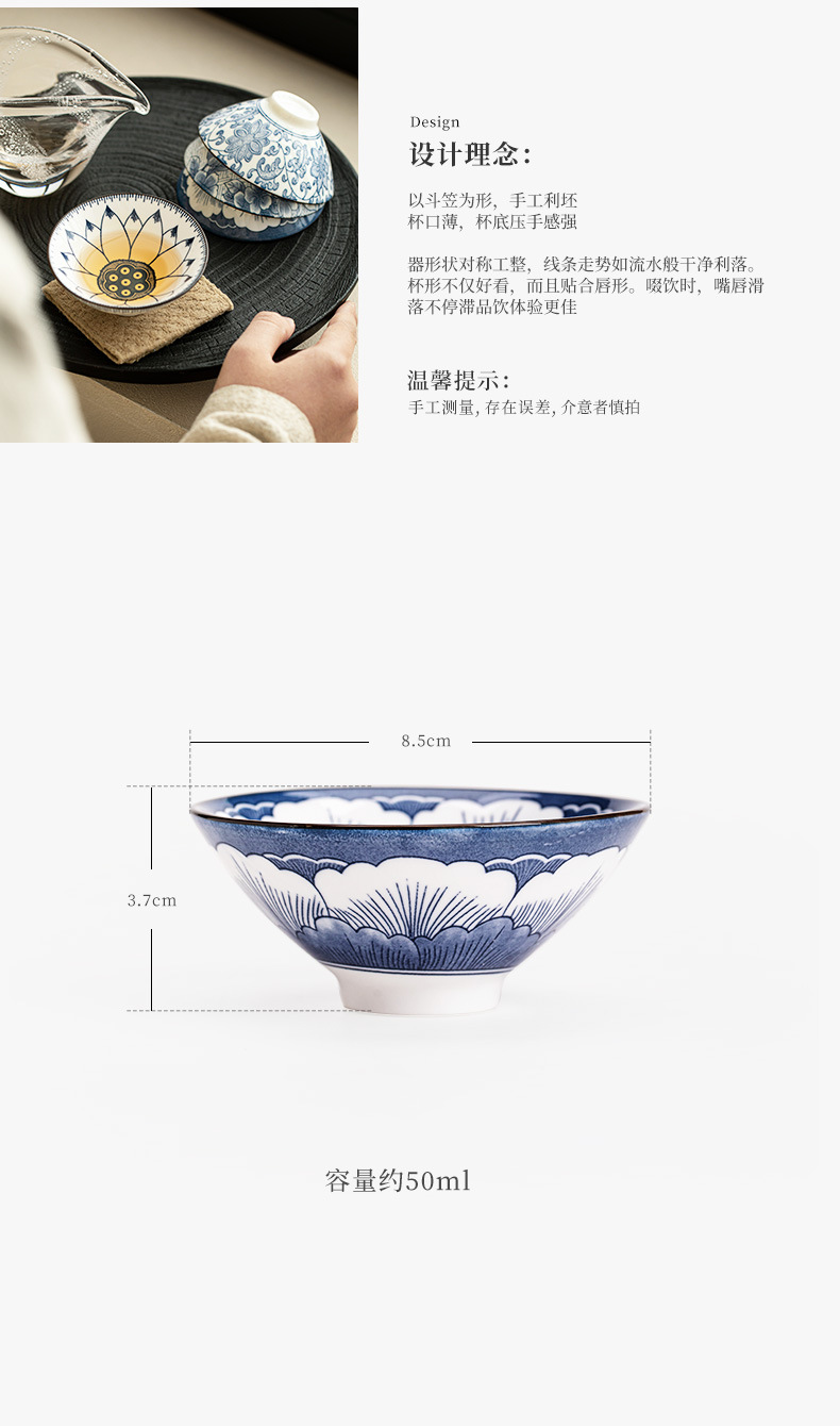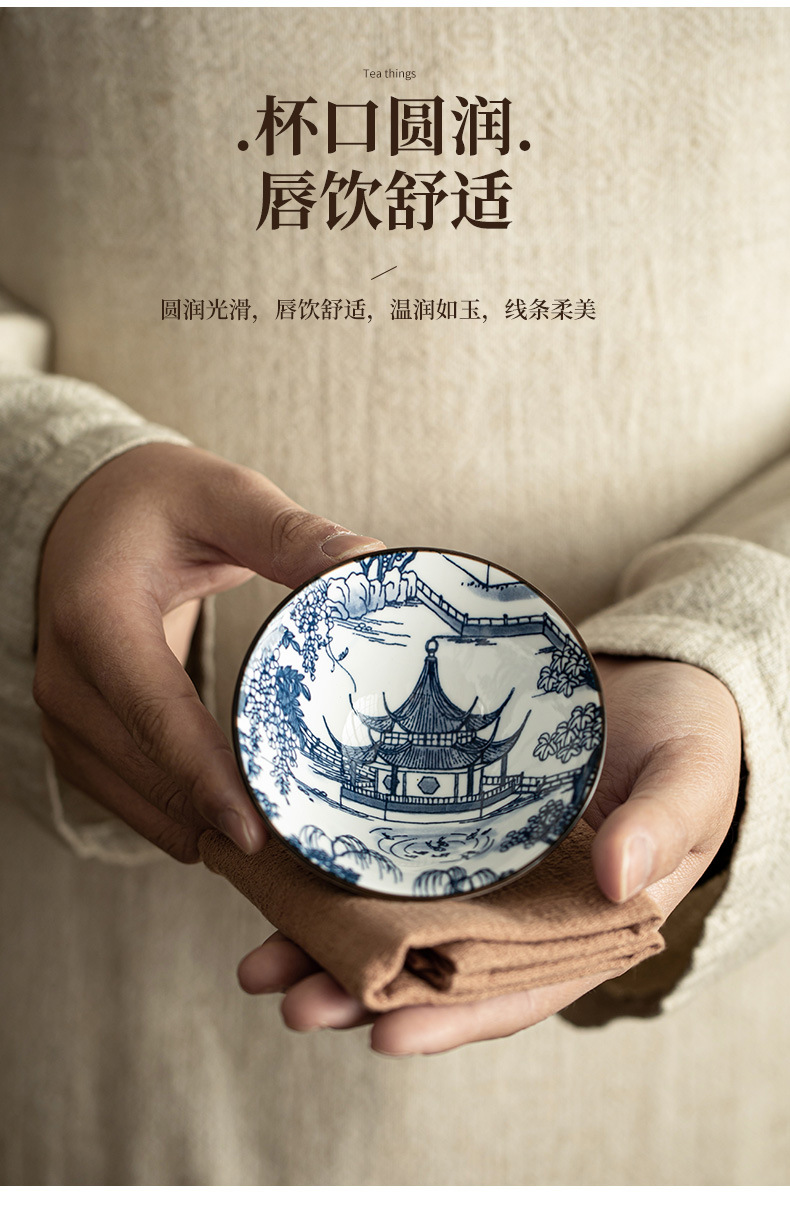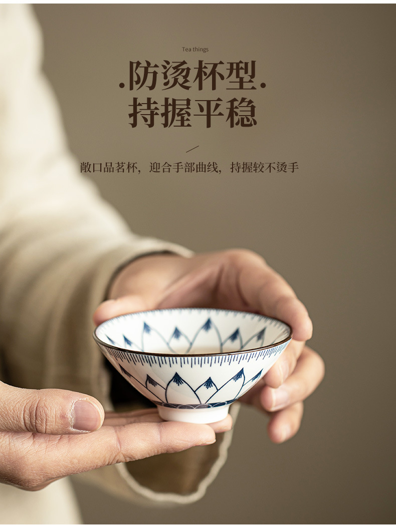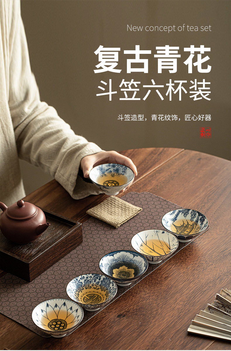 Cốc trà Kung Fu sứ trắng xanh bộ 6 bộ trà cốc xô gốm cốc trà cốc đơn cốc có nắp bát trà cốc chủ nhân