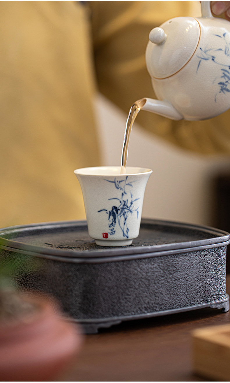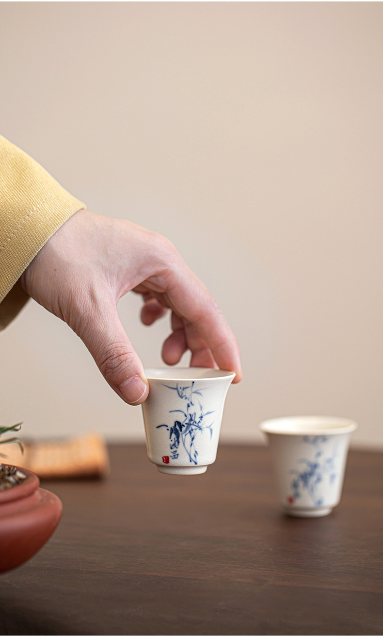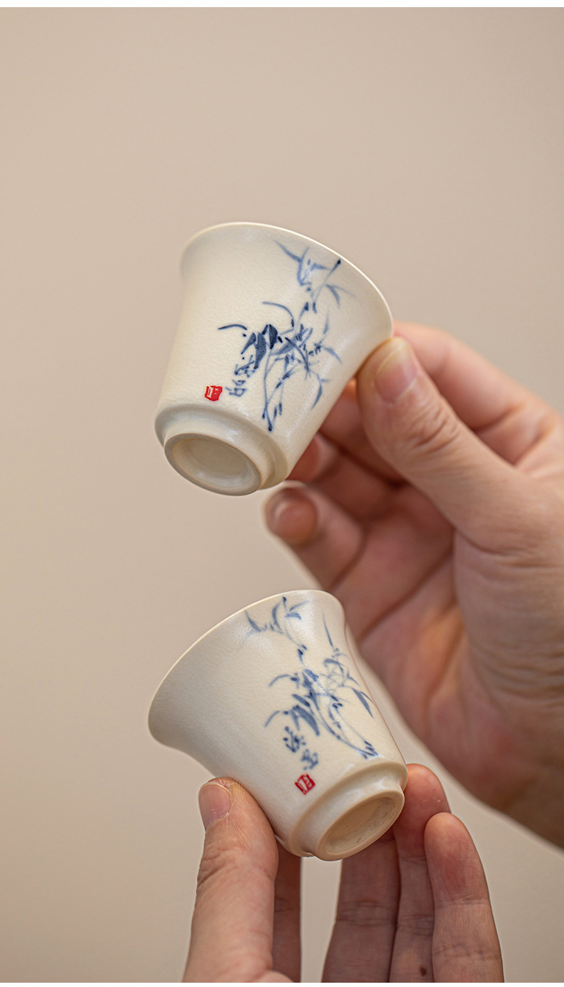 Cốc trà lá tre vẽ tay tráng men soda cốc trà gốm sứ thủ công bộ trà kungfu gia dụng cốc đơn tách trà cá nhân
