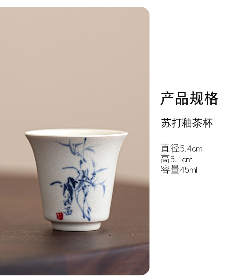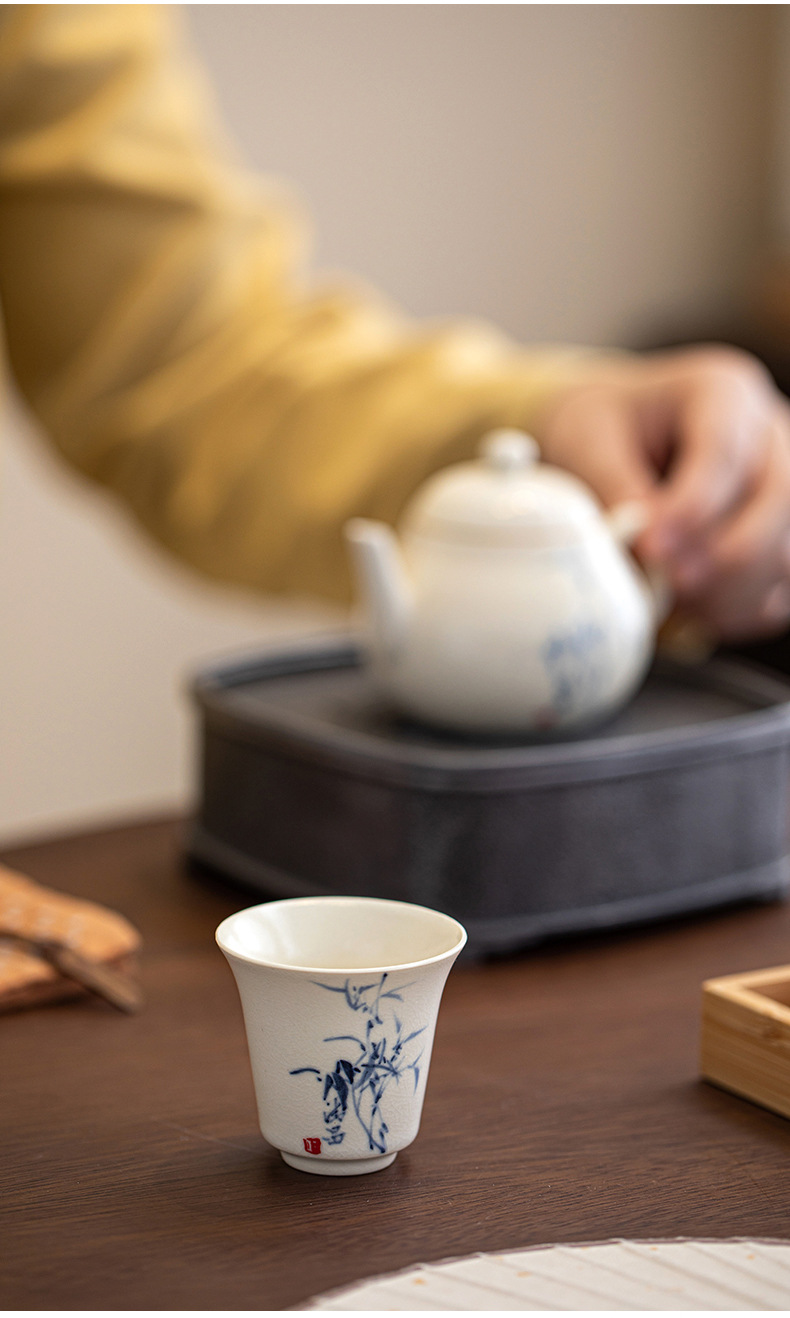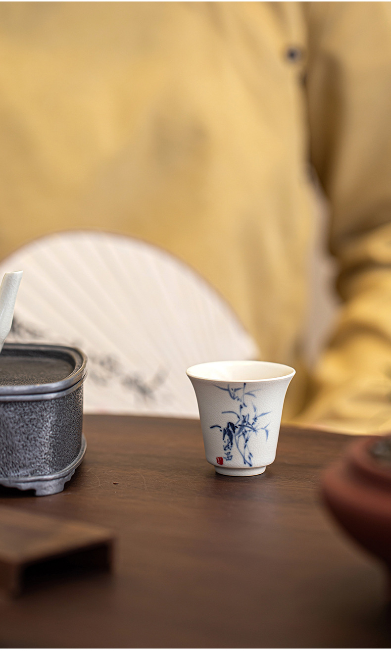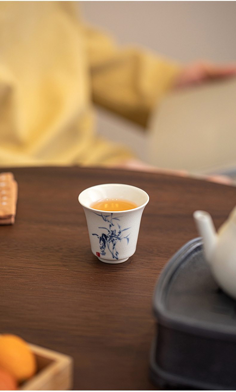Cốc trà lá tre vẽ tay tráng men soda cốc trà gốm sứ thủ công bộ trà kungfu gia dụng cốc đơn tách trà cá nhân