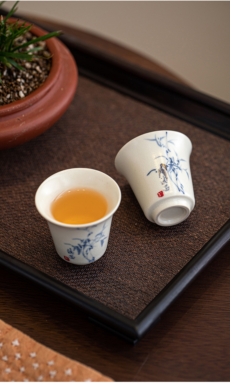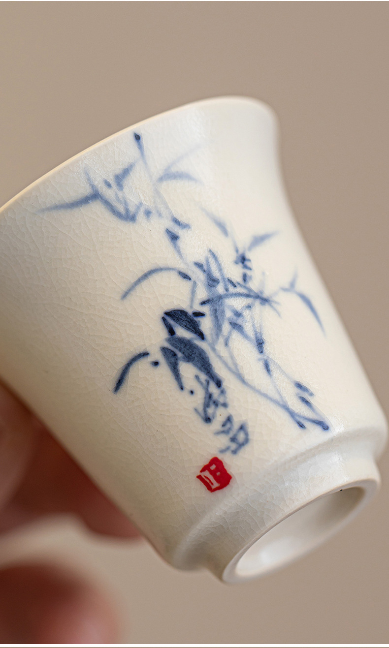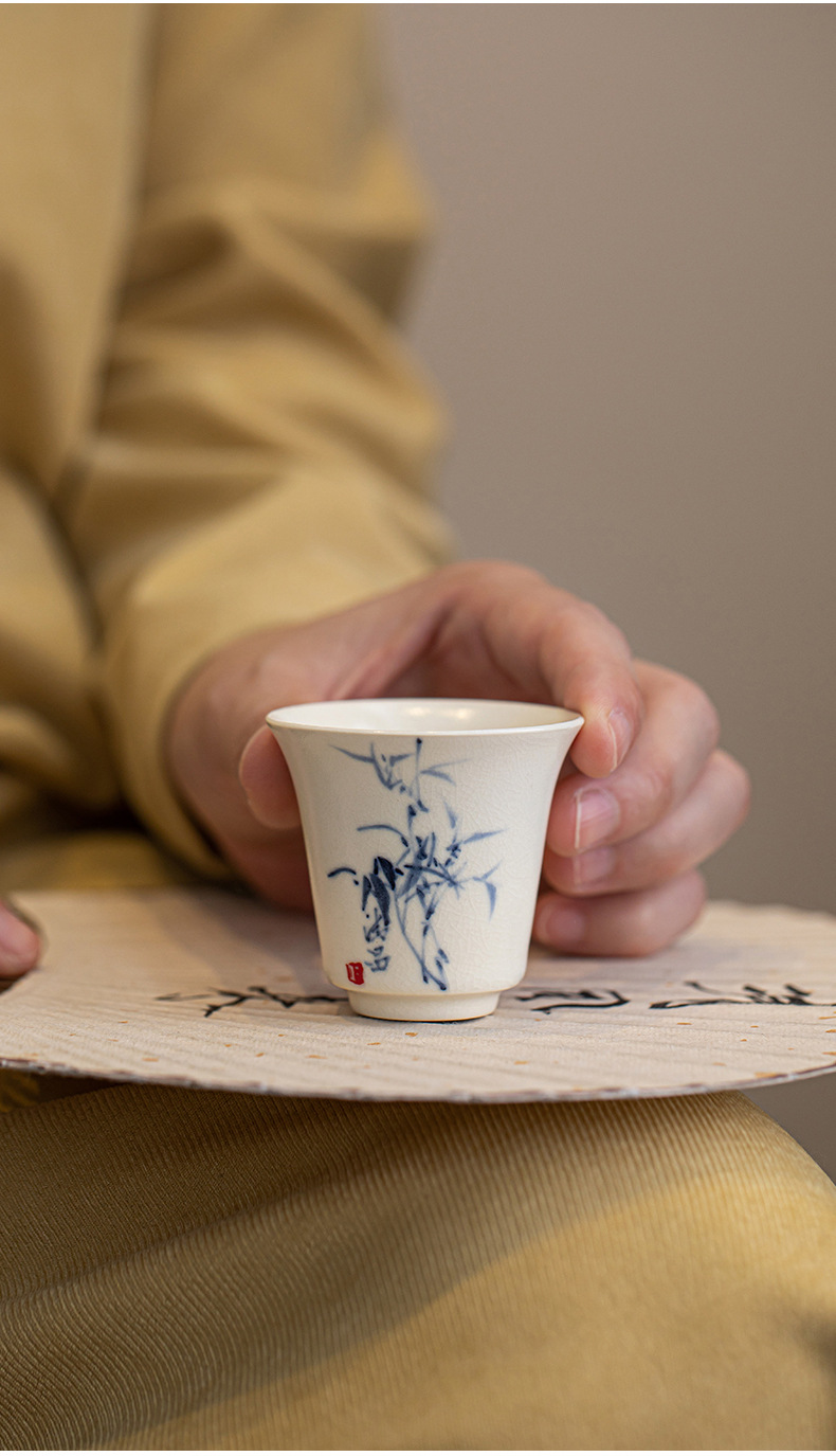 - Cốc trà lá tre vẽ tay tráng men soda cốc trà gốm sứ thủ công bộ trà kungfu gia dụng cốc đơn tách trà cá nhân