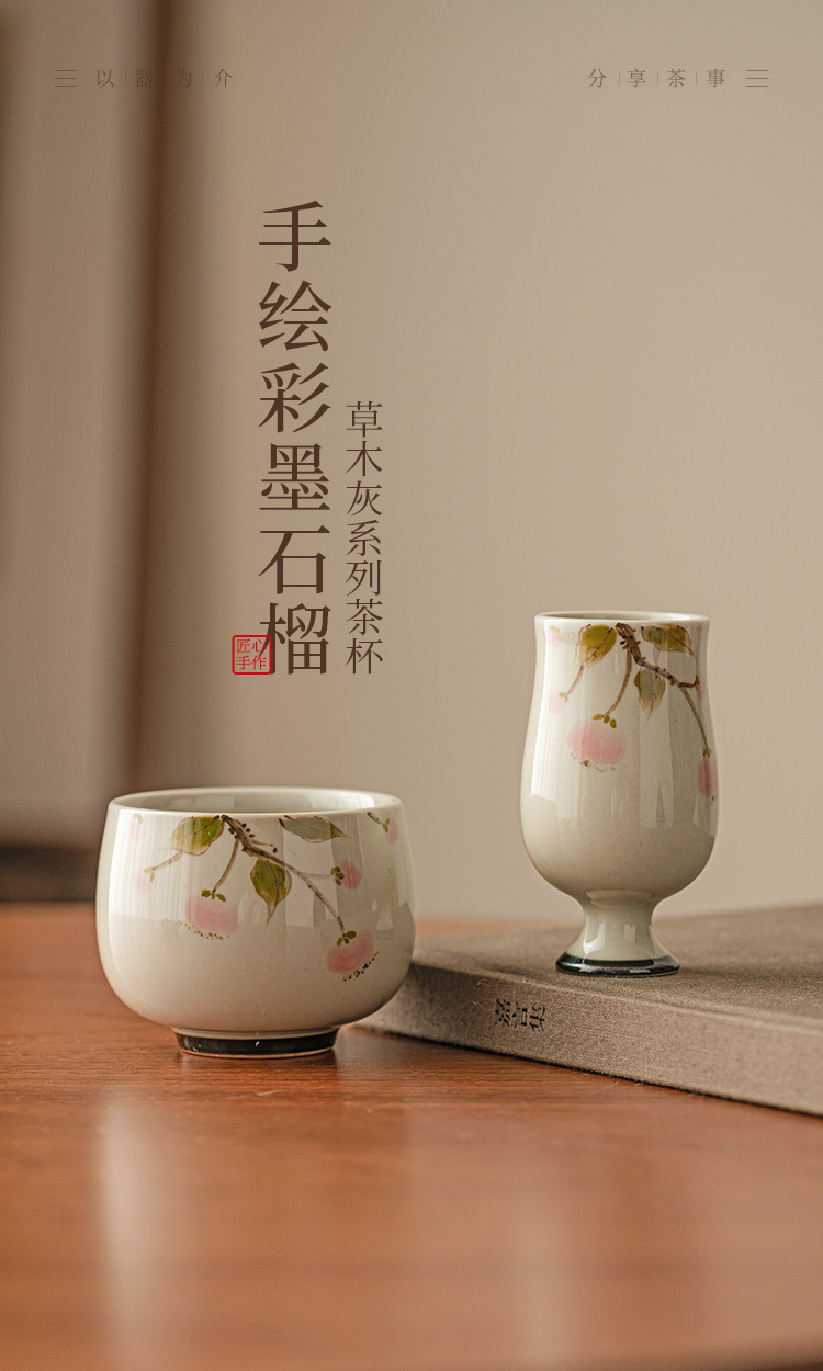 Cốc Trà Lựu vẽ tay màu xám thực vật cốc trà gốm sứ cốc chủ nhân tách trà đơn bộ trà Kung Fu Trung Quốc Cốc thơm
