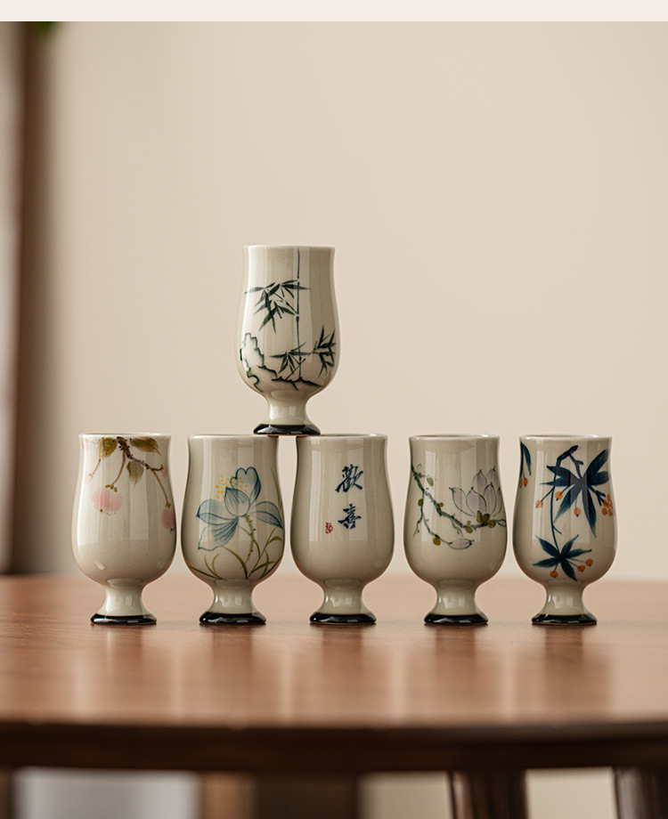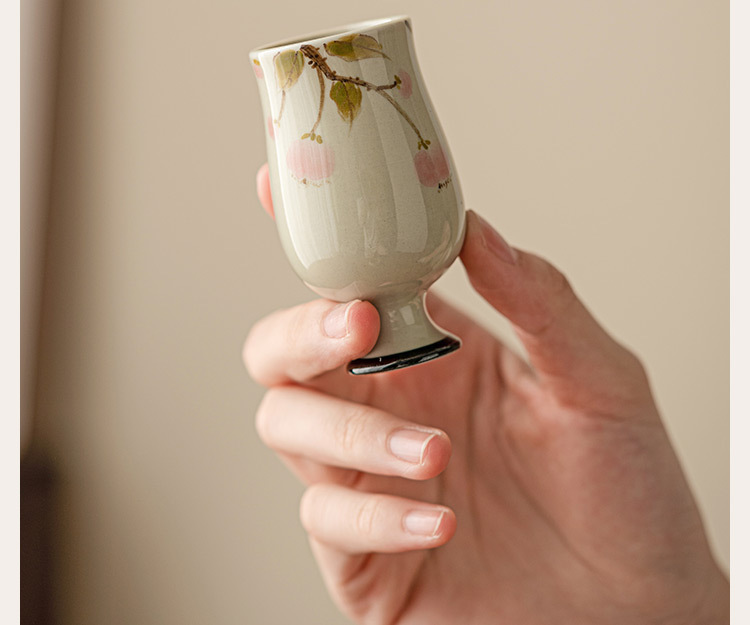 - Cốc Trà Lựu vẽ tay màu xám thực vật cốc trà gốm sứ cốc chủ nhân tách trà đơn bộ trà Kung Fu Trung Quốc Cốc thơm
