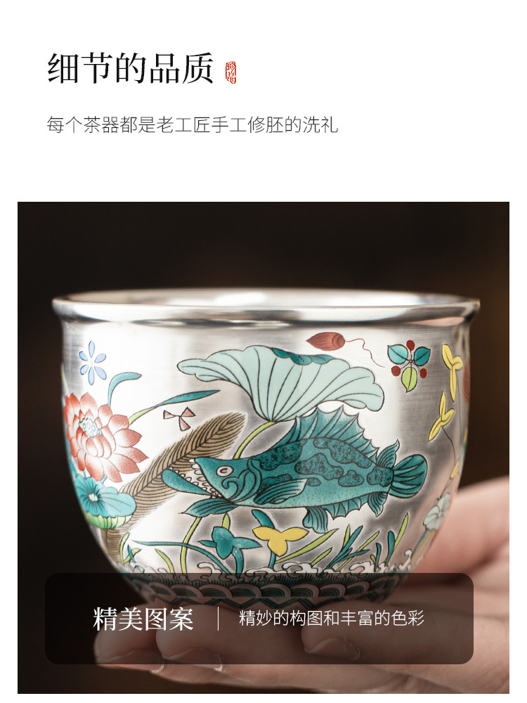 Cốc trà mạ bạc 999 cốc chủ nhân cao cấp cá chơi sen hồ thẳng cốc trà cốc trà chuyên dụng cốc trà cốc đơn