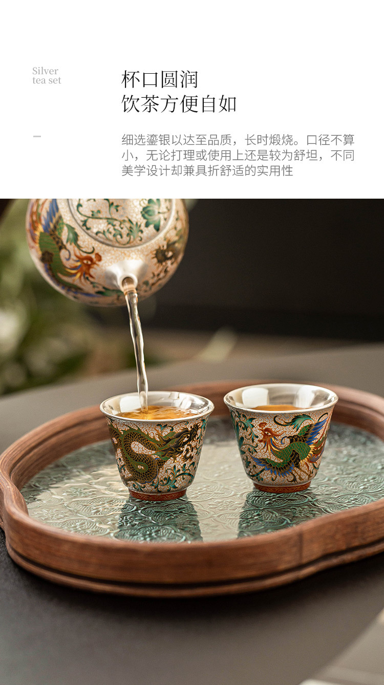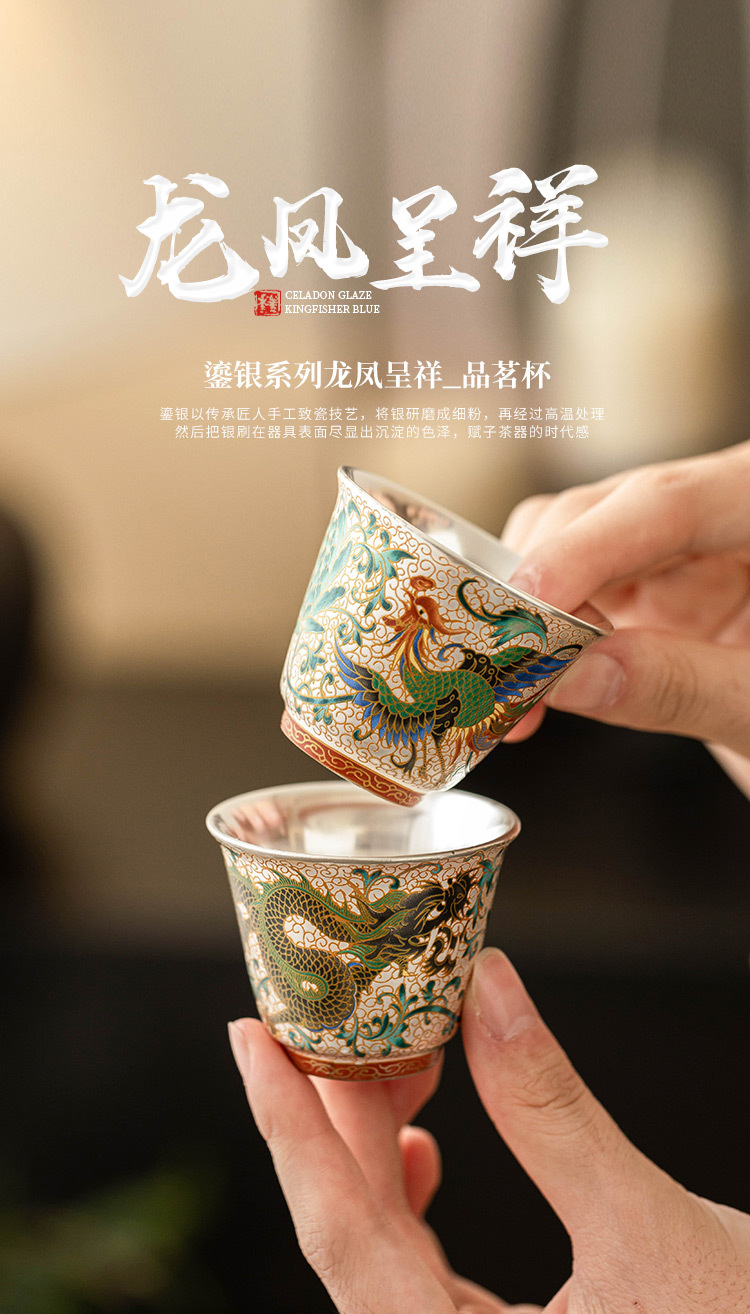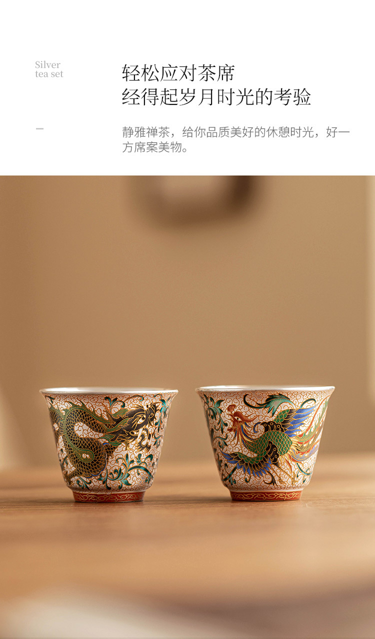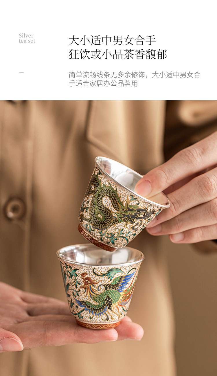 - Cốc trà mạ bạc Long Phượng Tường cốc chủ nhân cao cấp sang trọng nhẹ bộ trà chuyên dụng dùng trong gia đình uống trà cốc pha trà