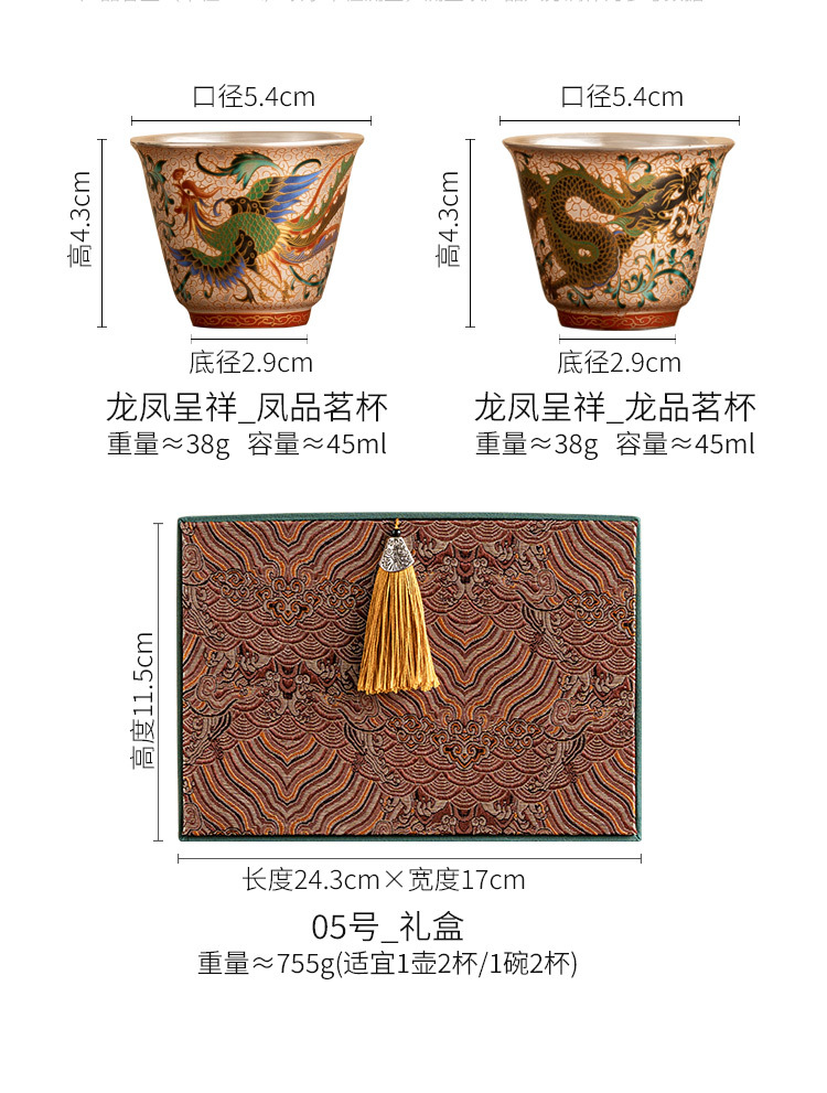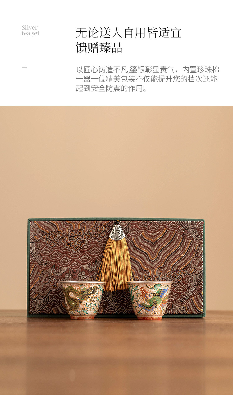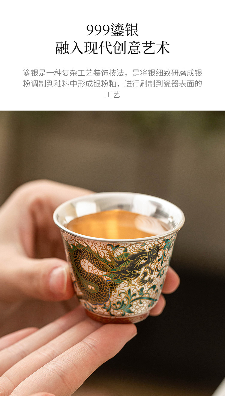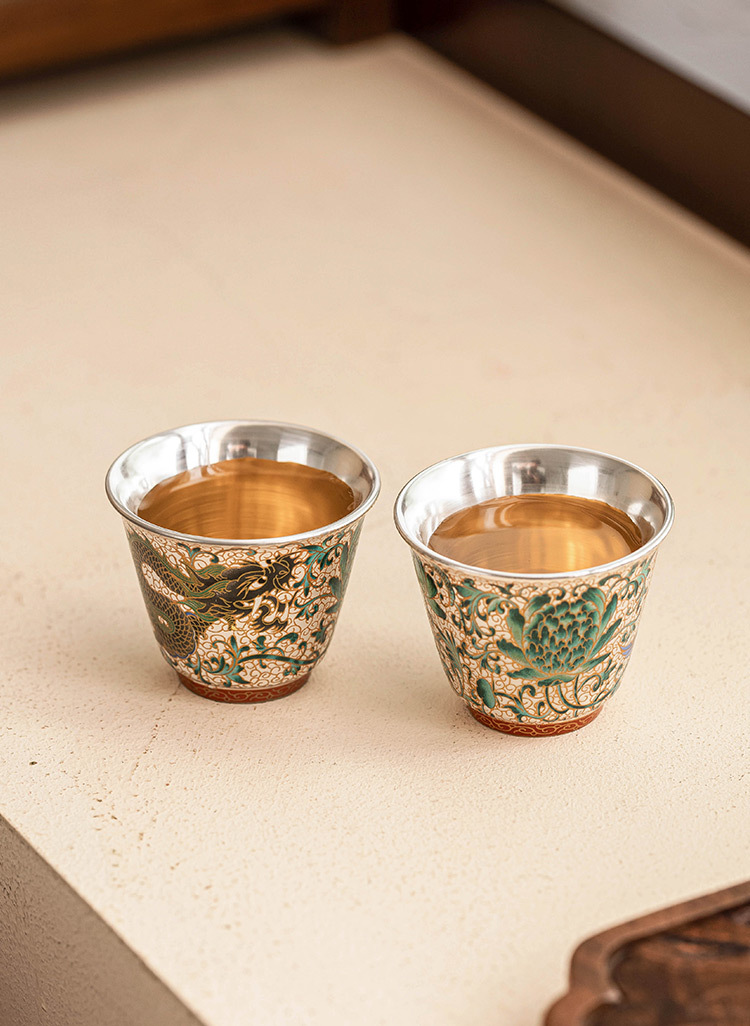 - Cốc trà mạ bạc Long Phượng Tường cốc chủ nhân cao cấp sang trọng nhẹ bộ trà chuyên dụng dùng trong gia đình uống trà cốc pha trà