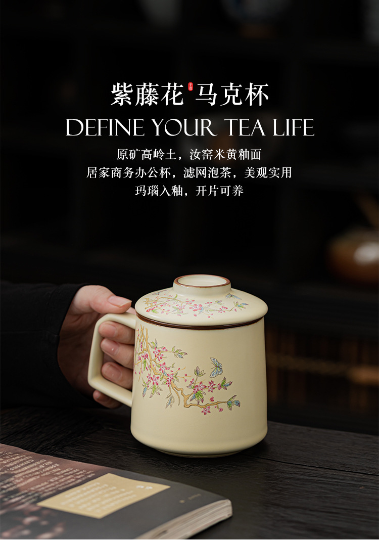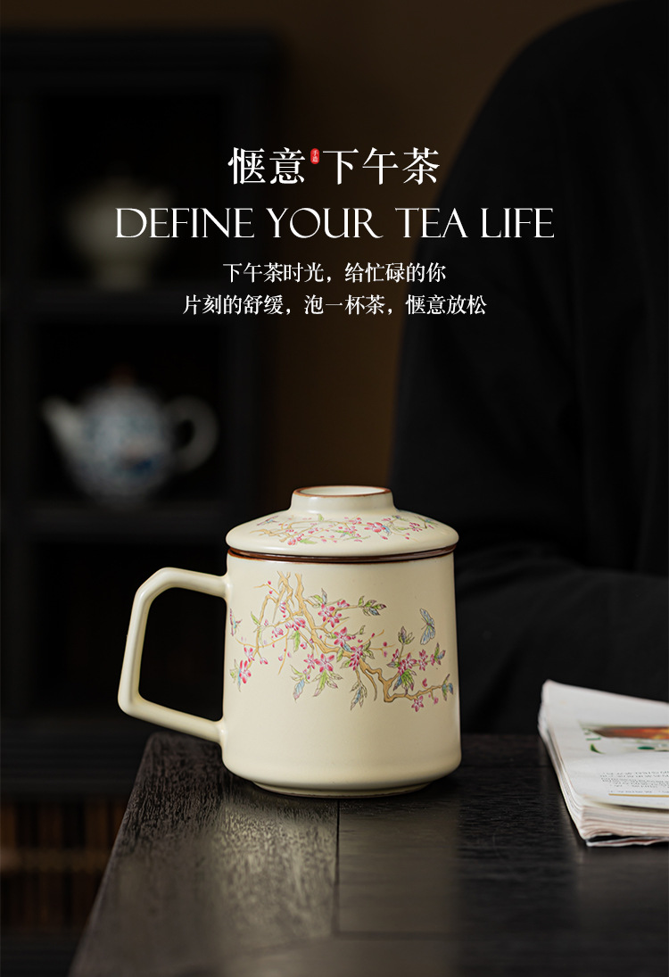 - Cốc trà Mark lọc hoa tử đằng màu be cốc gốm sứ văn phòng pha trà đơn giản cốc tách nước trà
