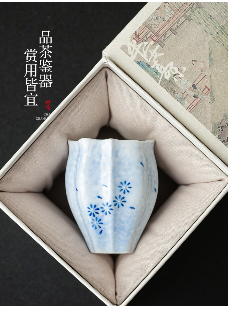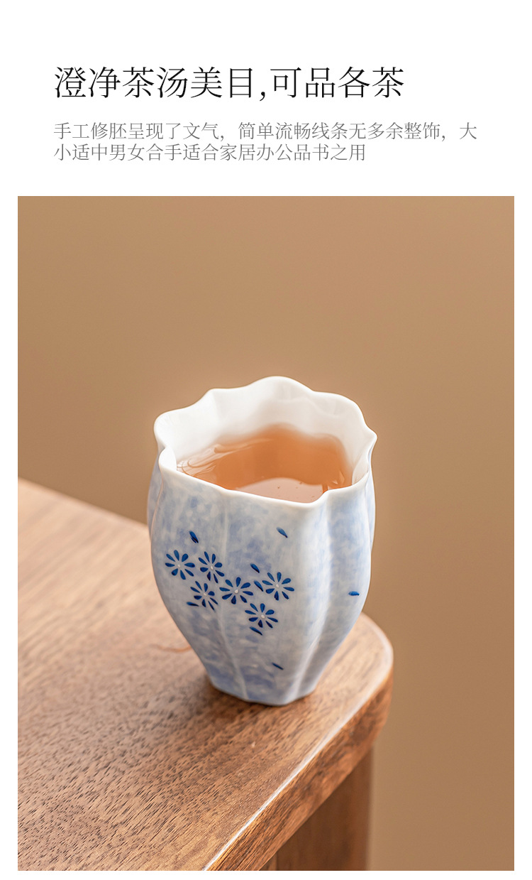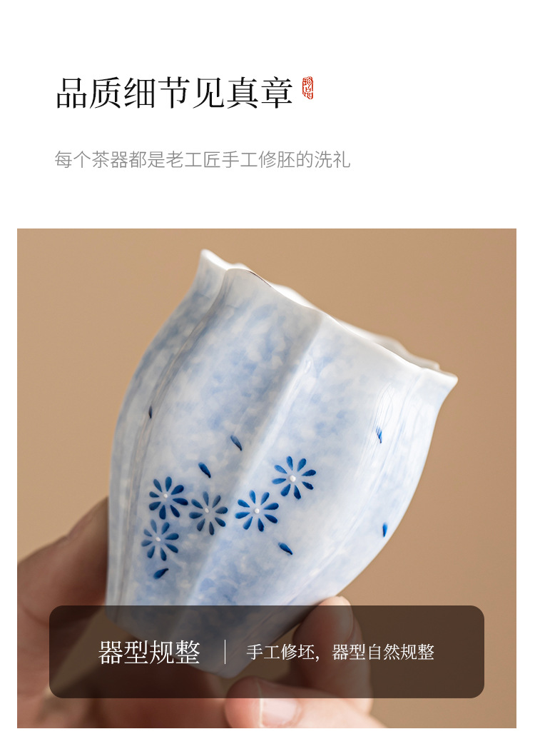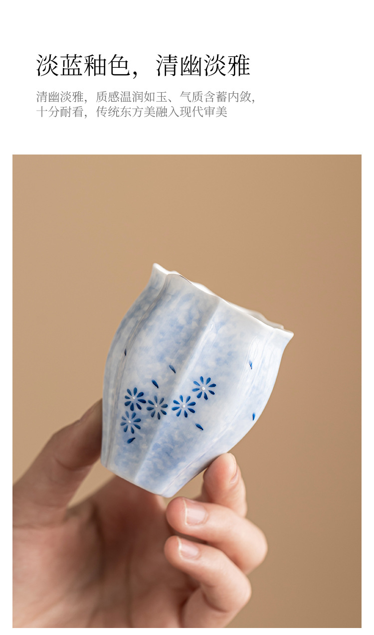 - Cốc trà màu xanh lam cốc chủ nhân cốc hoa cúc vẽ tay bộ trà gốm sứ sáng tạo cốc trà Kung Fu dung lượng lớn