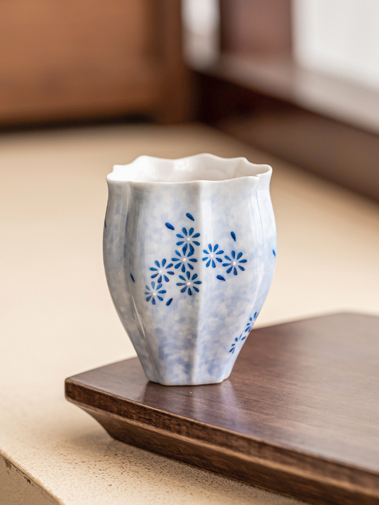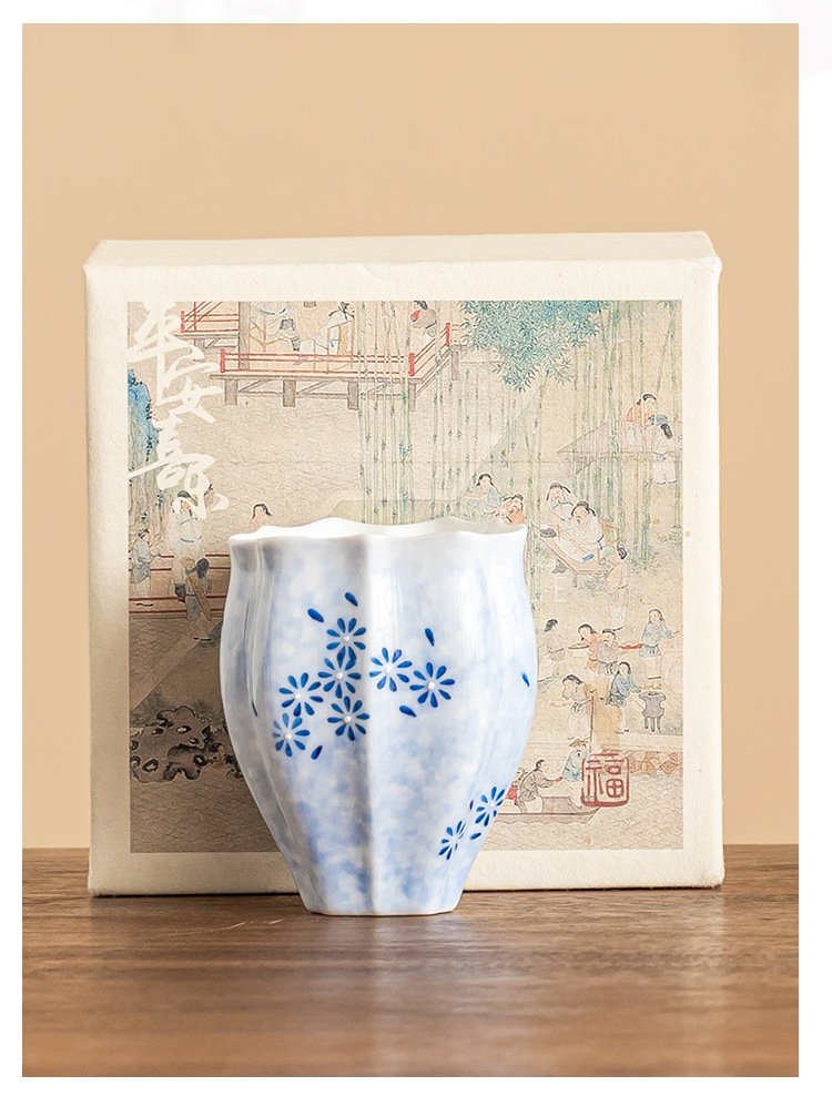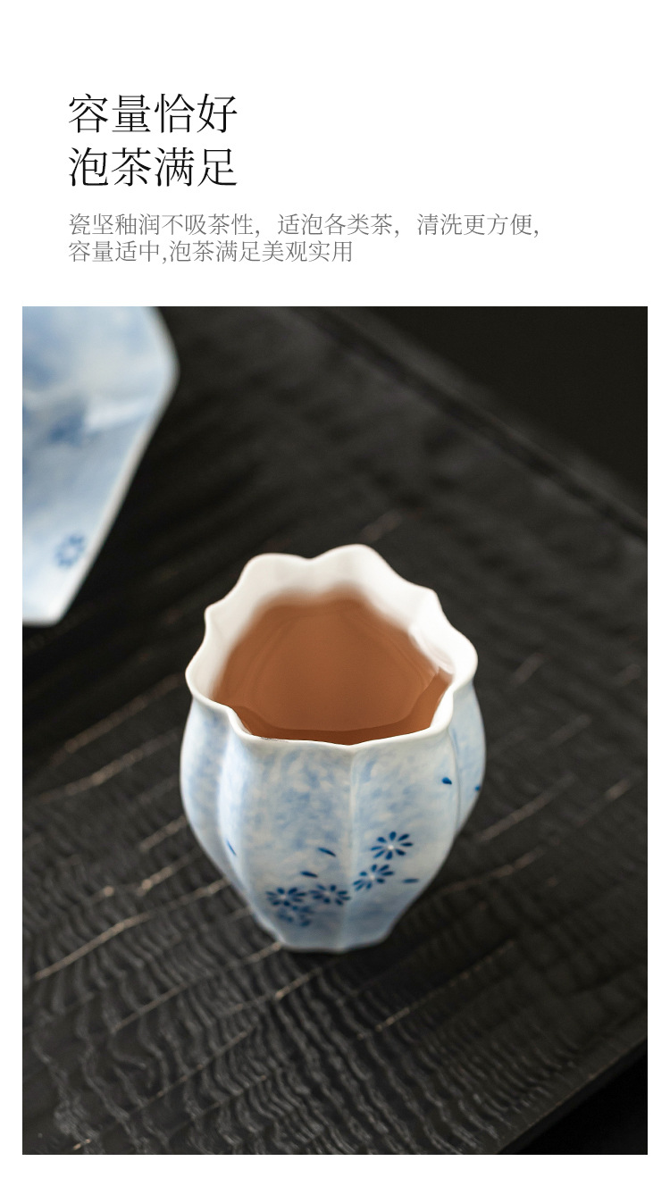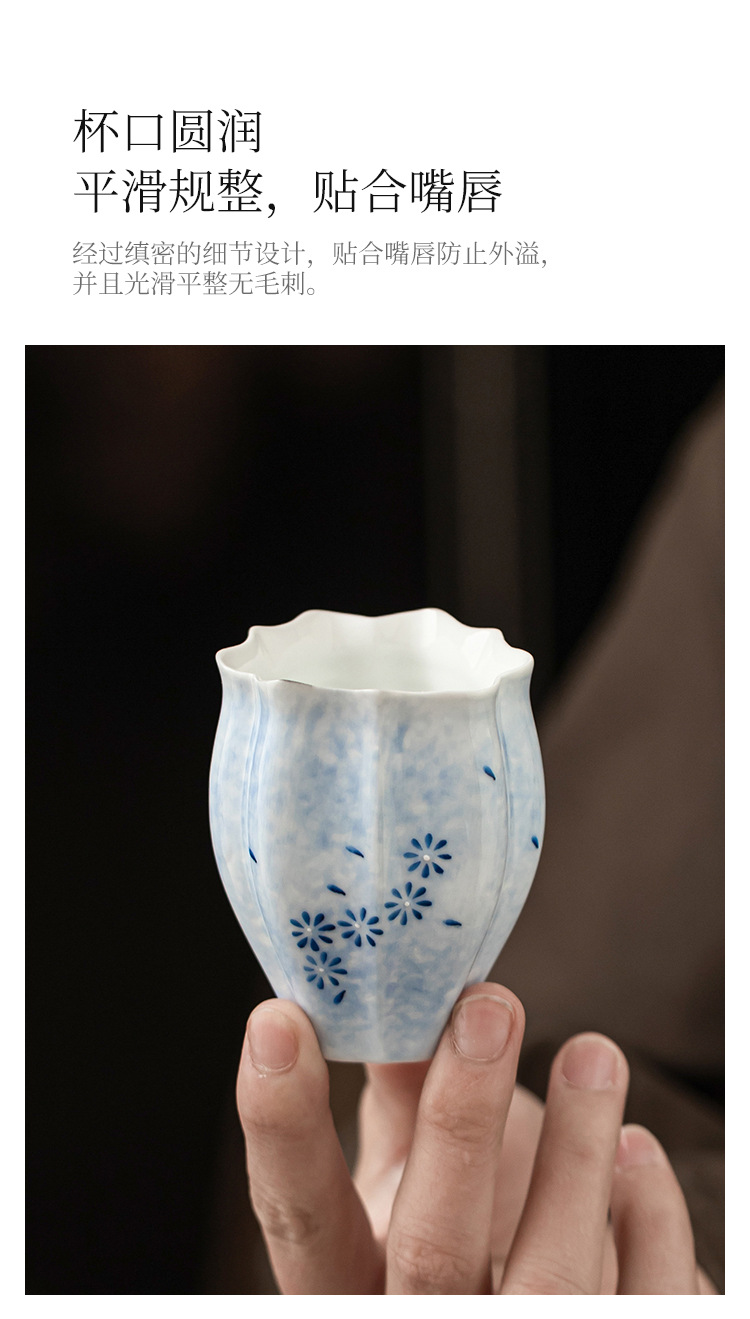 - Cốc trà màu xanh lam cốc chủ nhân cốc hoa cúc vẽ tay bộ trà gốm sứ sáng tạo cốc trà Kung Fu dung lượng lớn