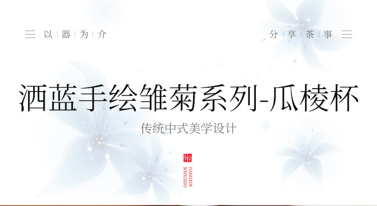 Cốc trà màu xanh lam cốc chủ nhân cốc hoa cúc vẽ tay bộ trà gốm sứ sáng tạo cốc trà Kung Fu dung lượng lớn