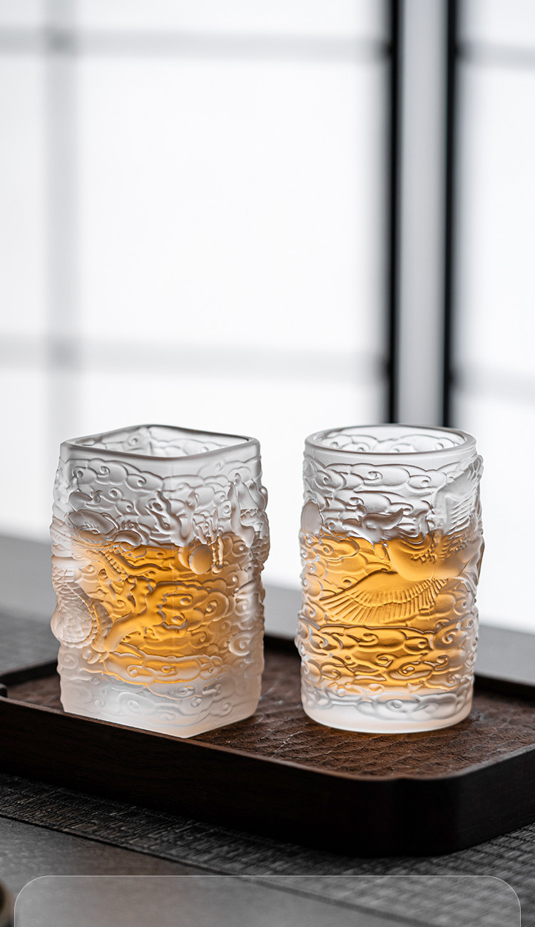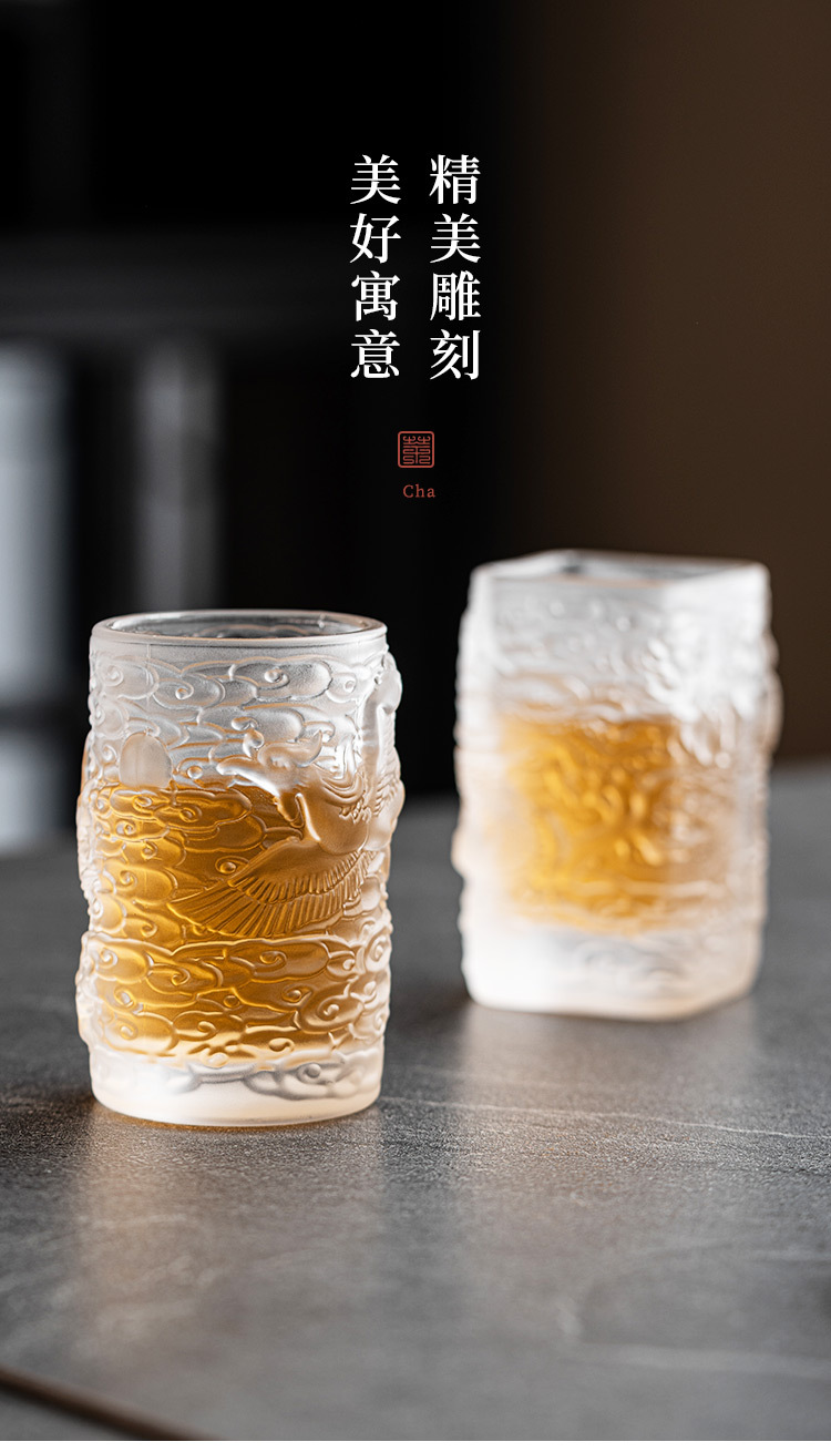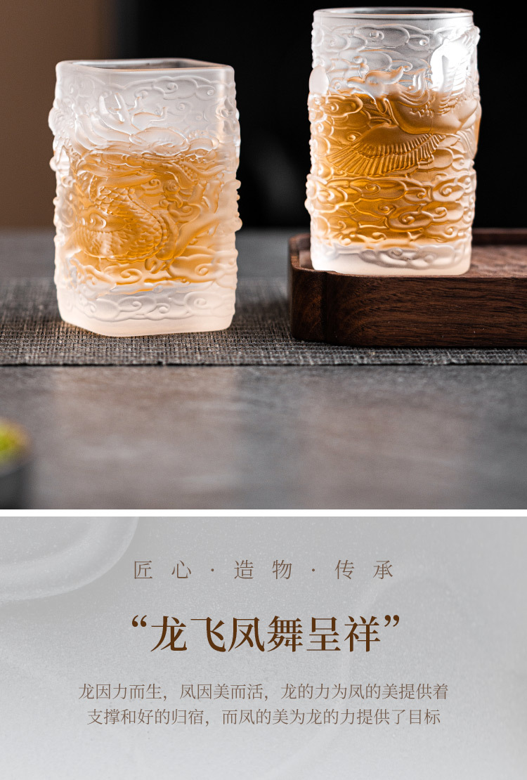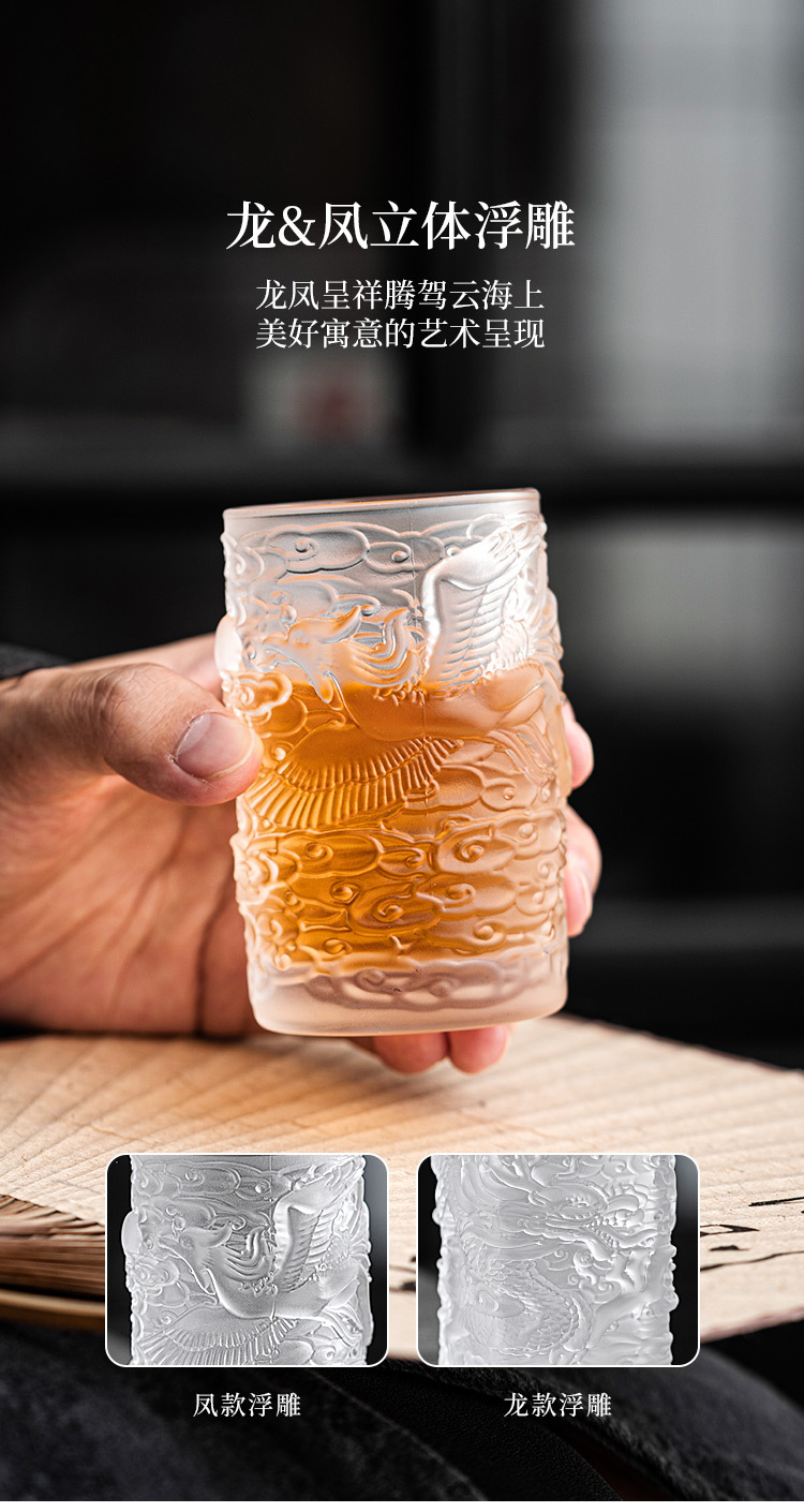 - Cốc trà men màu Long Phượng Tường cốc thủy tinh cốc chủ nhân cặp đôi nam nữ uống nước cốc nhỏ Bộ trà Kung Fu cao cấp