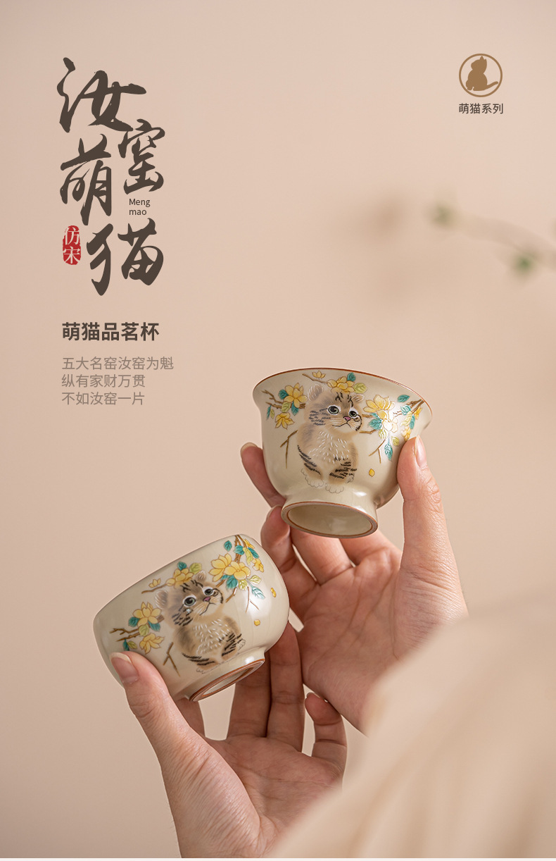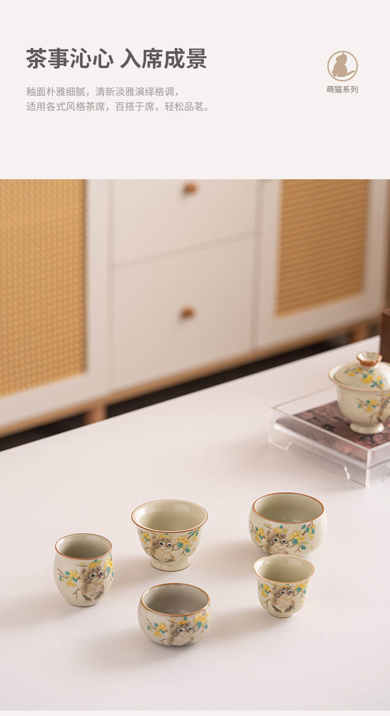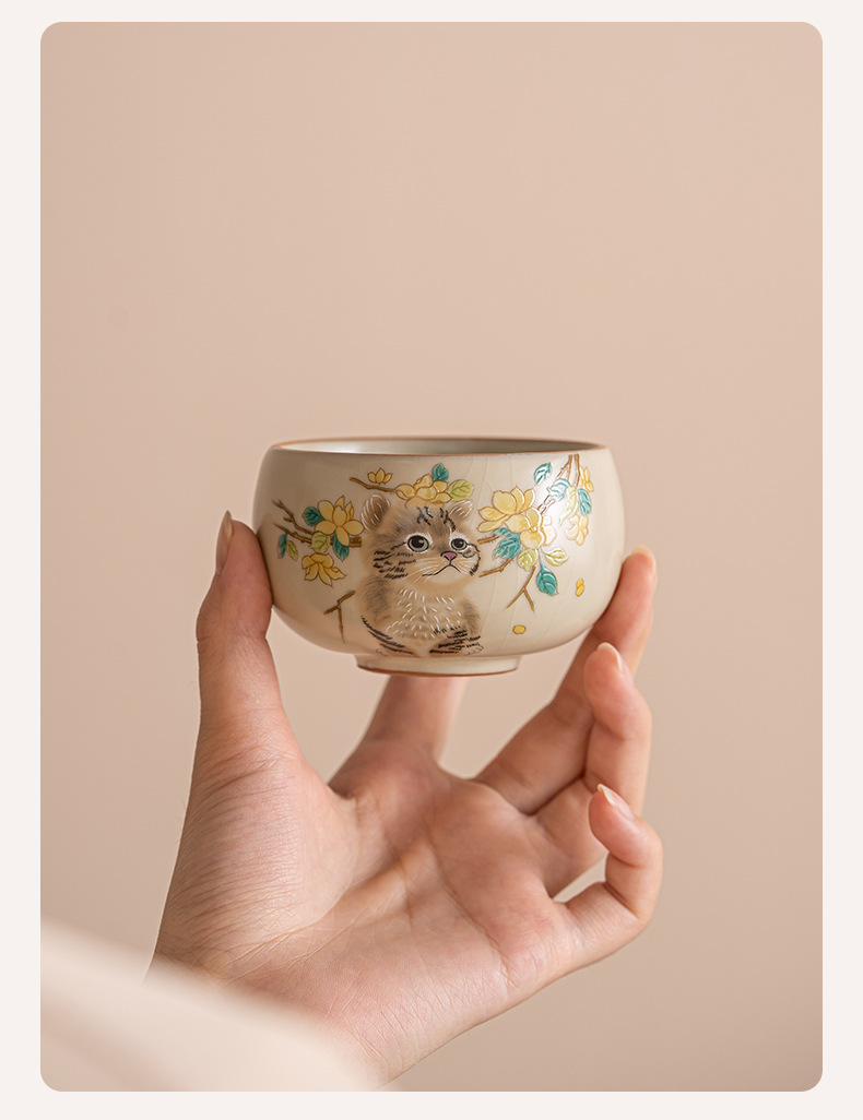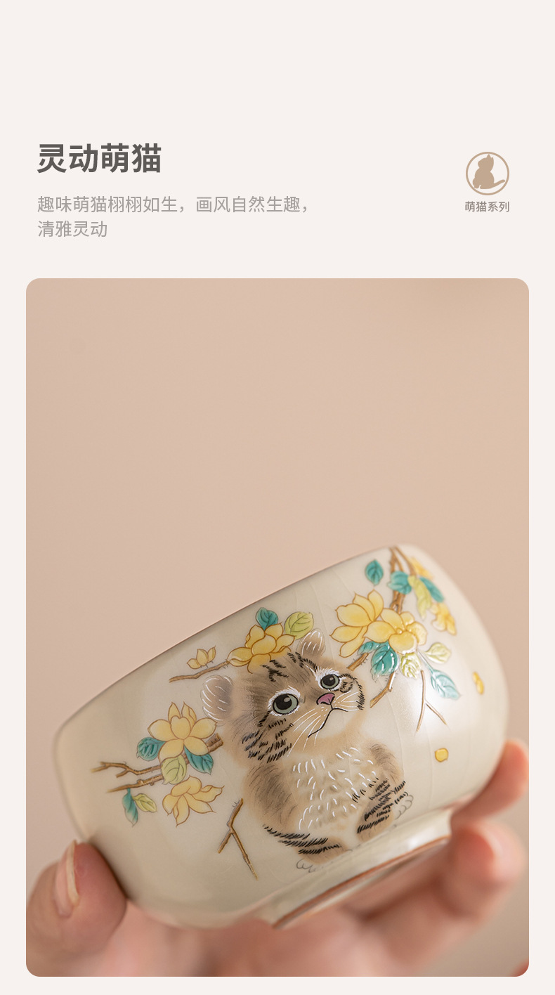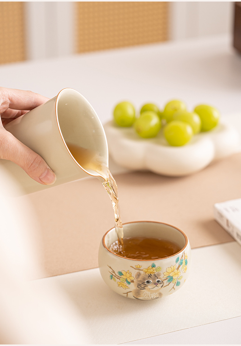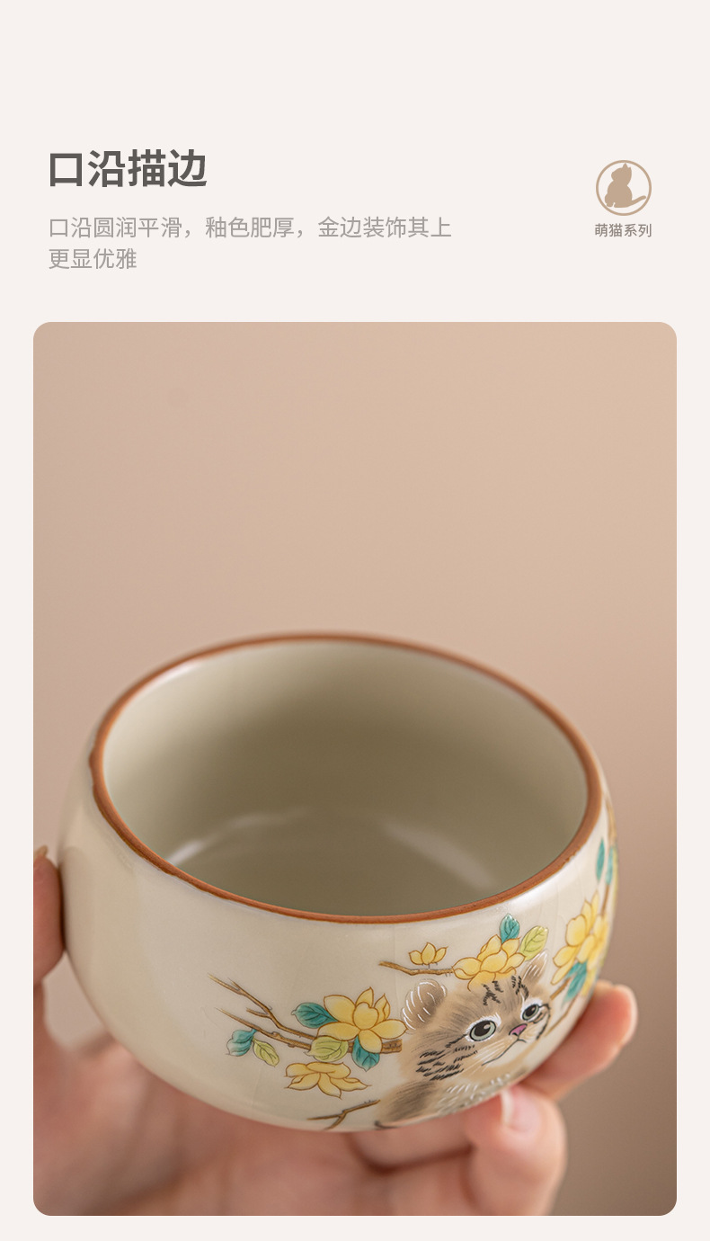 Cốc trà mèo dễ thương lò Ru vàng giả Song cốc nước dung tích lớn cốc đơn gia dụng có thể mở cốc chủ bộ trà kung fu