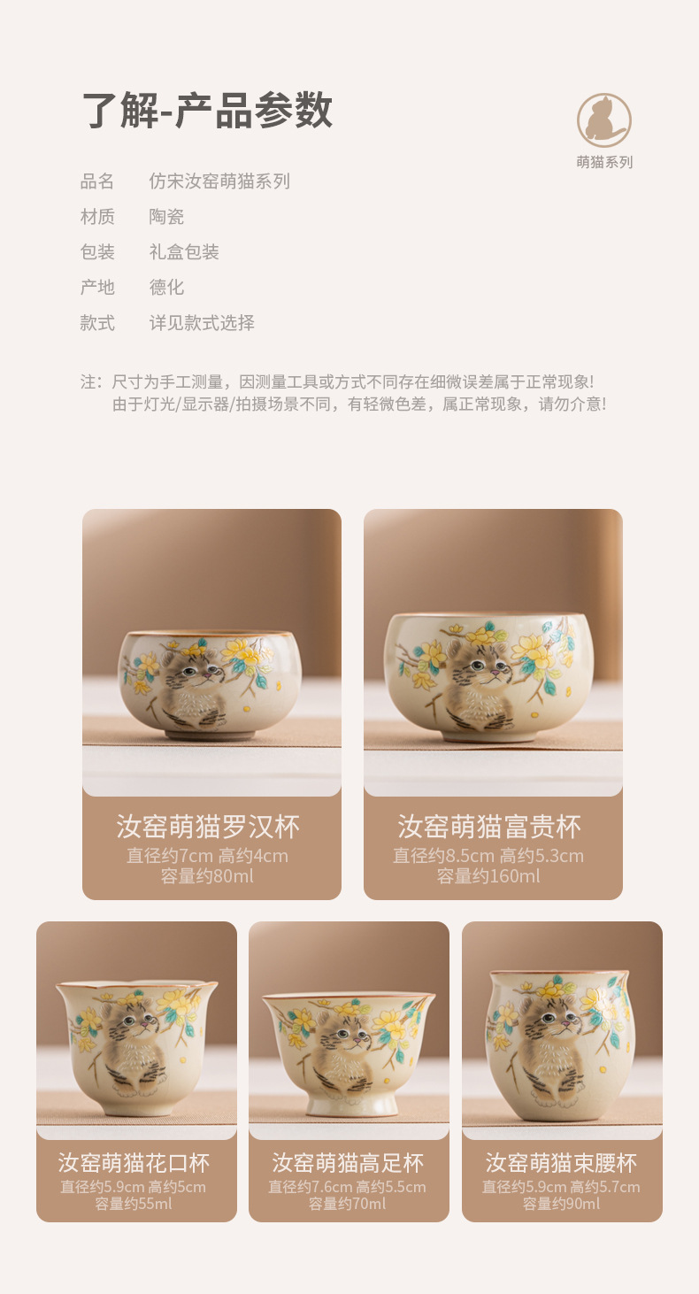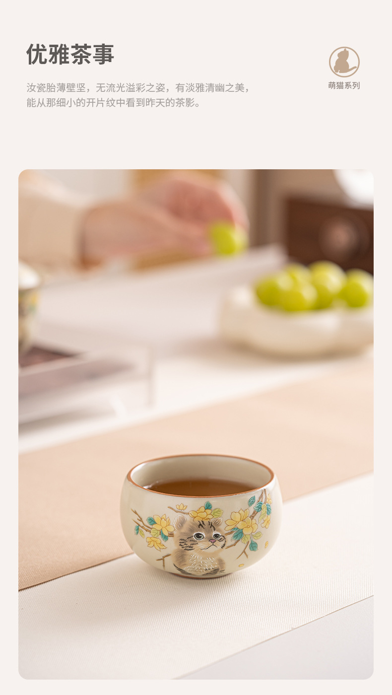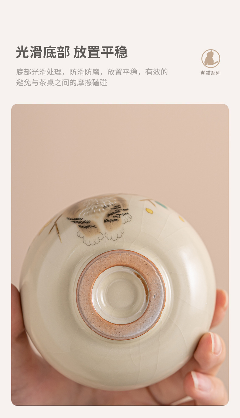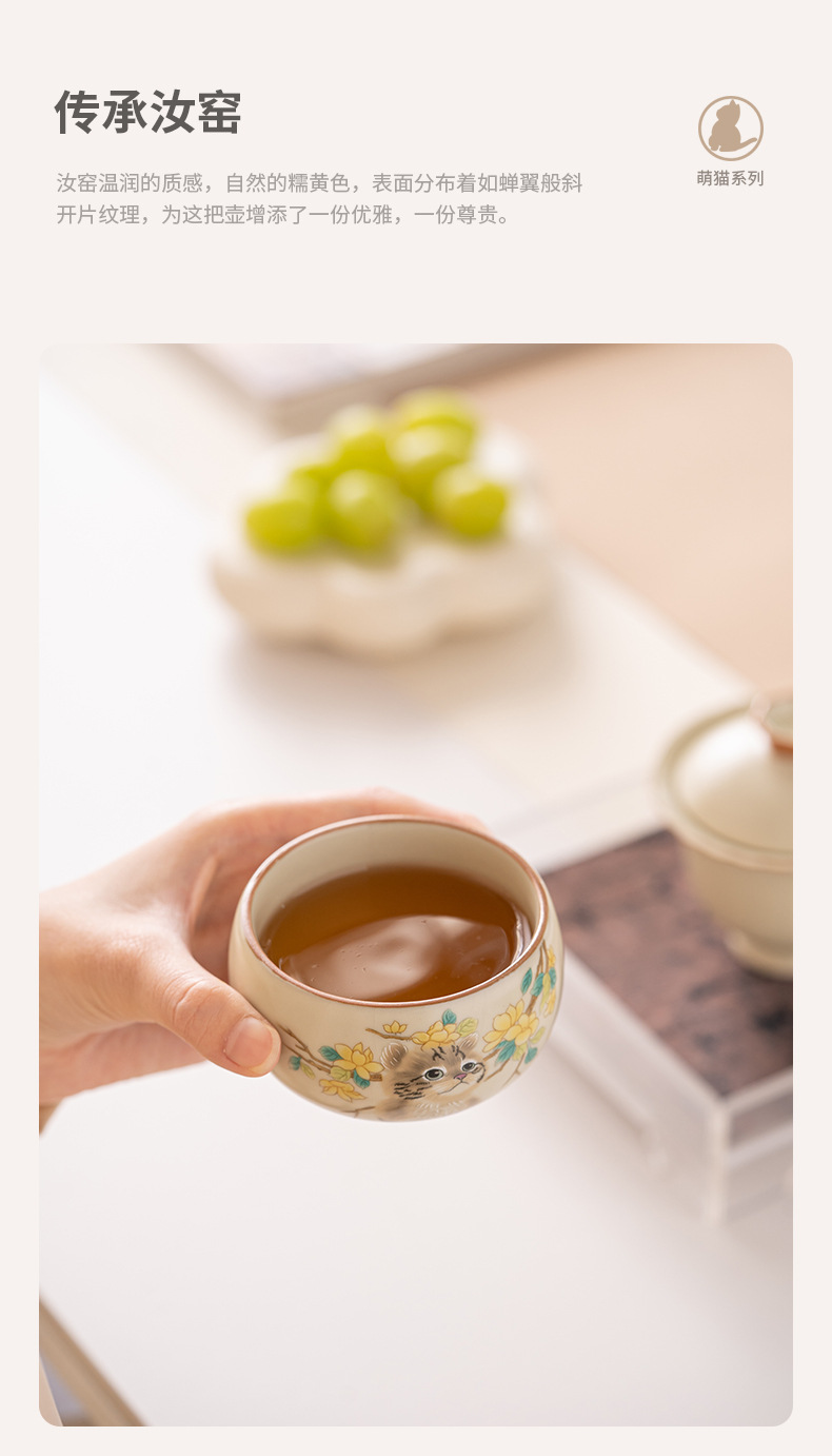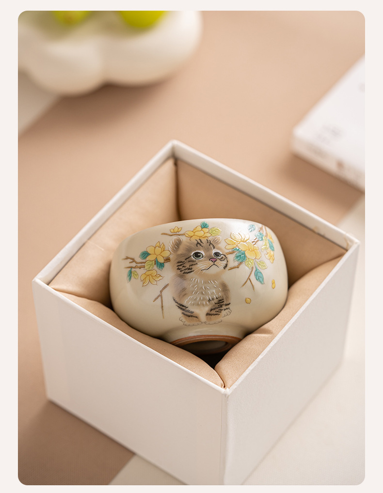 Cốc trà mèo dễ thương lò Ru vàng giả Song cốc nước dung tích lớn cốc đơn gia dụng có thể mở cốc chủ bộ trà kung fu