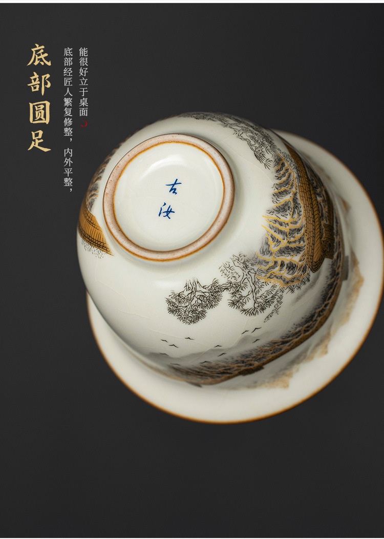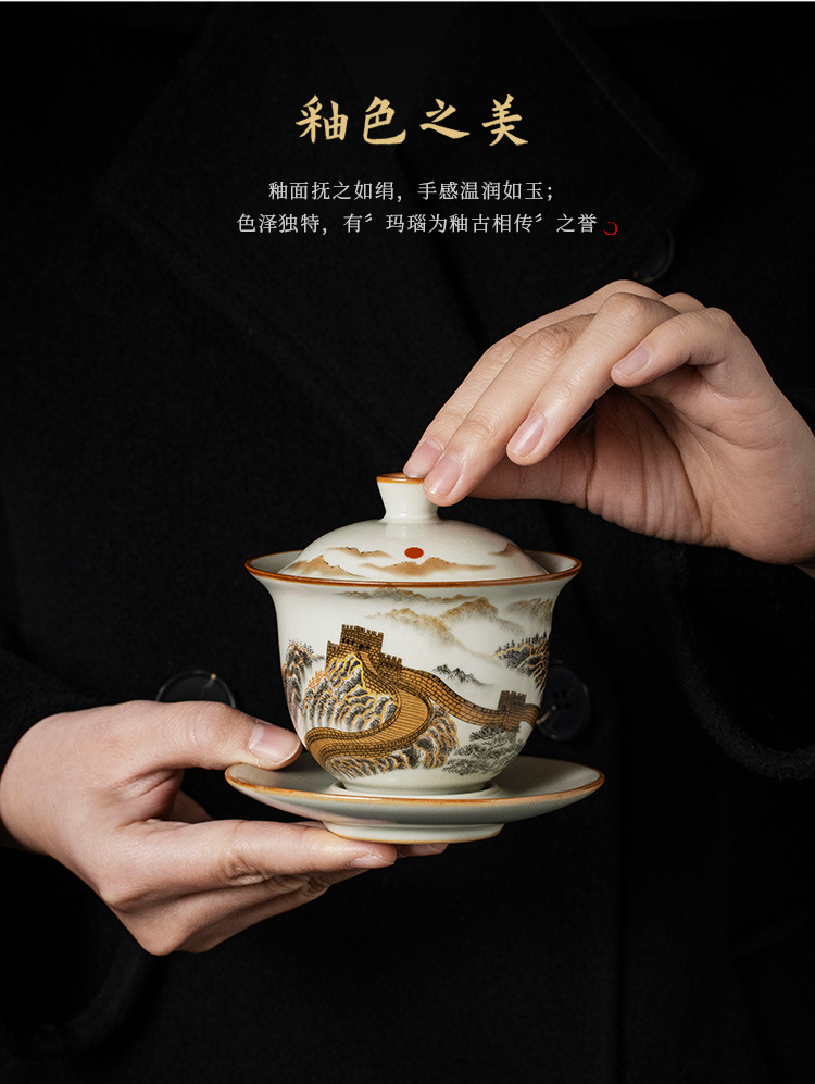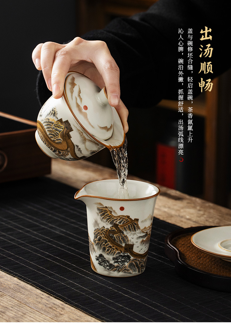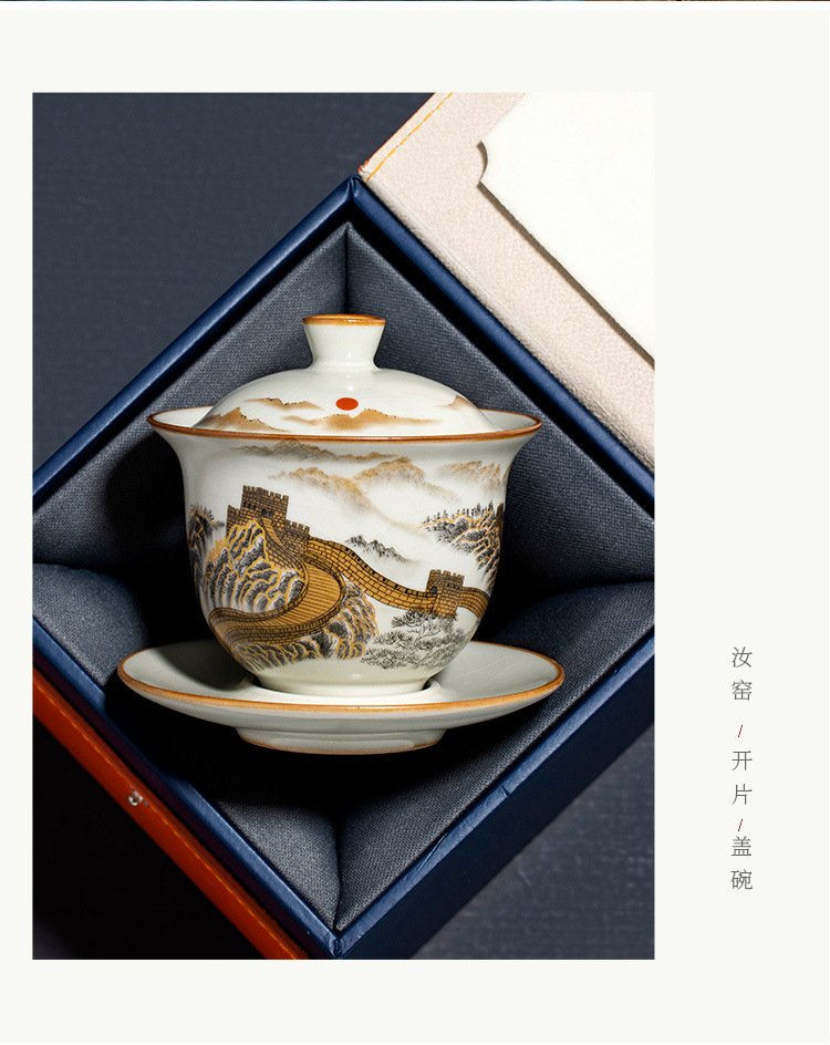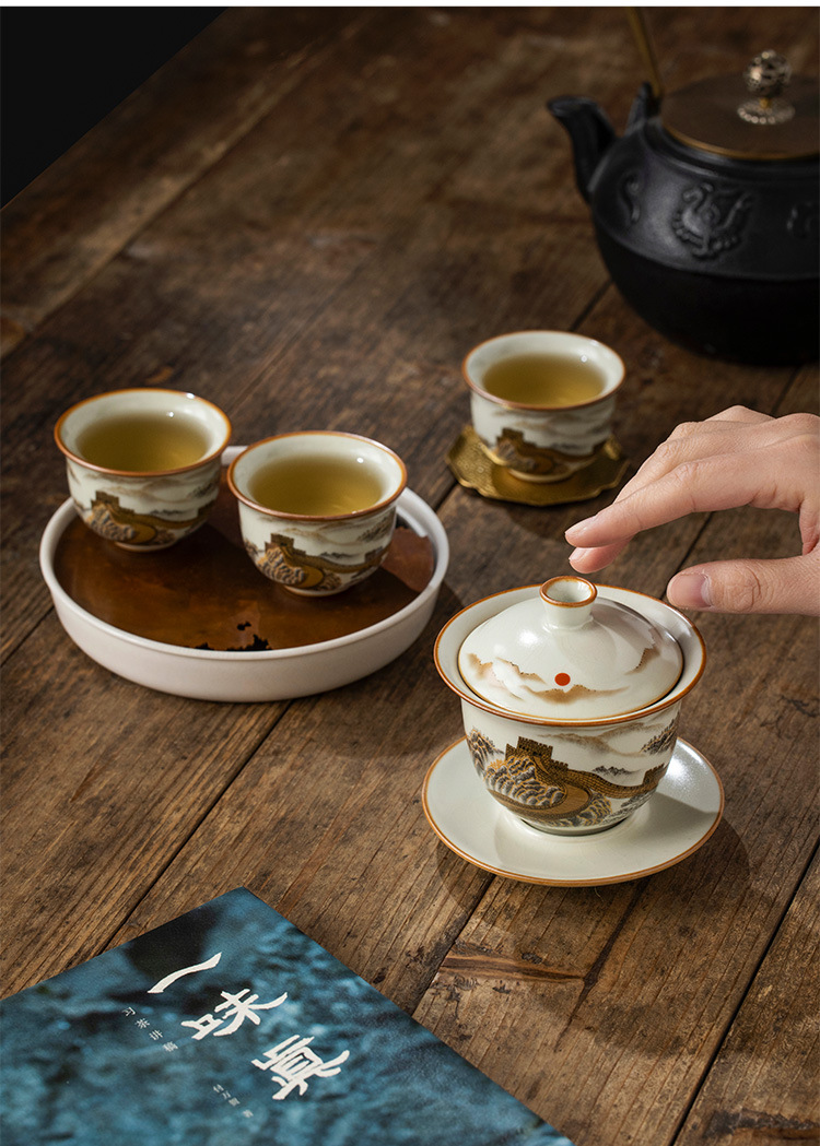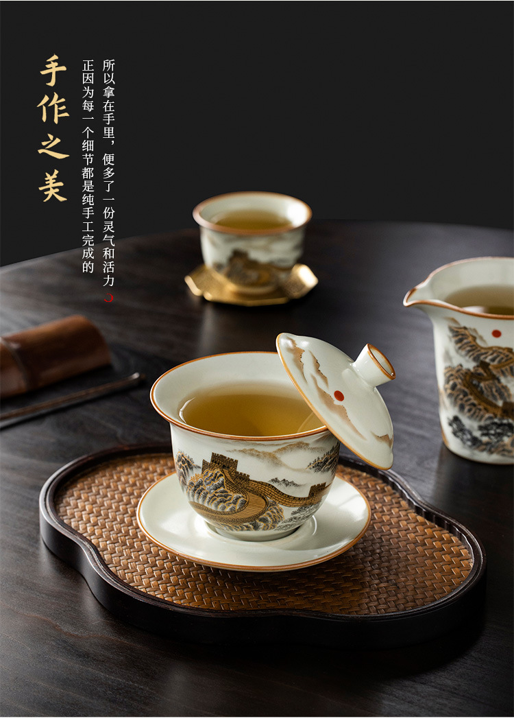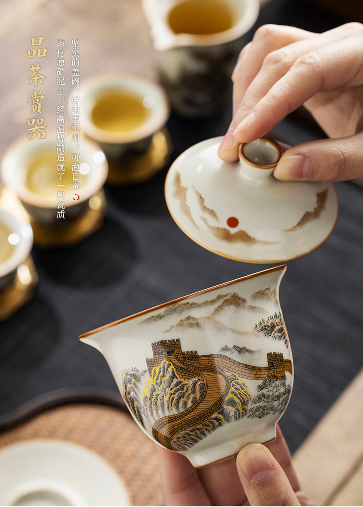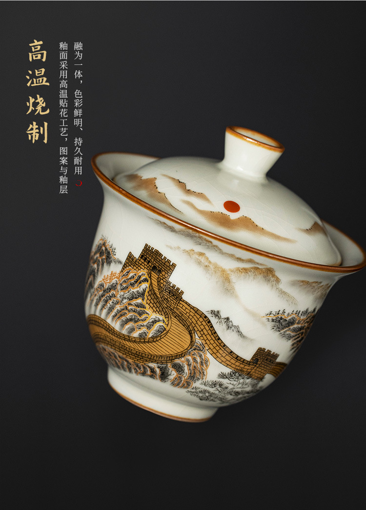 Cốc trà nắp tam tài Vạn Lý Trường Thành lơ lửng bát trà cỡ lớn cao cấp có nắp bộ trà mẫu mới 2025