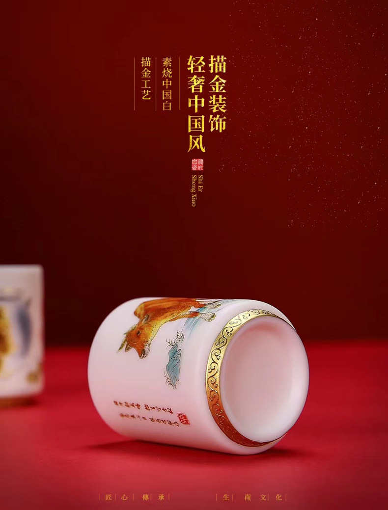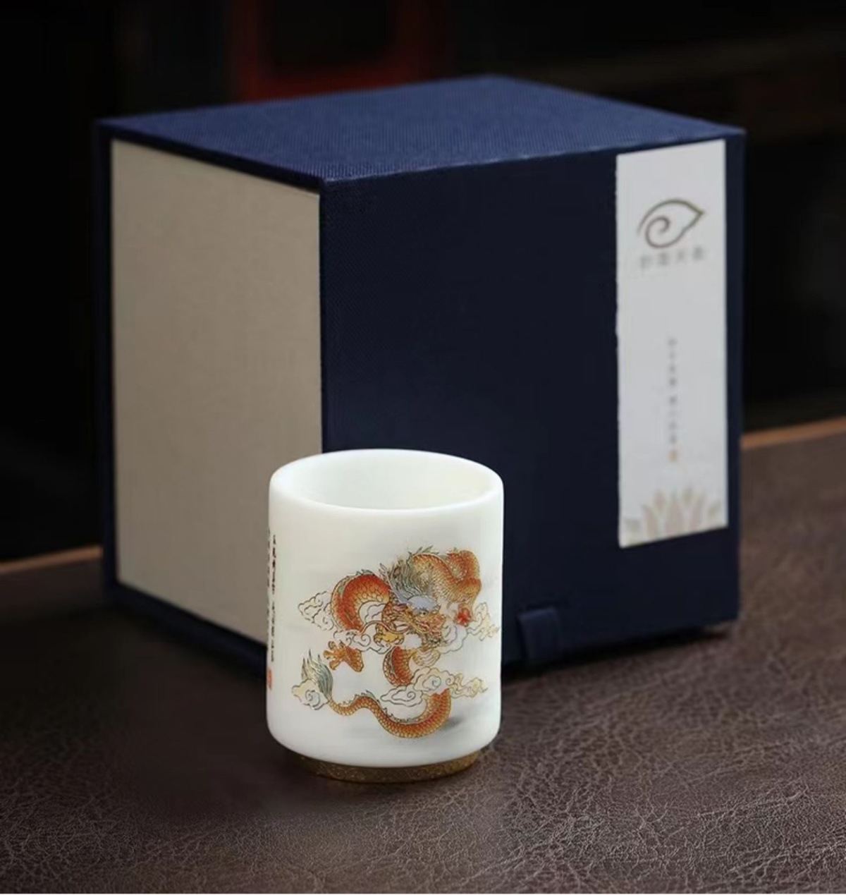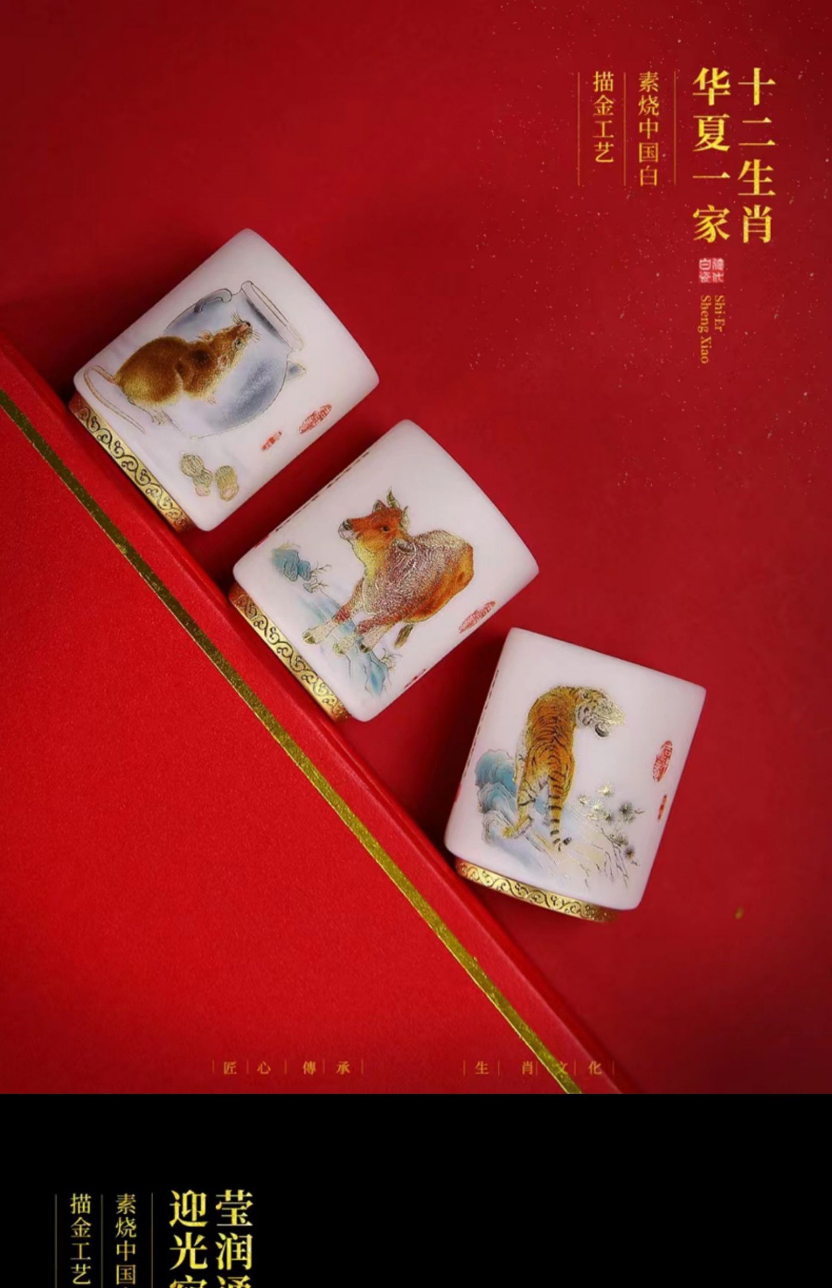 Cốc trà ngọc bích mỡ cừu sứ trắng Dehua, cốc chủ nhân, bộ trà Kung Fu 12 cung hoàng đạo, phong cách Trung Quốc cá nhân