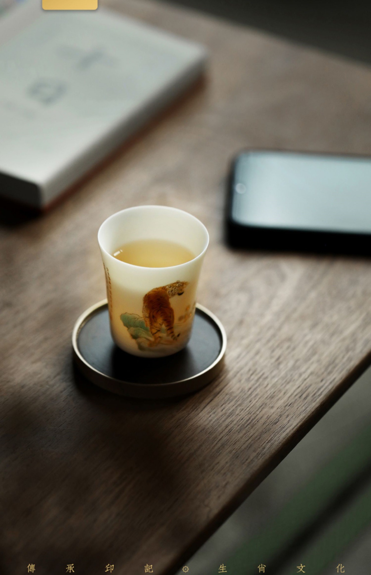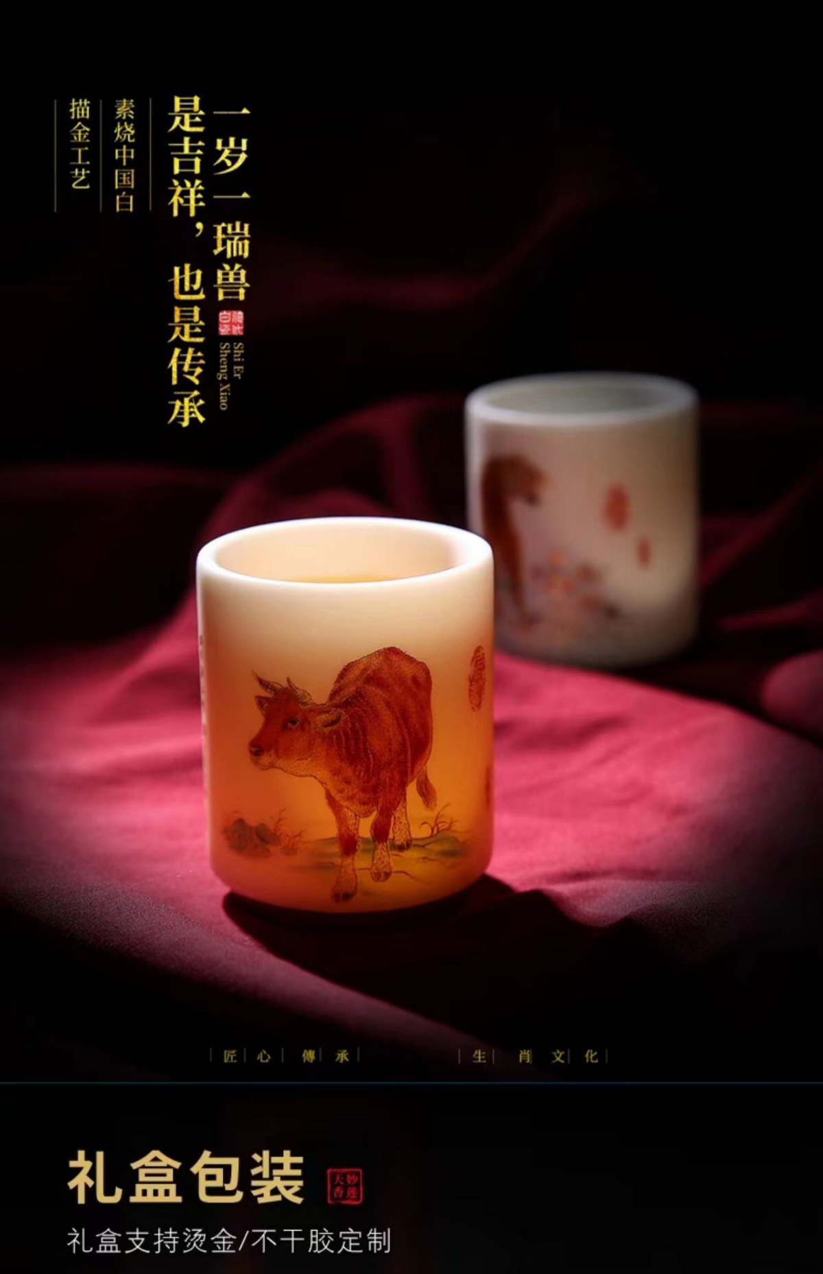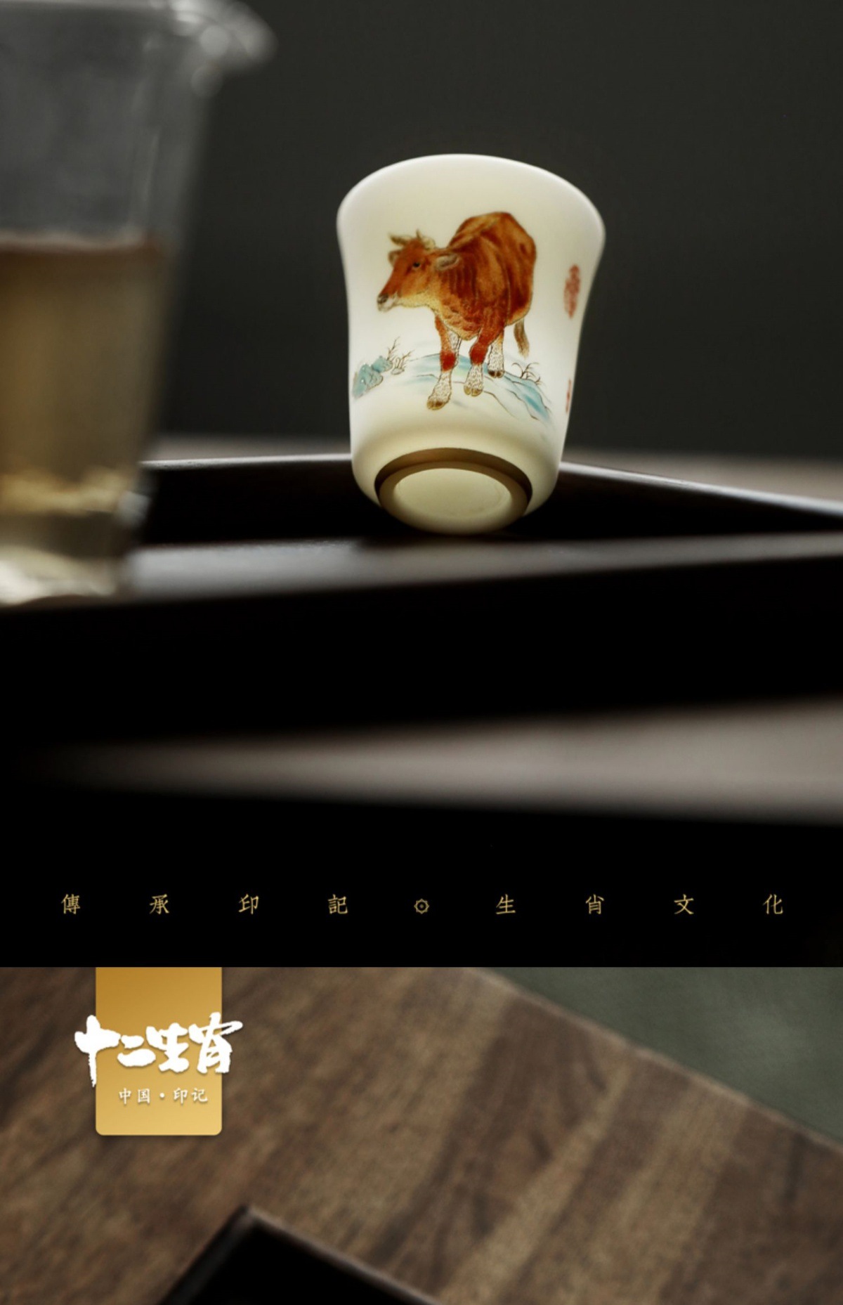Cốc trà ngọc bích mỡ cừu sứ trắng Dehua, cốc chủ nhân, bộ trà Kung Fu 12 cung hoàng đạo, phong cách Trung Quốc cá nhân