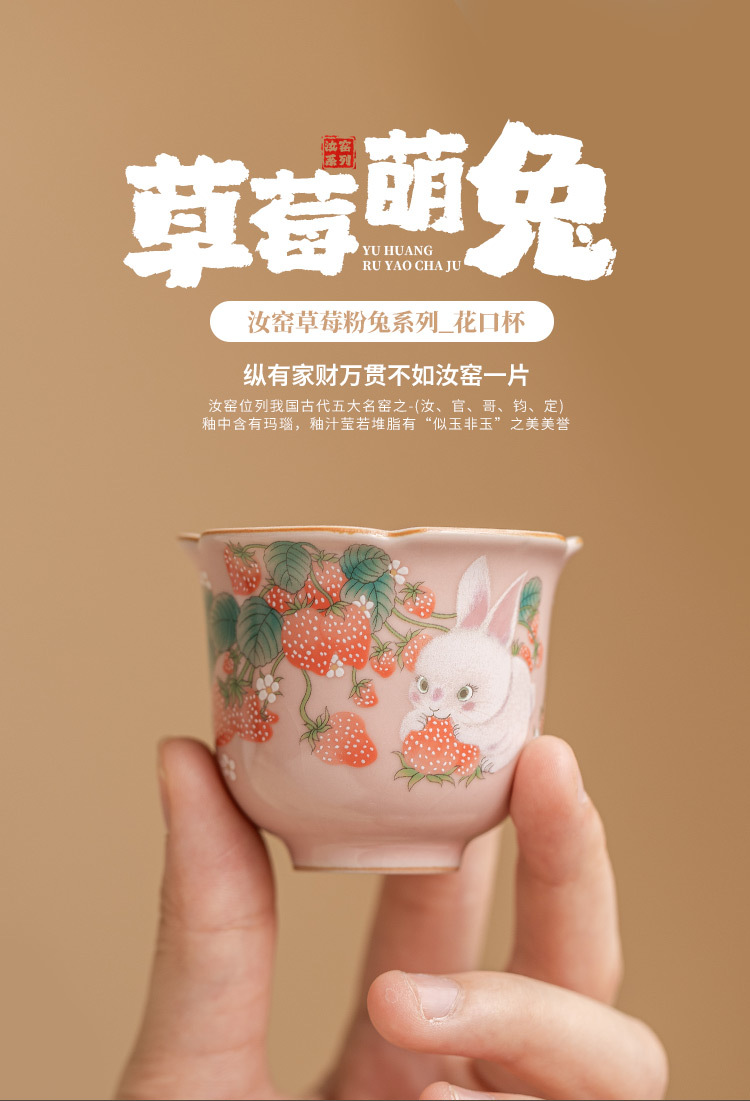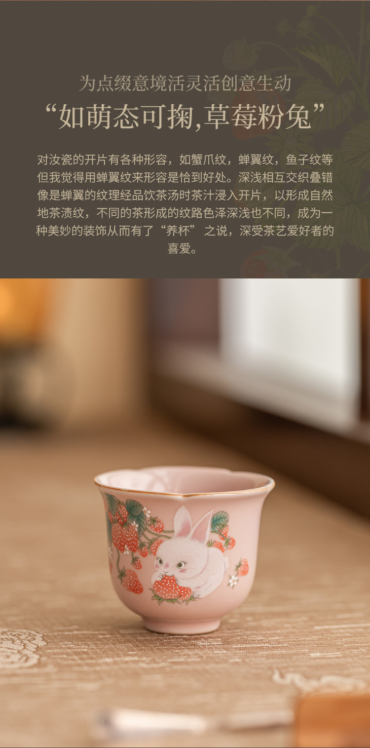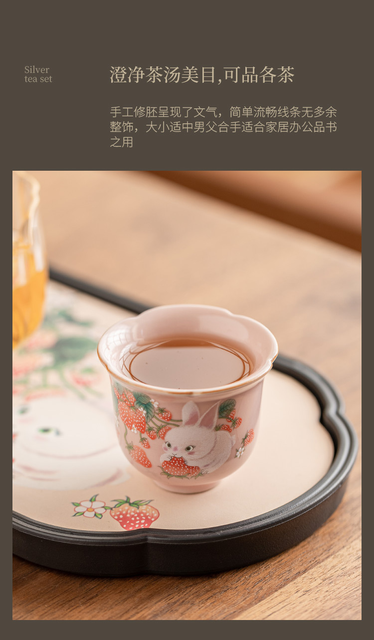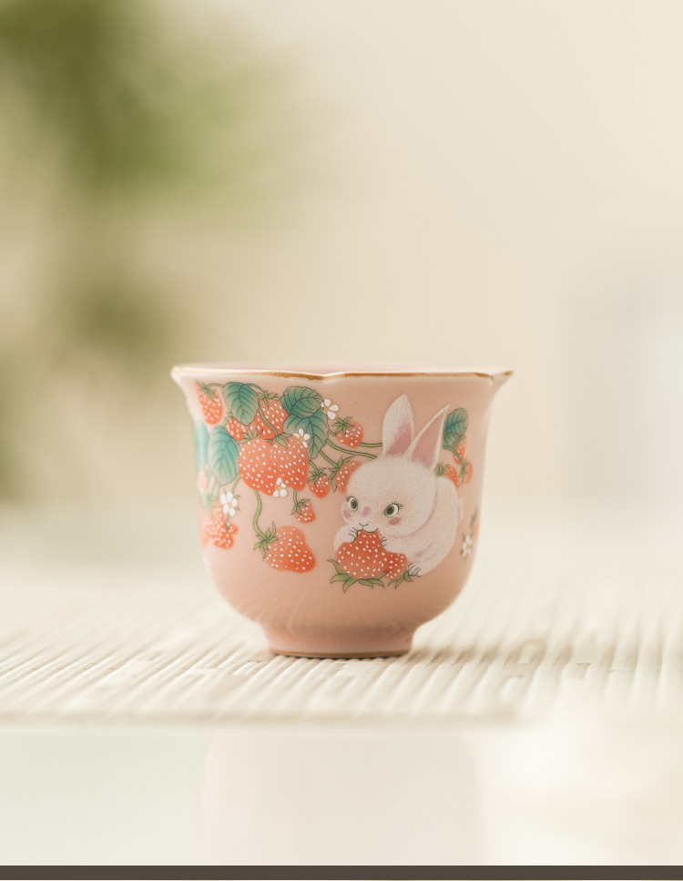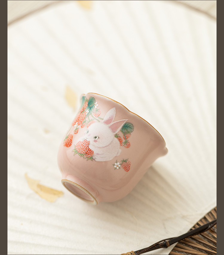 - Cốc trà nhỏ hình thỏ dâu cốc cánh hoa cốc chủ nhân giá trị cao cốc đơn bộ trà gốm sứ Trung Quốc cốc trà