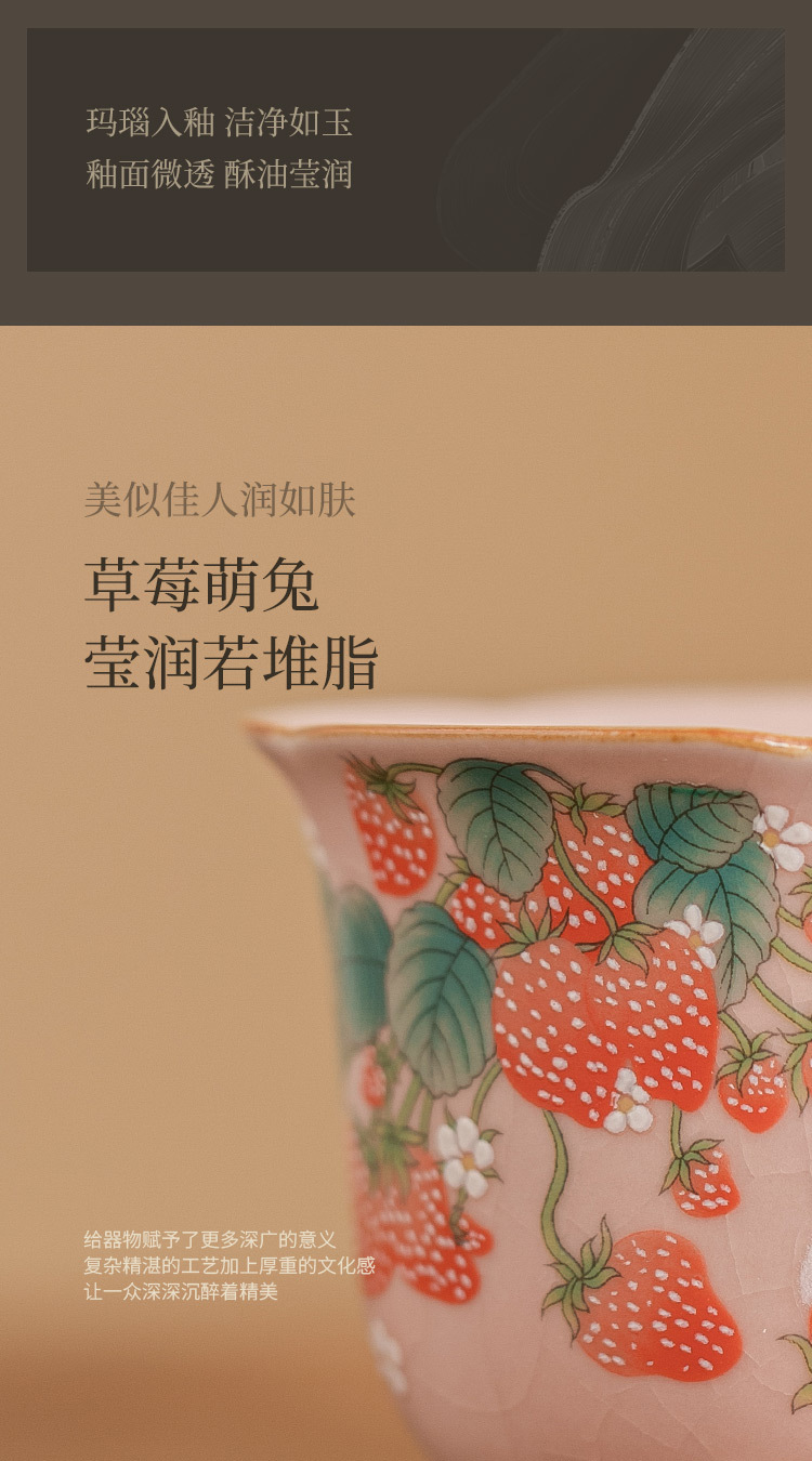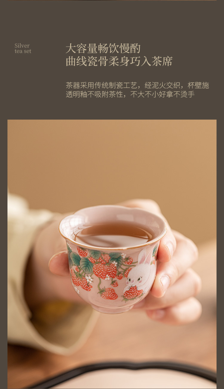 Cốc trà nhỏ hình thỏ dâu cốc cánh hoa cốc chủ nhân giá trị cao cốc đơn bộ trà gốm sứ Trung Quốc cốc trà