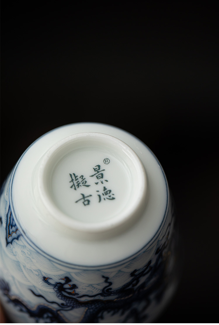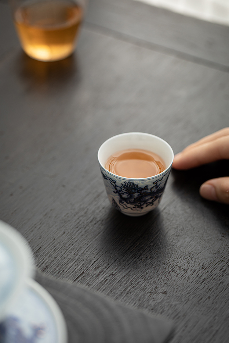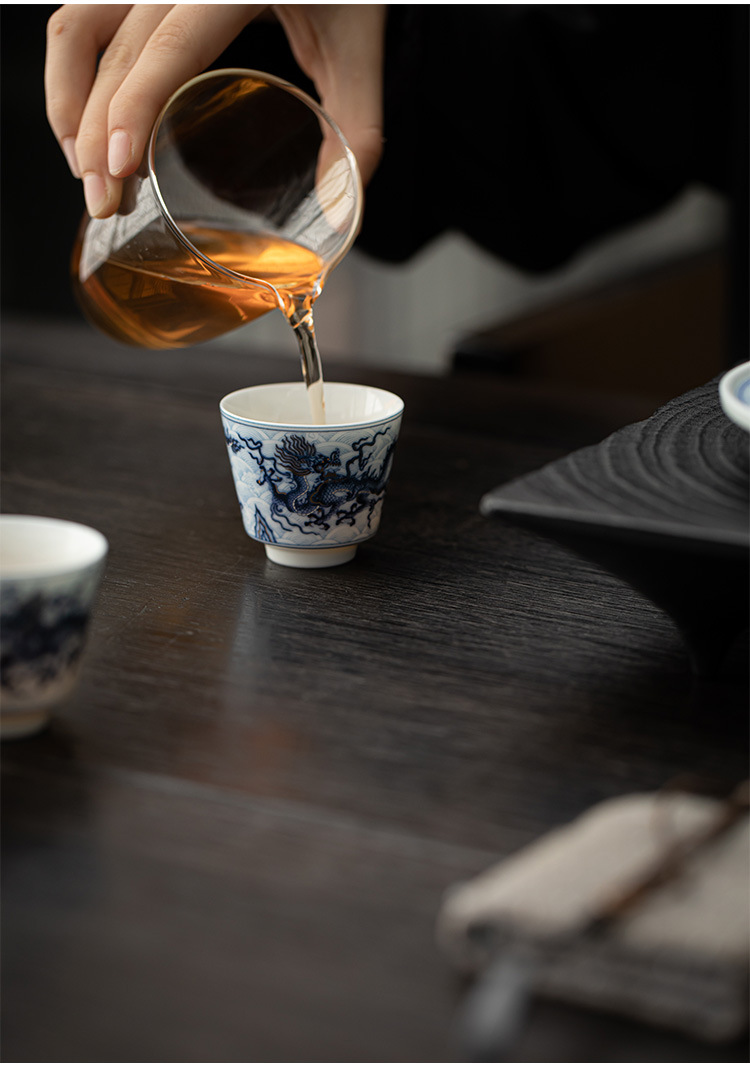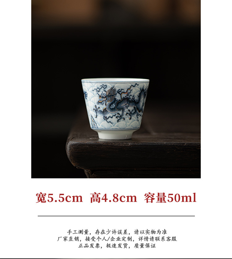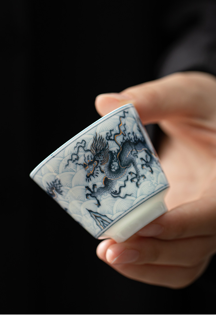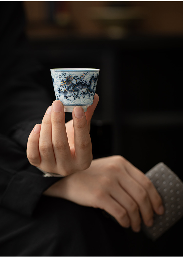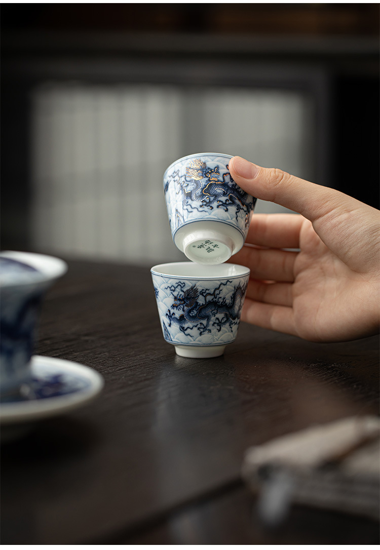 Cốc trà nhỏ Kung Fu gốm sứ hoa văn rồng vàng bạc cốc pha trà gia dụng cốc thưởng thức cốc chủ nhân cổ điển cốc đơn cốc uống trà