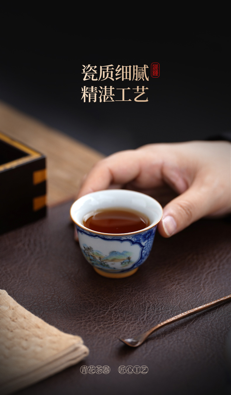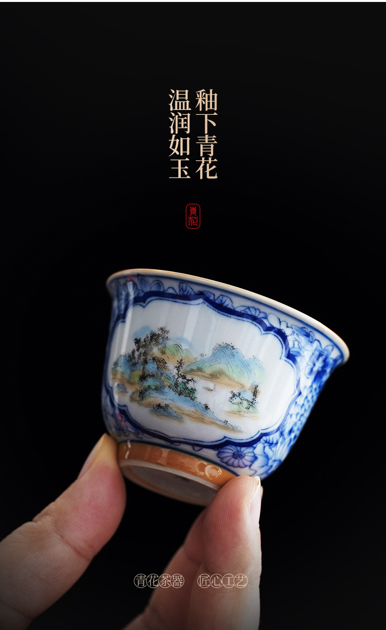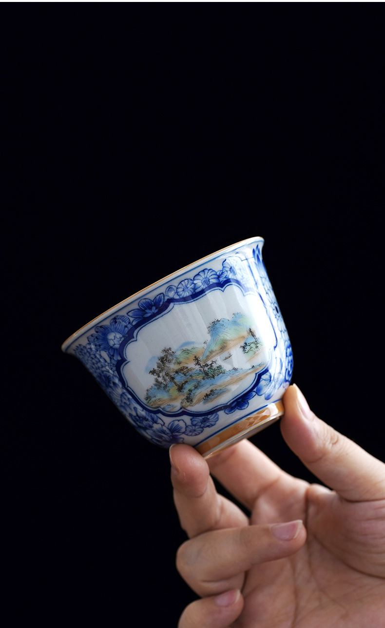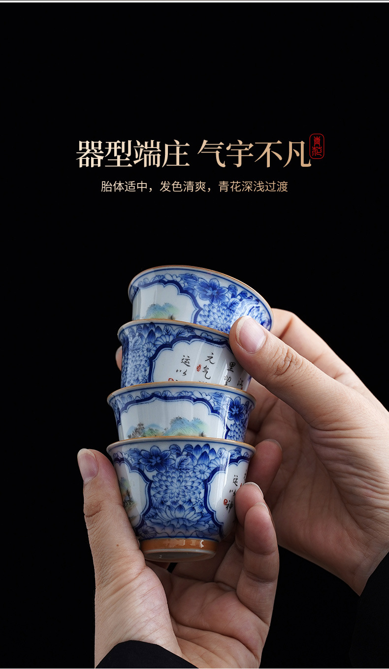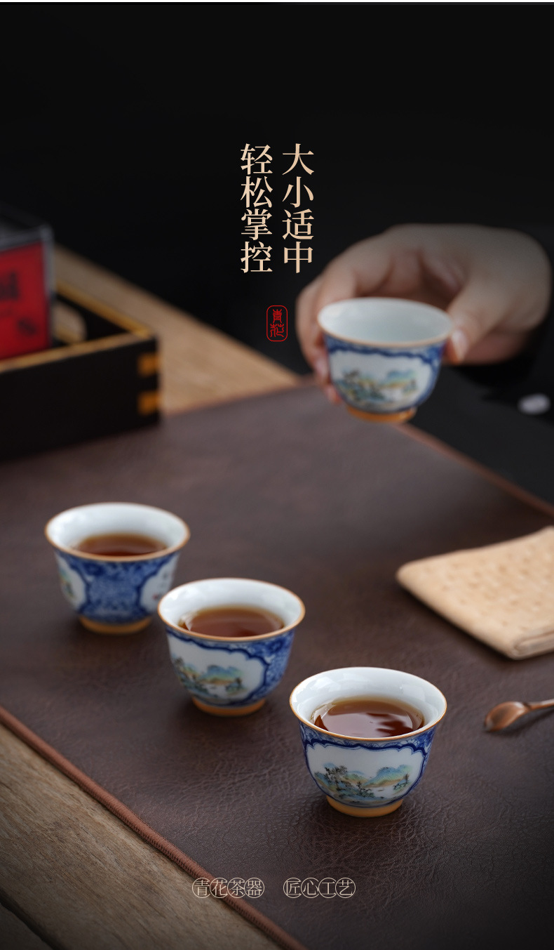 - Cốc trà phong cảnh cửa sổ mở màu xanh và trắng, bộ trà Kung Fu chuyên dụng cá nhân cao cấp, cốc trà gốm sứ, cốc uống trà, cốc đơn