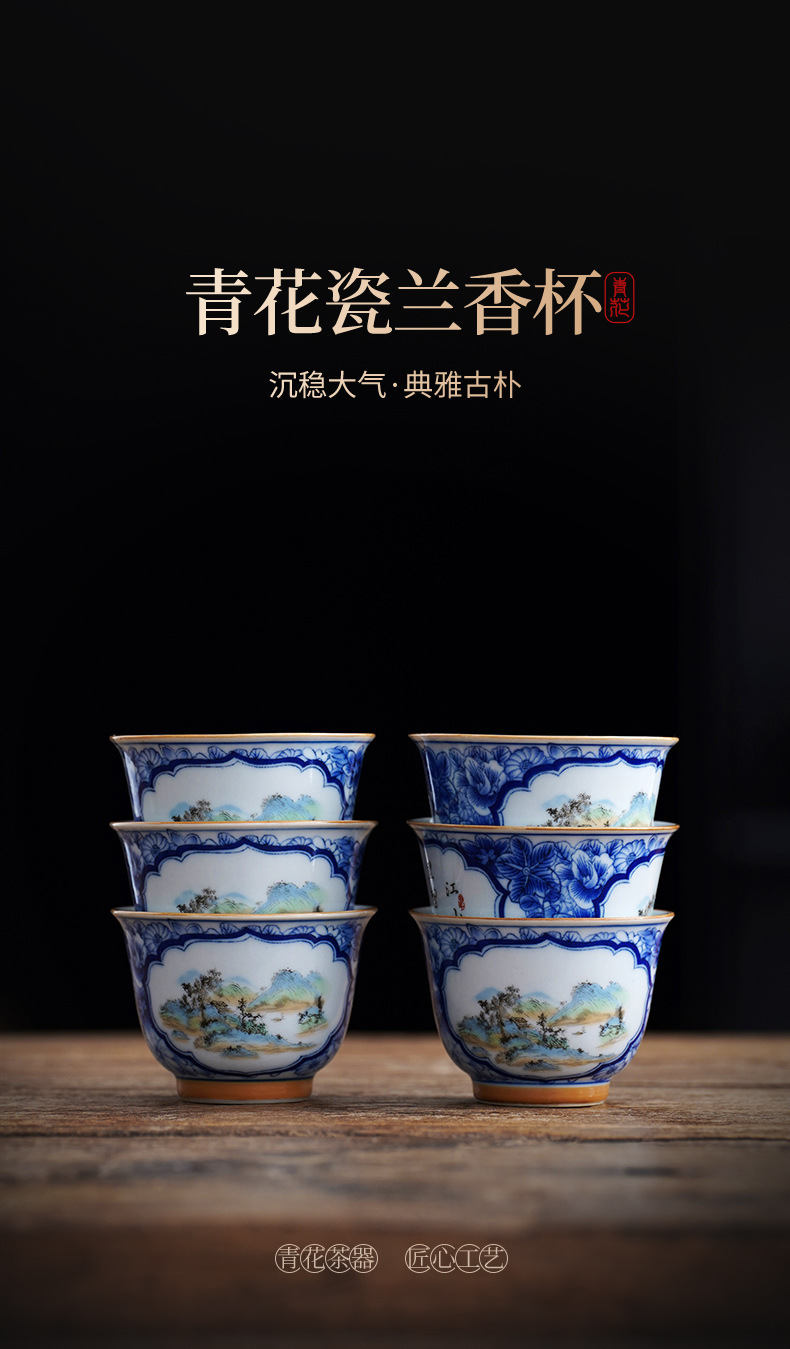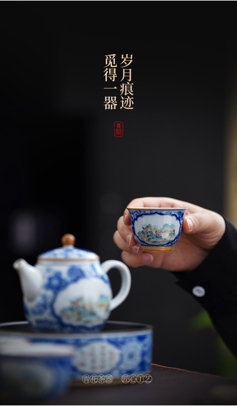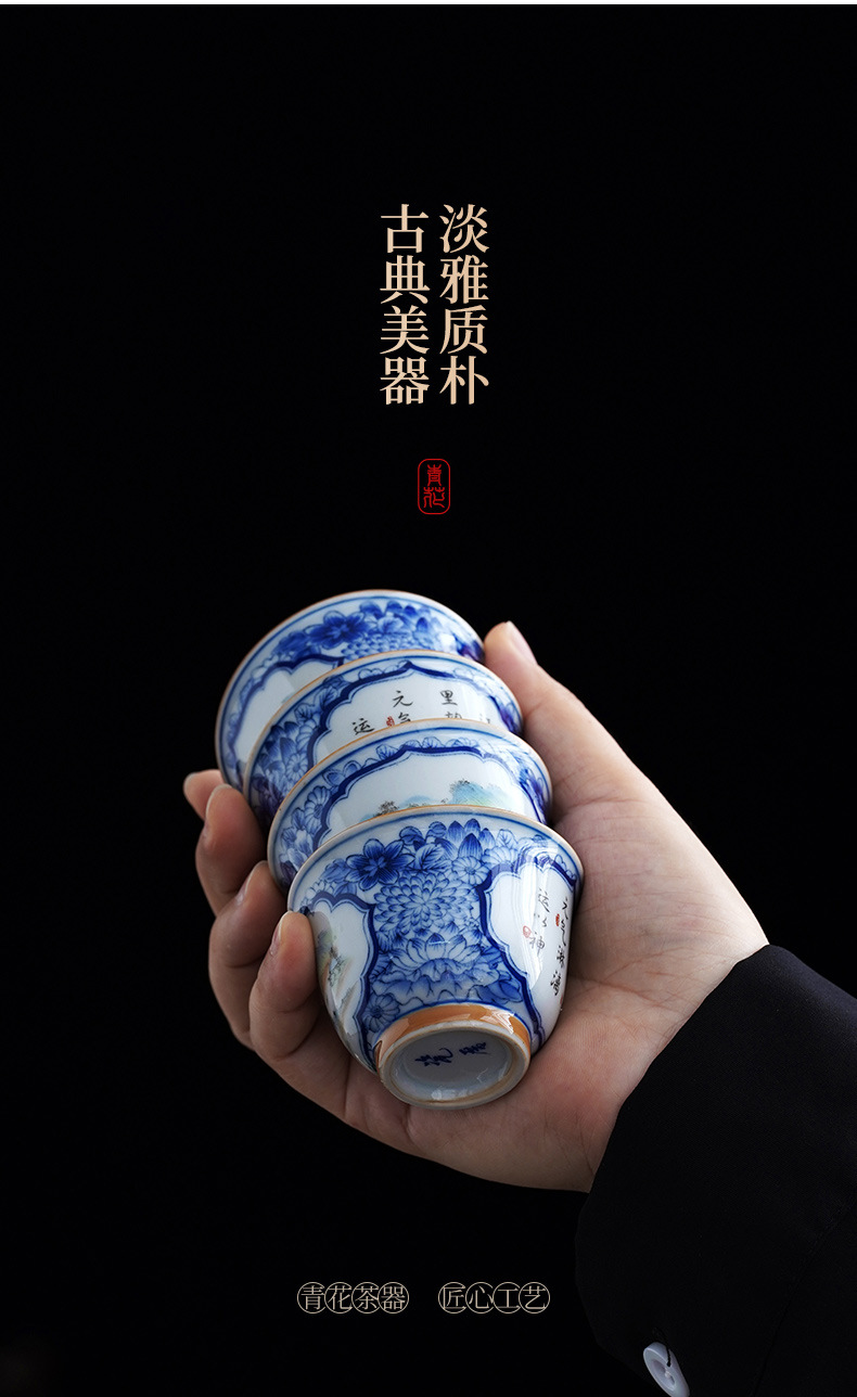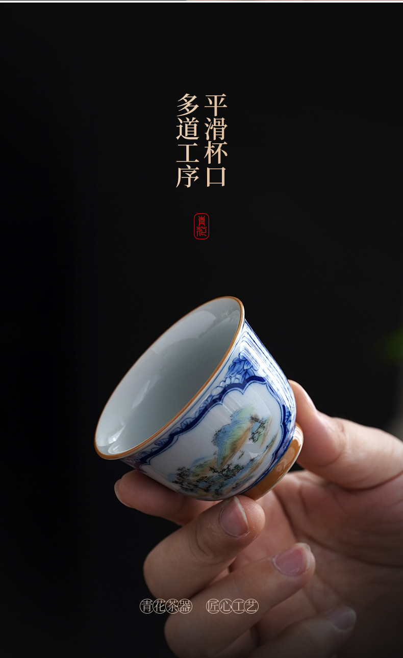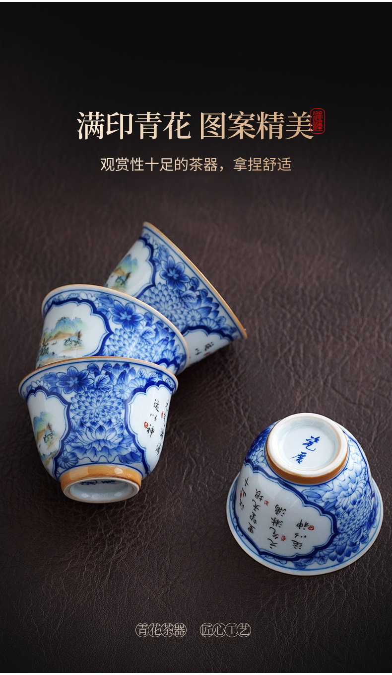 - Cốc trà phong cảnh cửa sổ mở màu xanh và trắng, bộ trà Kung Fu chuyên dụng cá nhân cao cấp, cốc trà gốm sứ, cốc uống trà, cốc đơn
