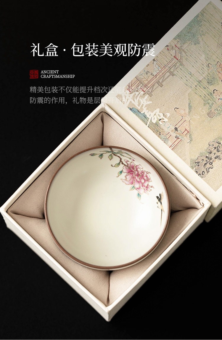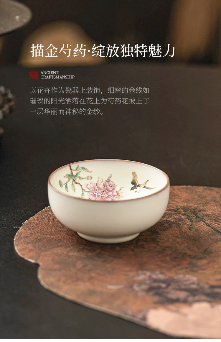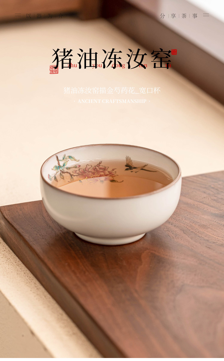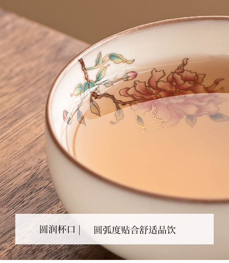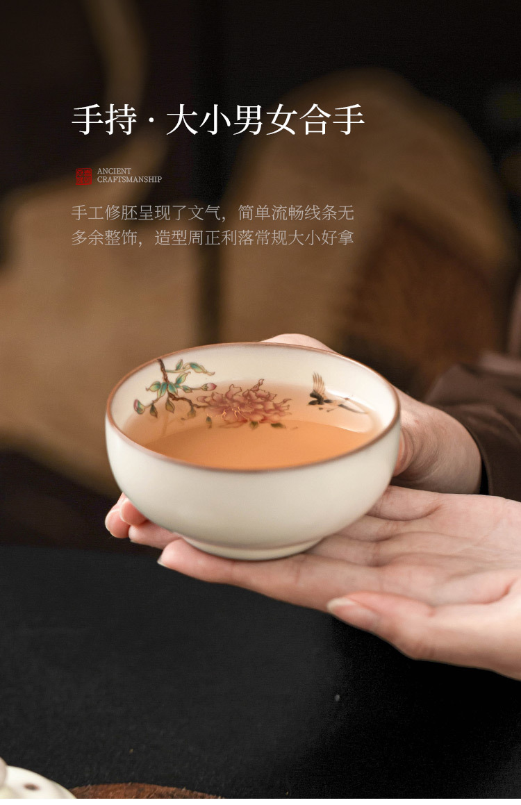 - Cốc trà Ru Kiln Cốc chủ nhân gốm sứ cao cấp Cốc uống trà gia dụng Cốc trà bình mỡ lợn đông lạnh hoa mẫu đơn cốc miệng rộng