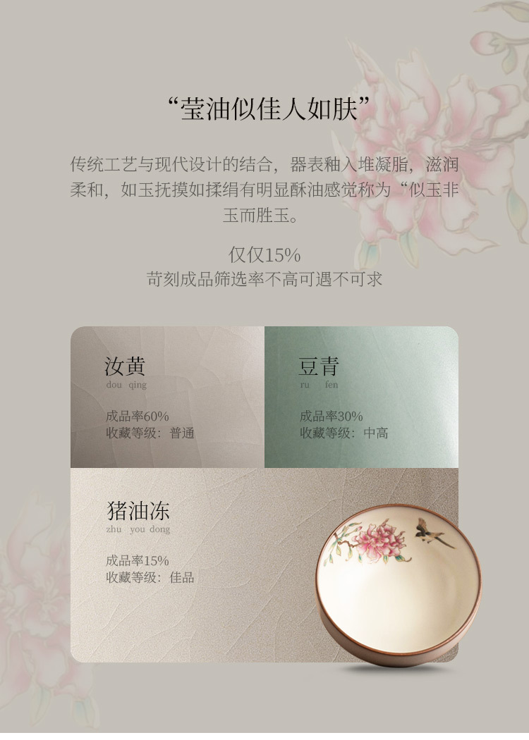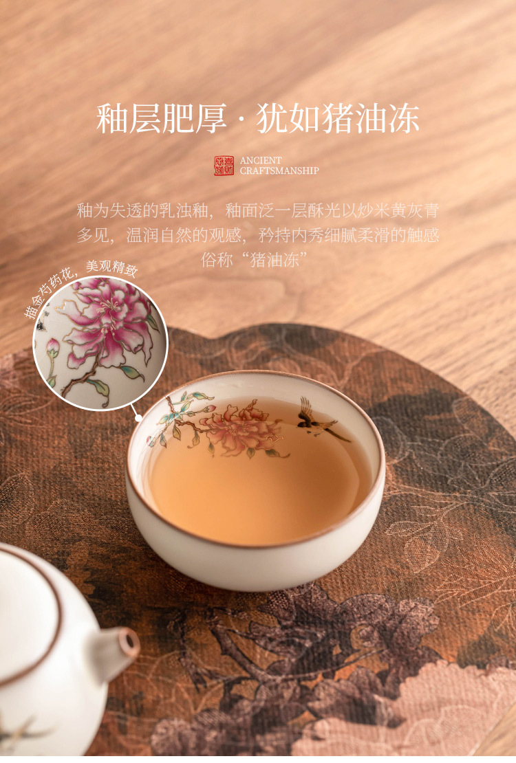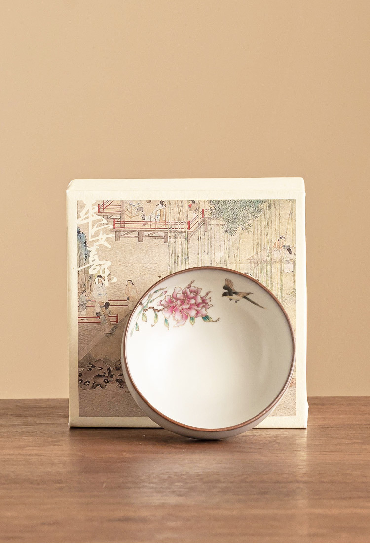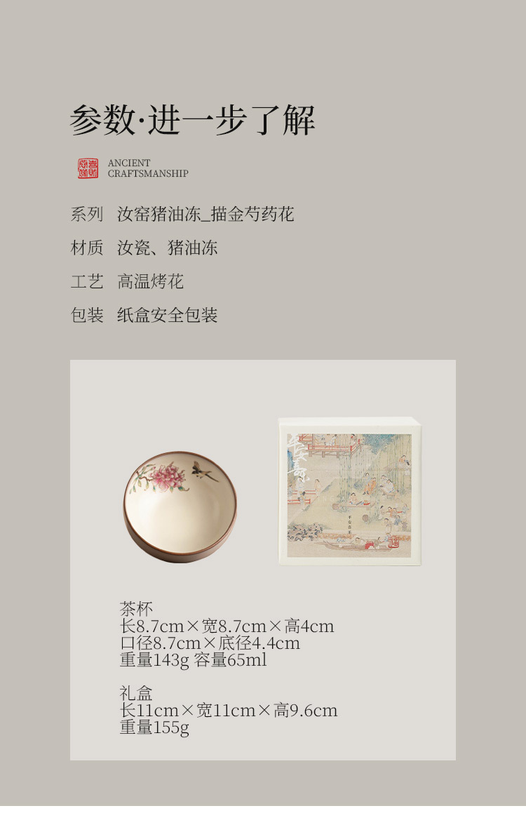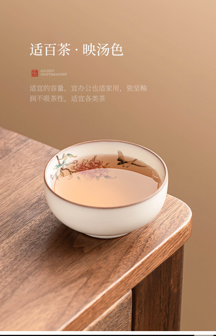 - Cốc trà Ru Kiln Cốc chủ nhân gốm sứ cao cấp Cốc uống trà gia dụng Cốc trà bình mỡ lợn đông lạnh hoa mẫu đơn cốc miệng rộng