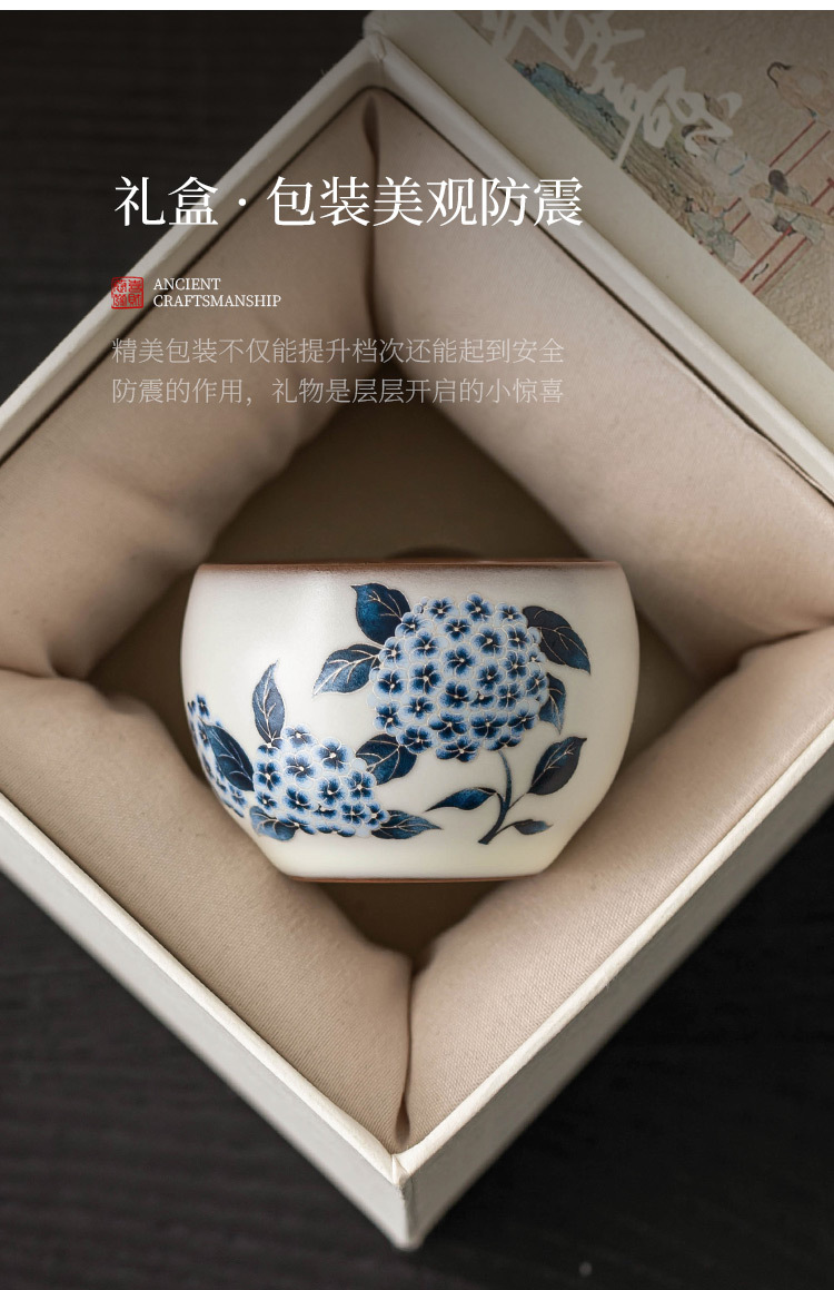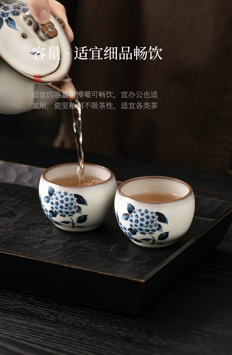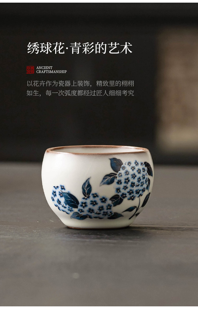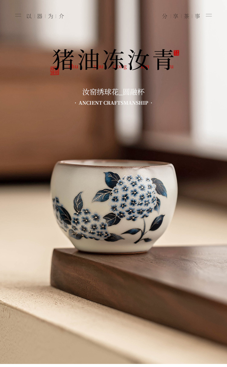- Cốc trà Ruyao cốc chủ nhân cốc mỡ lợn đông lạnh hoa cẩm tú cầu Ruqing cốc tròn đựng trà Kung Fu cốc trà dung tích lớn chống bỏng