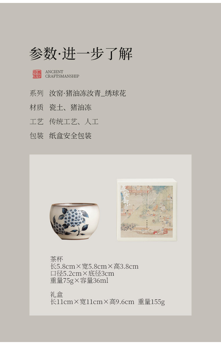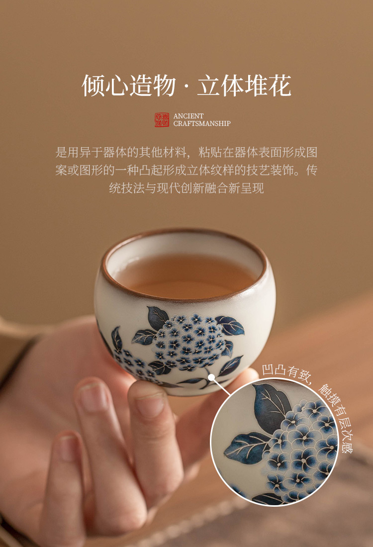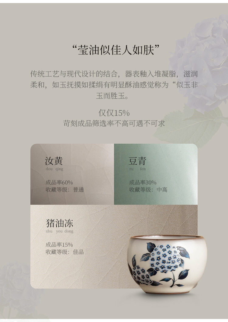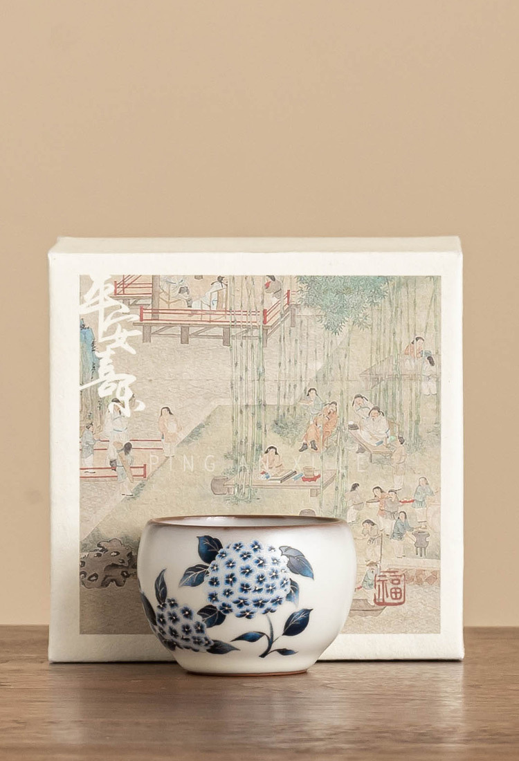 - Cốc trà Ruyao cốc chủ nhân cốc mỡ lợn đông lạnh hoa cẩm tú cầu Ruqing cốc tròn đựng trà Kung Fu cốc trà dung tích lớn chống bỏng