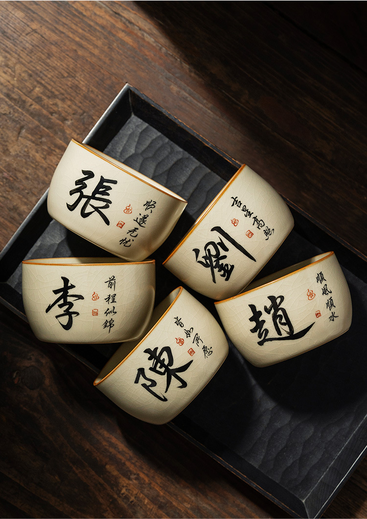 Cốc trà Ruyao, hàng trăm họ, cốc chủ nhân viết tay, cốc đơn, bộ trà Kung Fu gia dụng gốm sứ, cốc trà