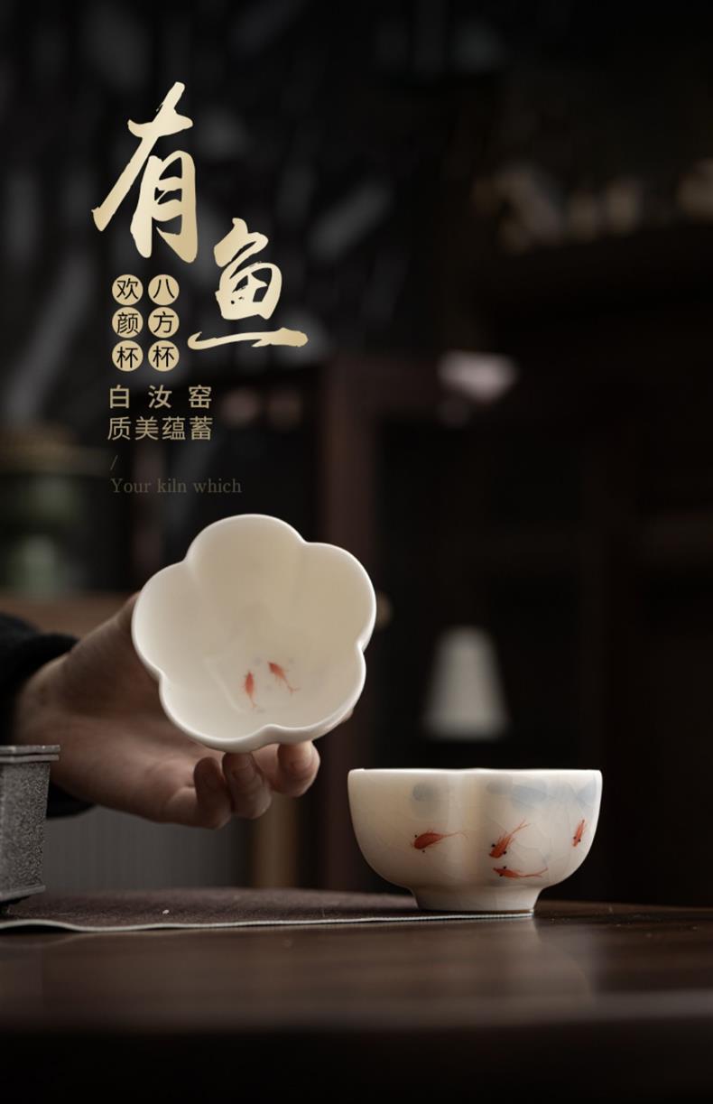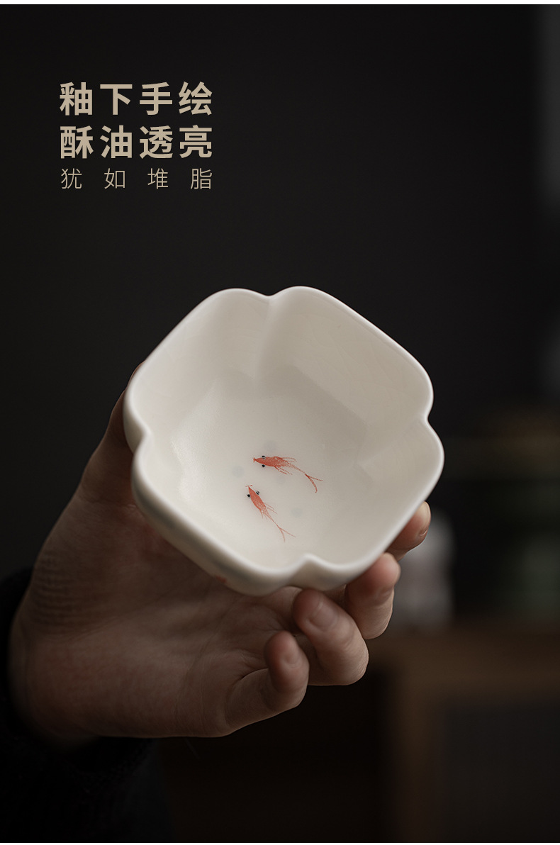 - Cốc trà sứ trắng cao cấp, bộ trà kungfu, cốc chủ lò Ru, chén trà đơn, sứ vẽ tay, quà lưu niệm cá