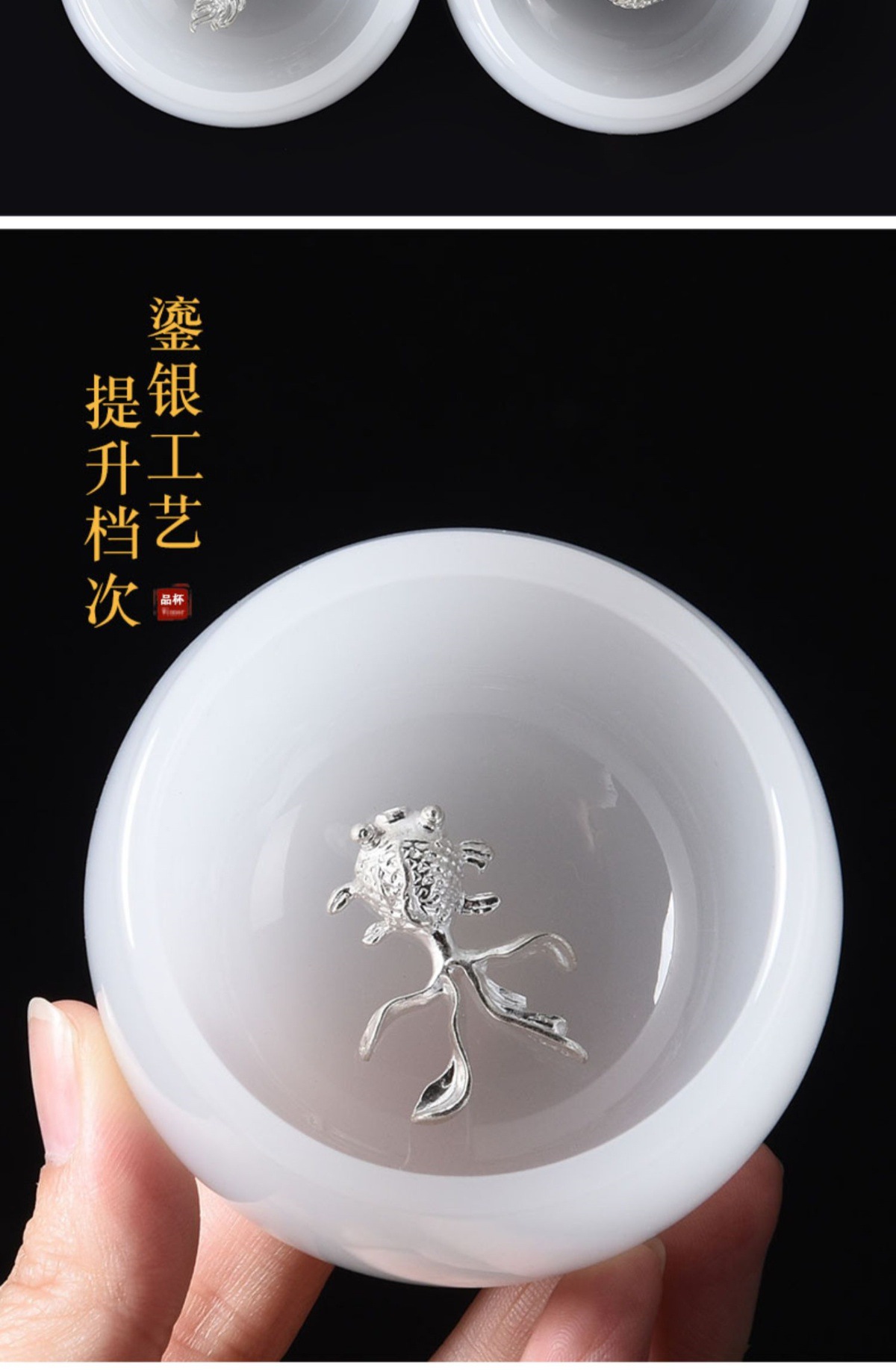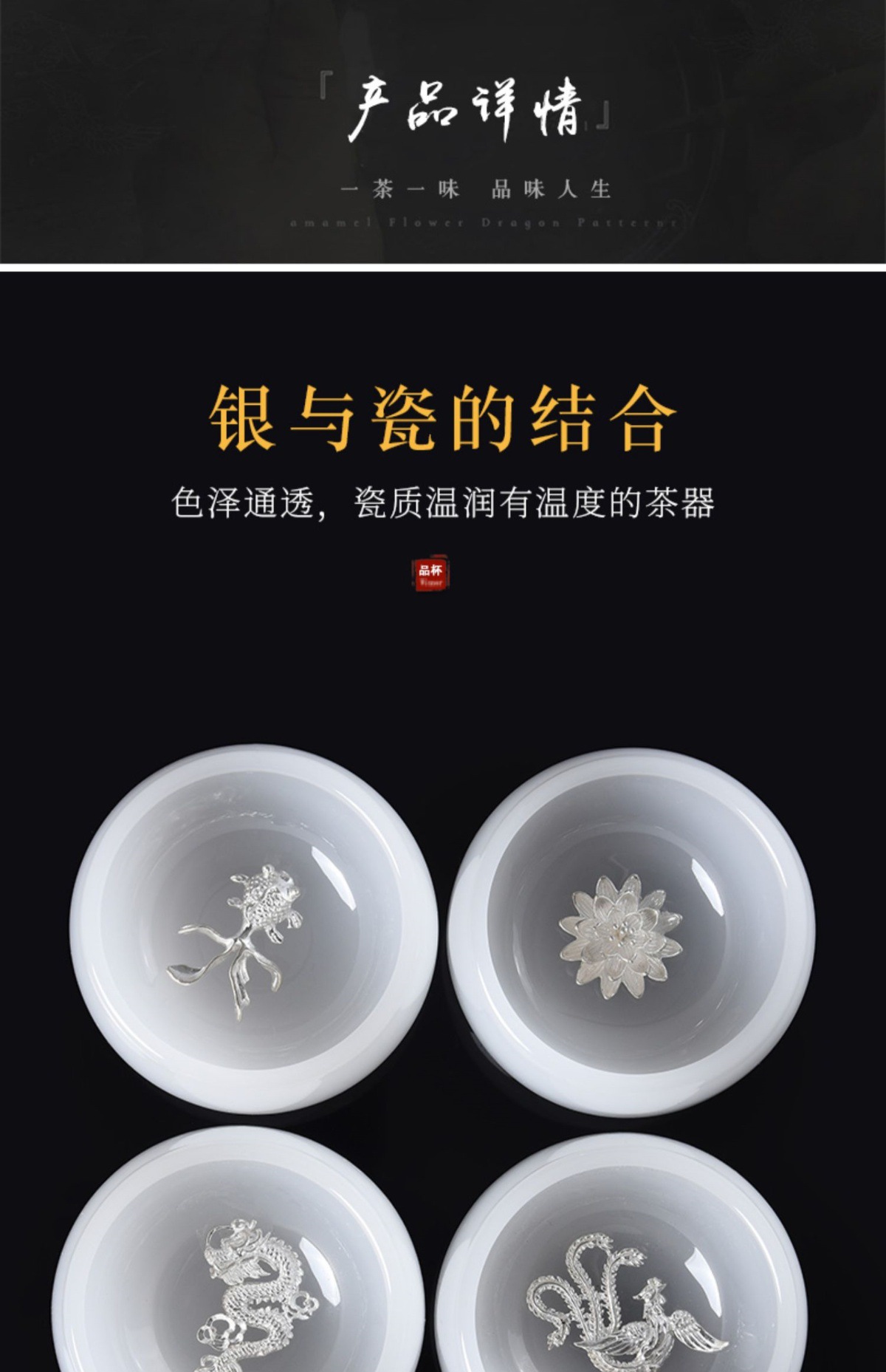 - Cốc trà sứ trắng sứ ngọc dát bạc gia dụng cốc trà cỡ lớn cốc trà ngọc lưu ly cốc chủ nhân cốc đơn cốc bạc hộp quà