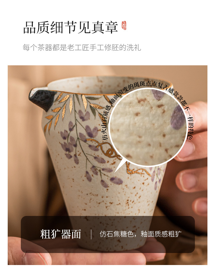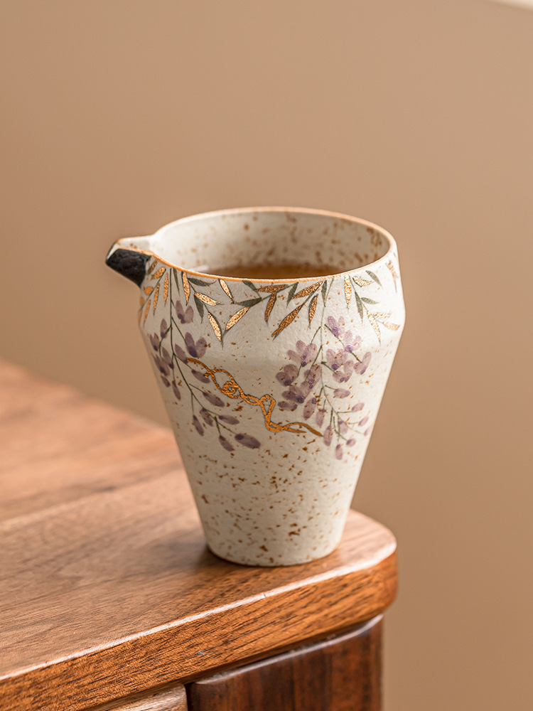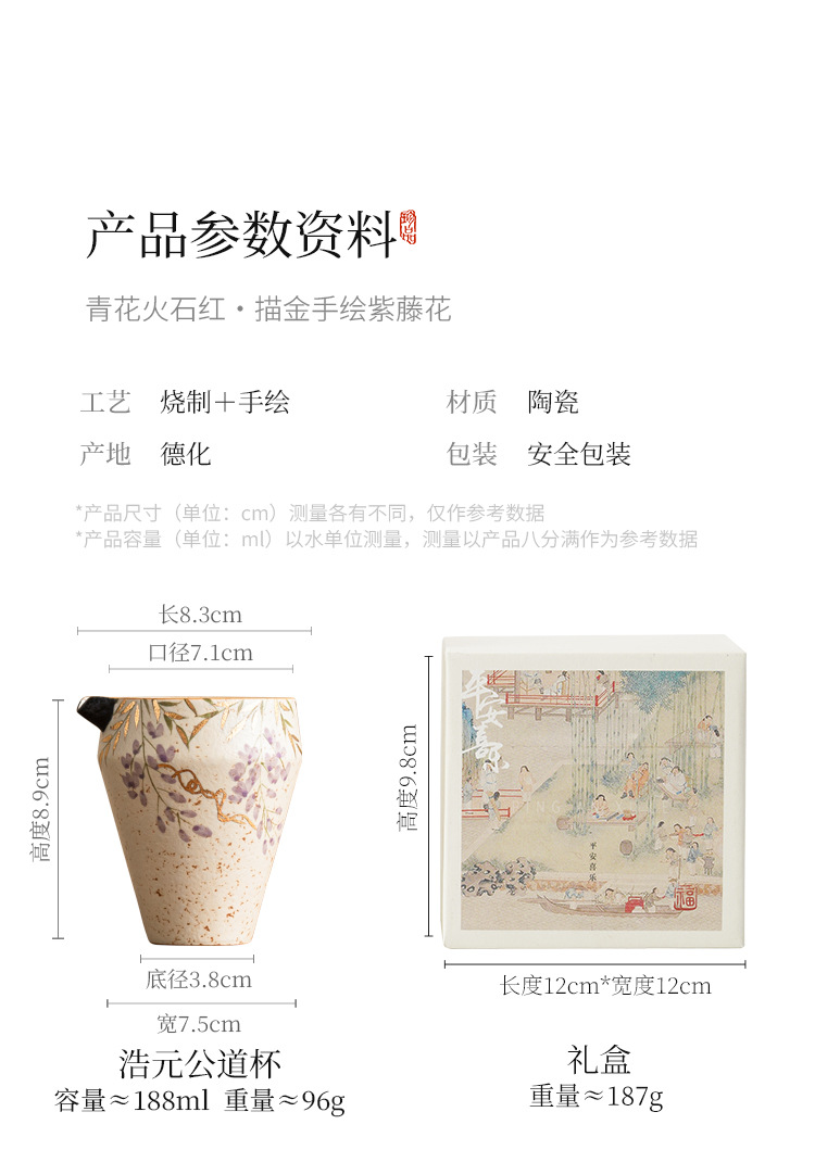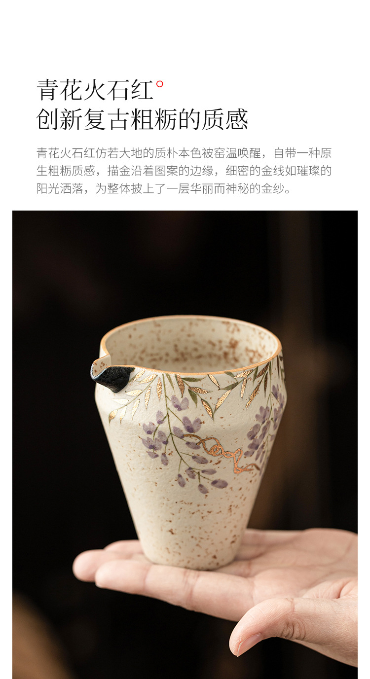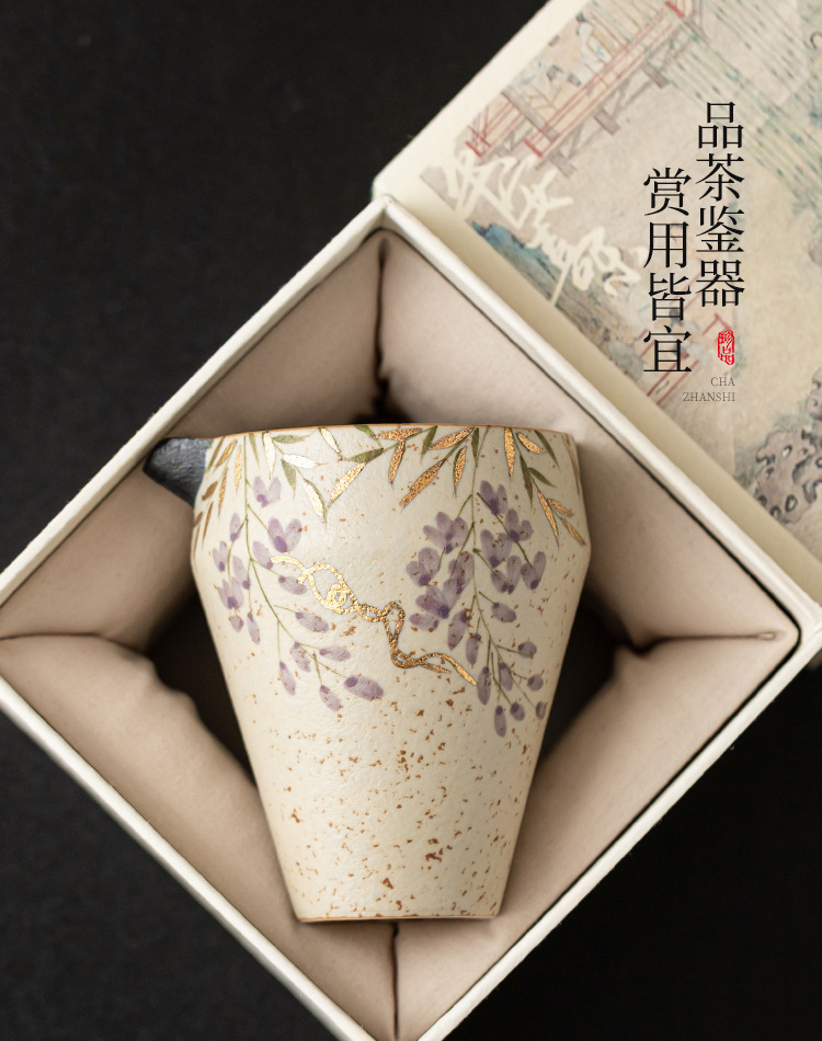 Cốc trà sứ trắng xanh và đá lửa đỏ cốc trà sứ cao cấp Haifen cốc hoa tử đằng vẽ tay bằng vàng phụ kiện trà đạo