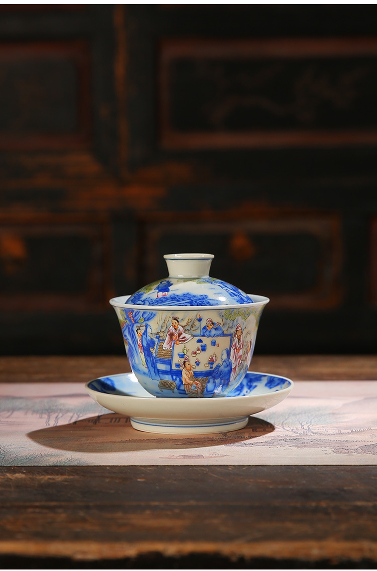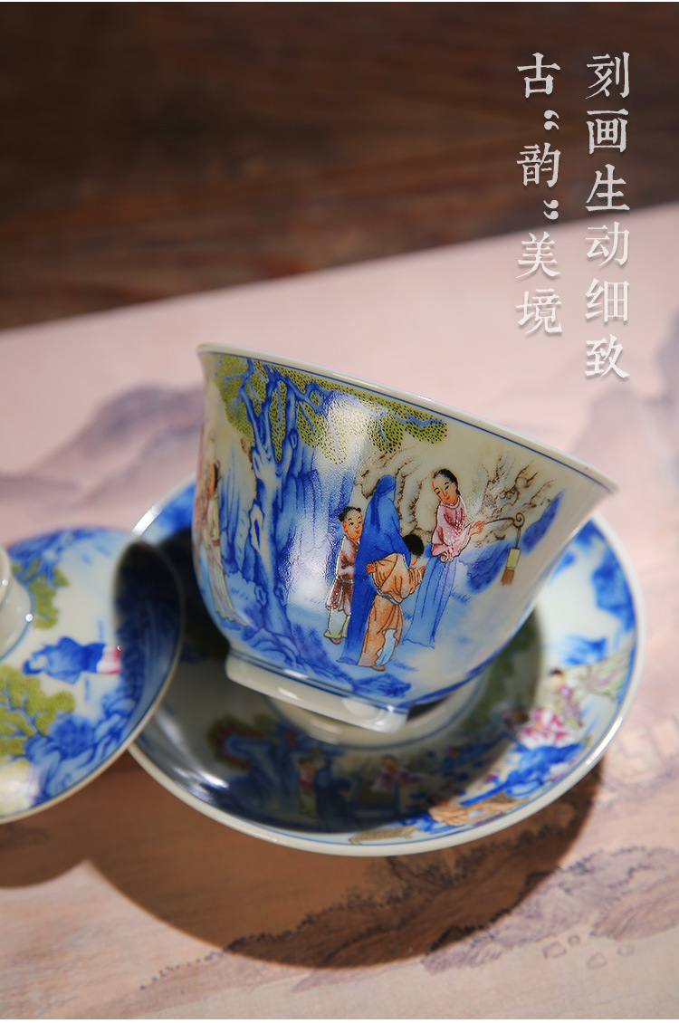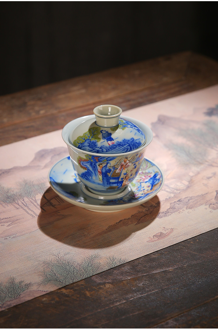 Cốc trà tam tài tráng men cổ bát trà gốm sứ yến tiệc đêm đào mận thủ công bát trà Kung Fu bộ trà bát trà lưu niệm