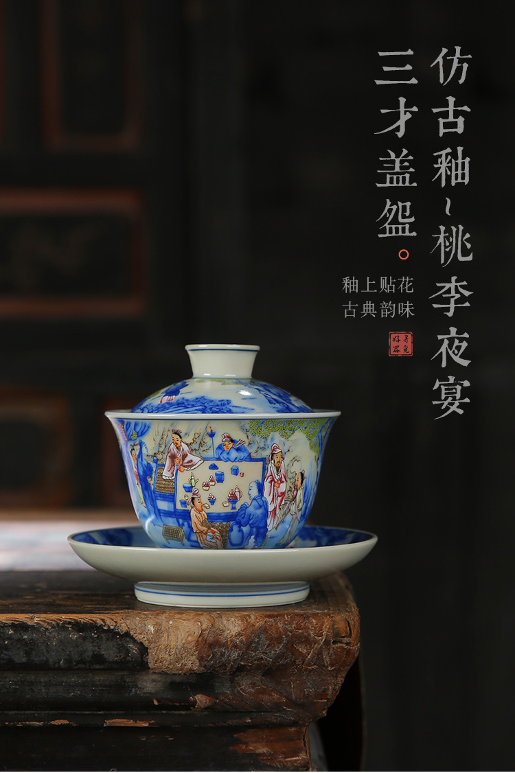 - Cốc trà tam tài tráng men cổ bát trà gốm sứ yến tiệc đêm đào mận thủ công bát trà Kung Fu bộ trà bát trà lưu niệm