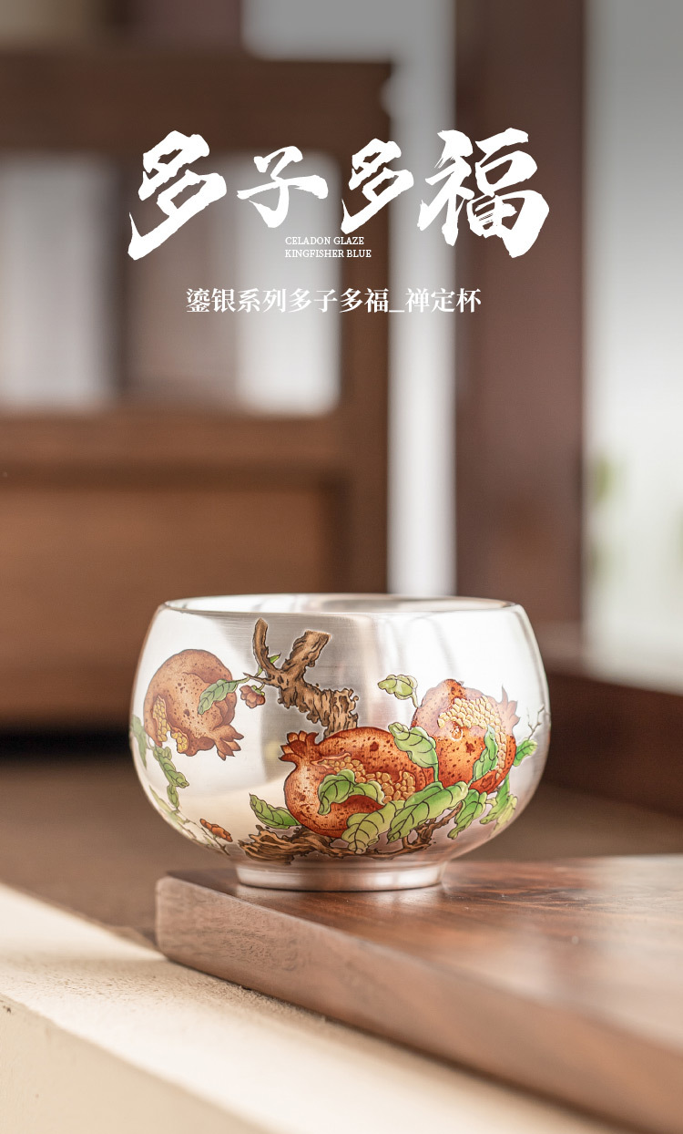 Cốc trà thiền kiểu Trung Quốc 999 cốc chủ nhân mạ bạc đa tử cốc thiền đa tử cốc trà cốc trà gốm sứ cốc đơn