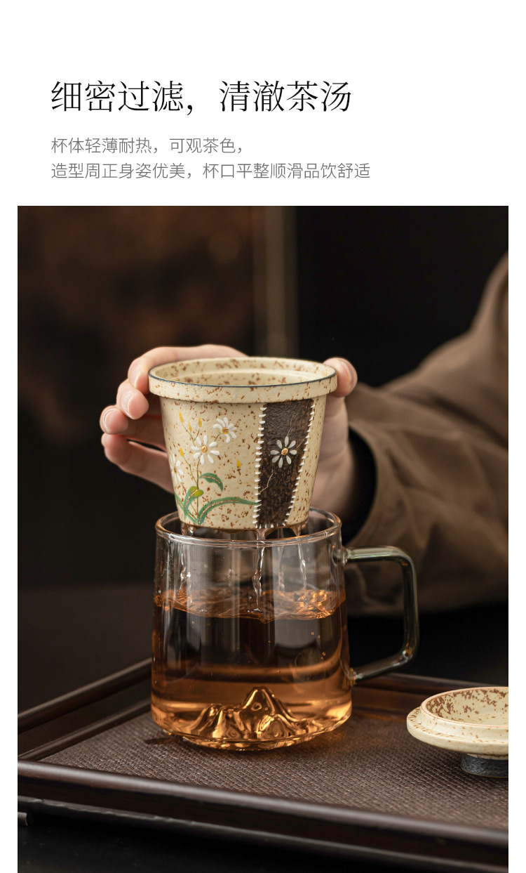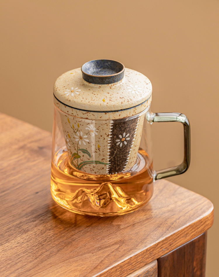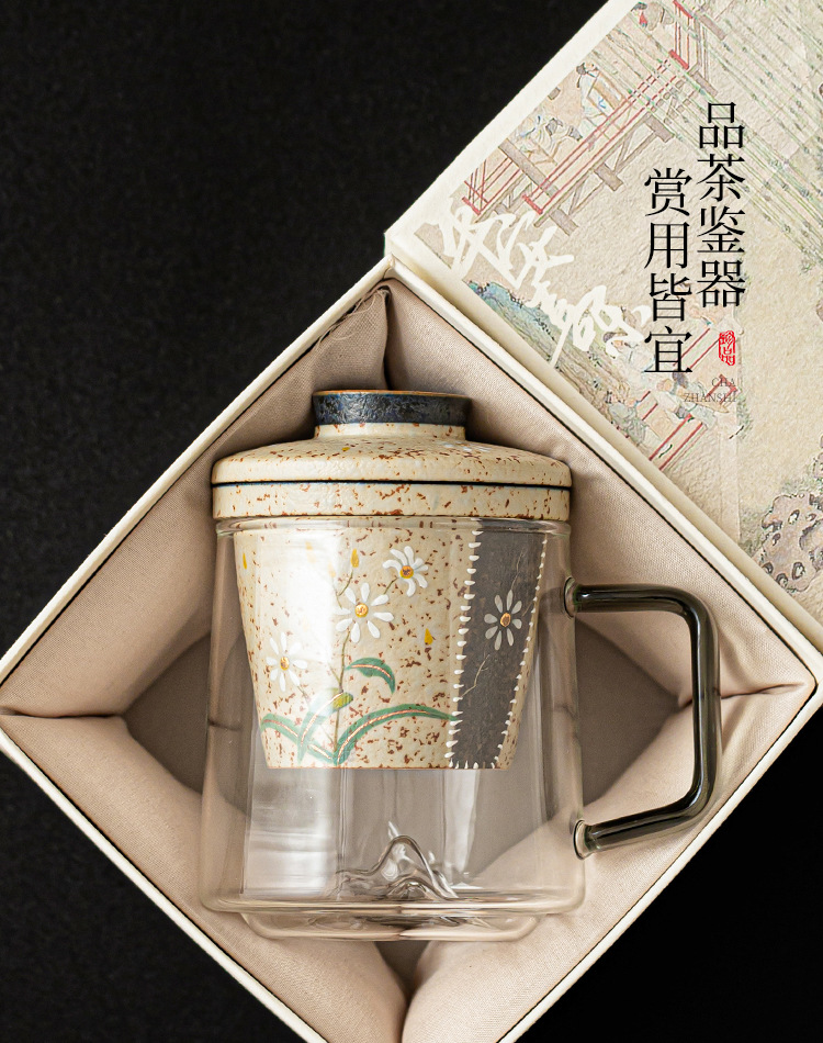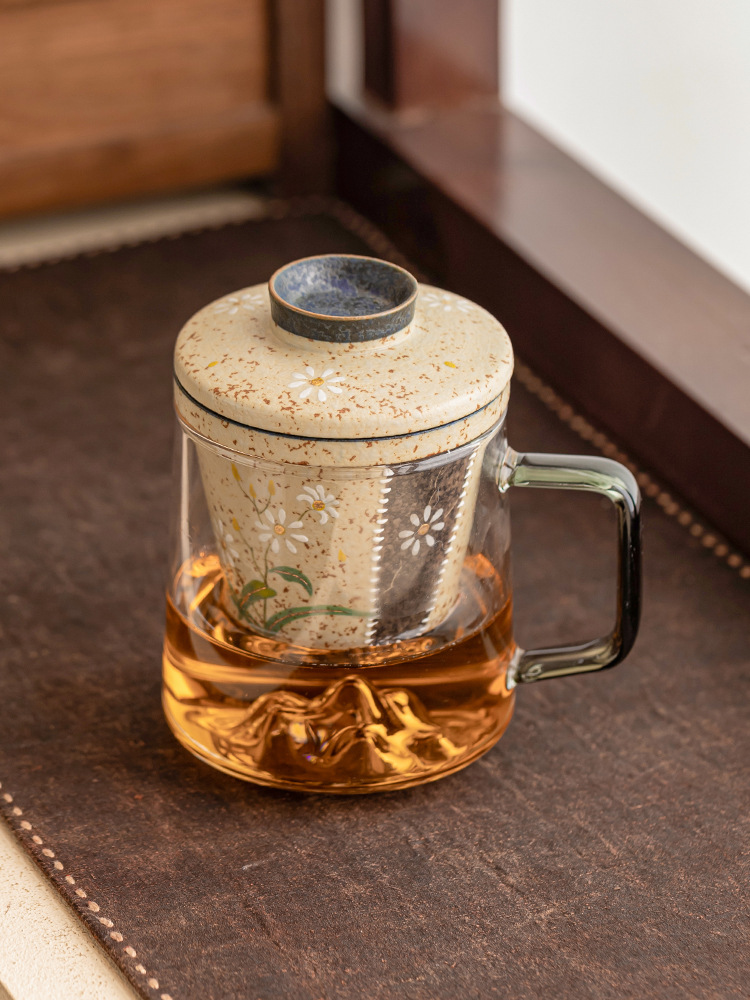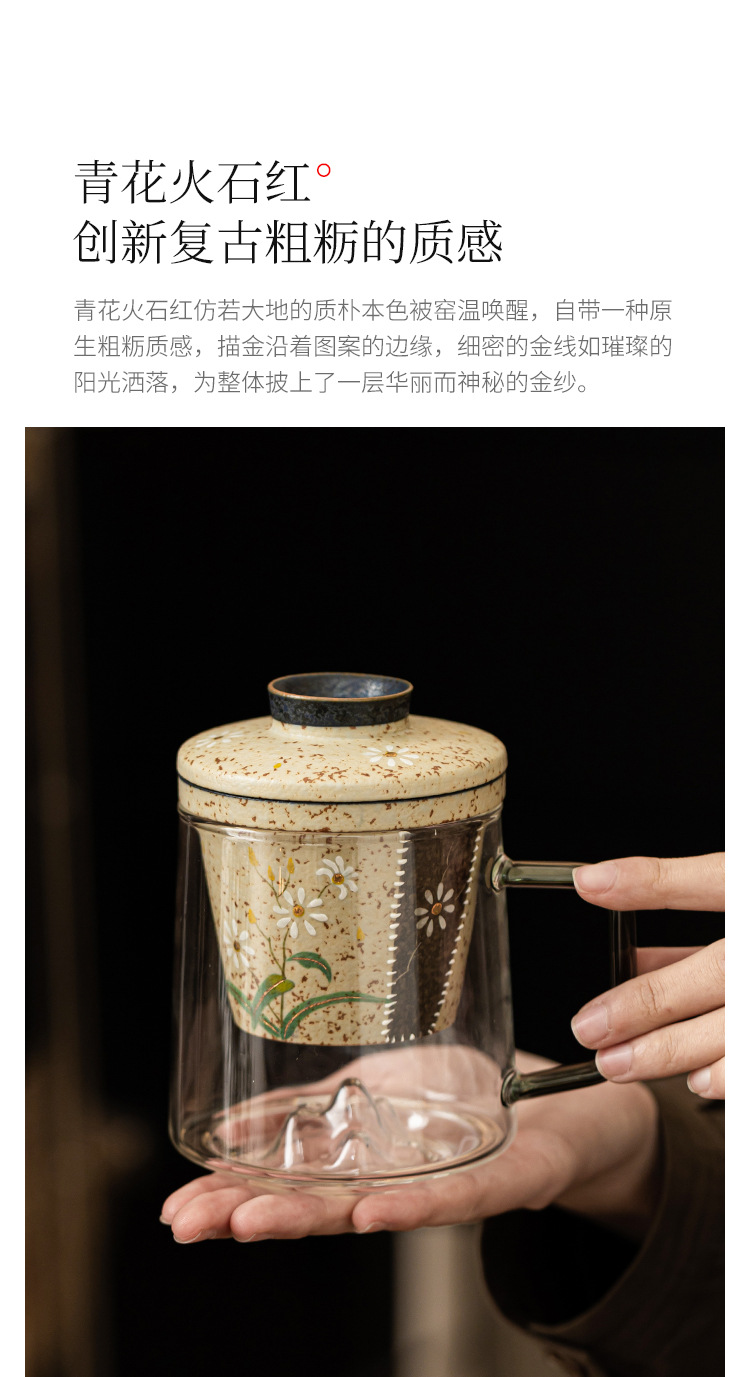 - Cốc trà thủy tinh đỏ đá lửa trắng cốc có tay cầm vẽ tay hoa cúc nhỏ cốc văn phòng tách trà tách trà