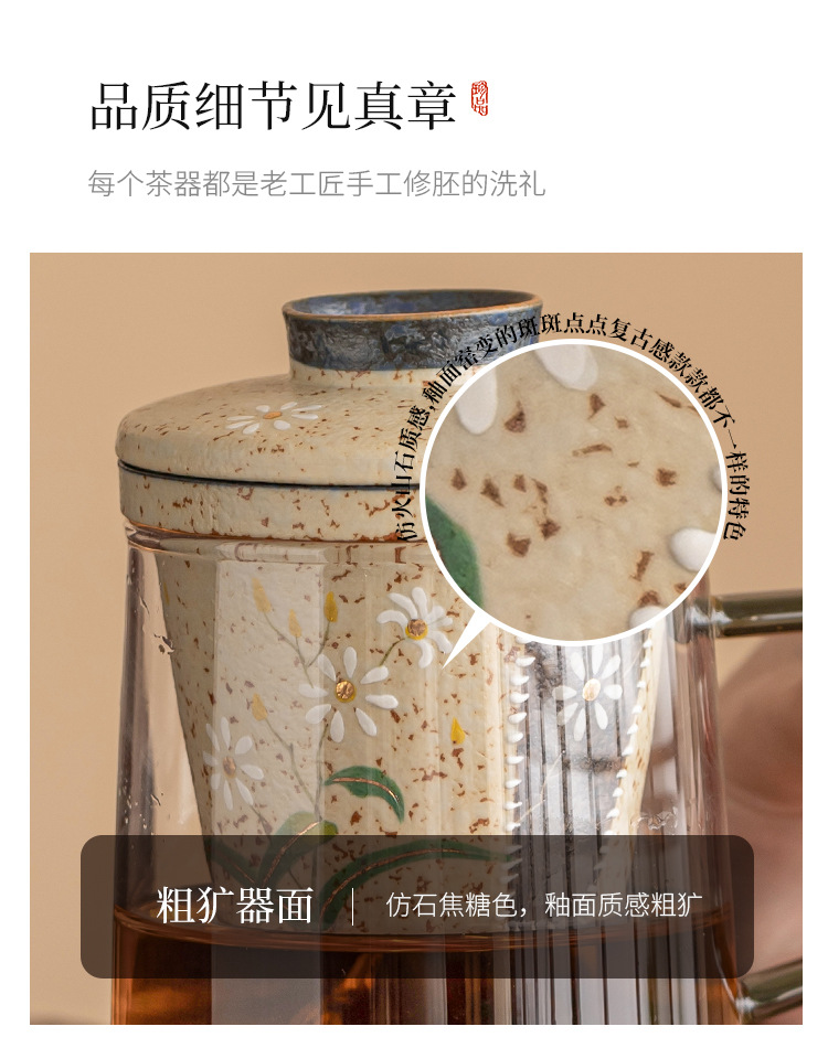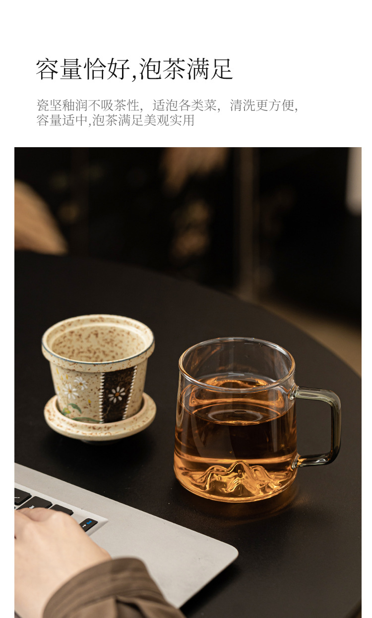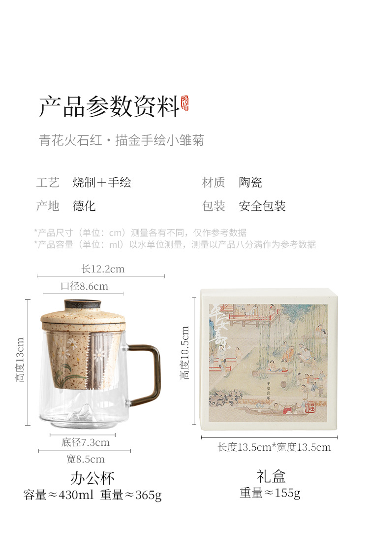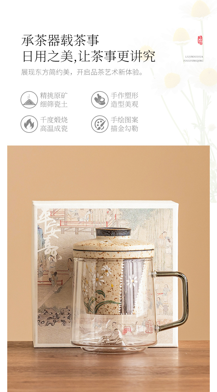 - Cốc trà thủy tinh đỏ đá lửa trắng cốc có tay cầm vẽ tay hoa cúc nhỏ cốc văn phòng tách trà tách trà