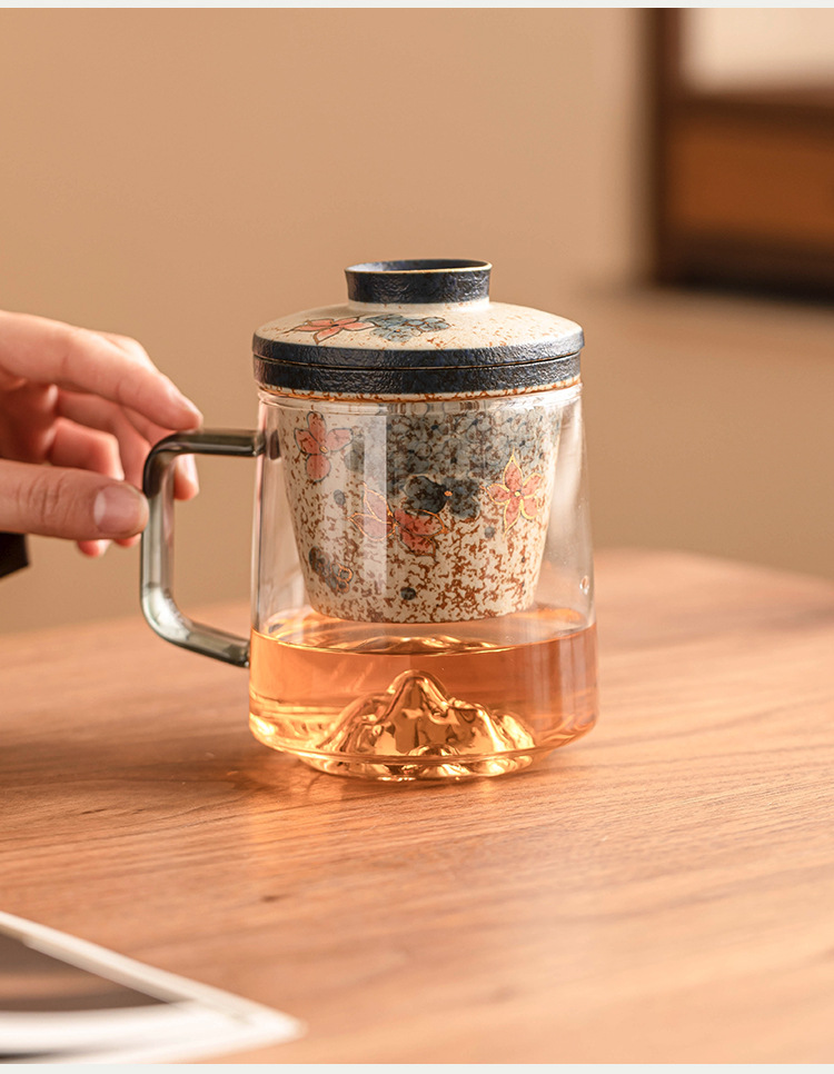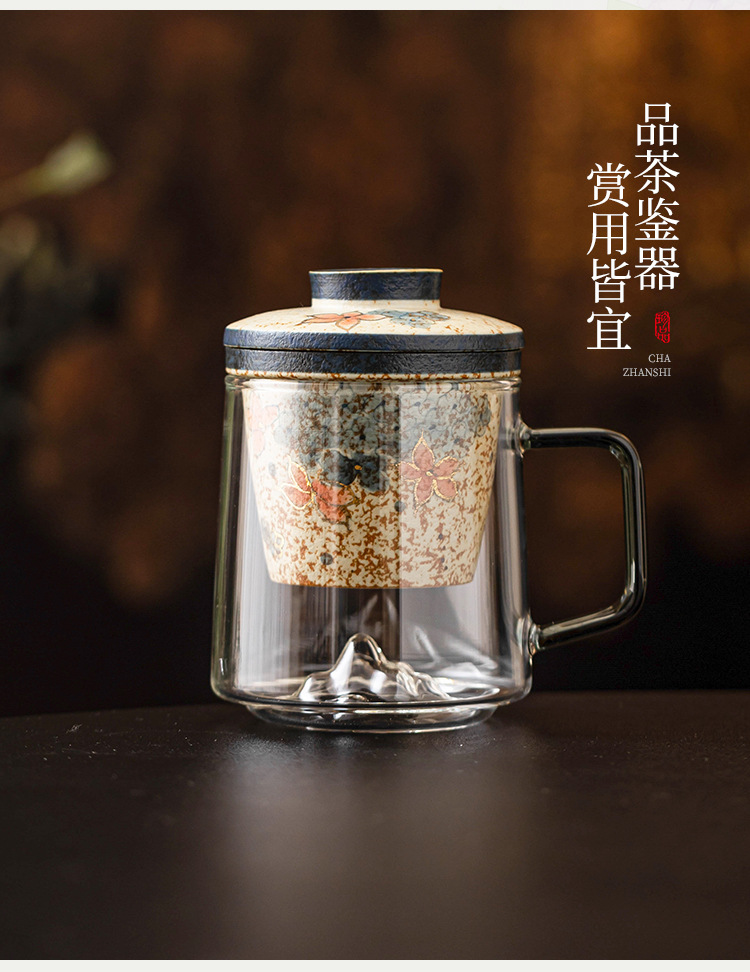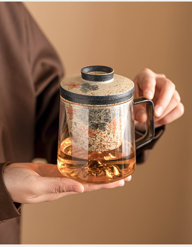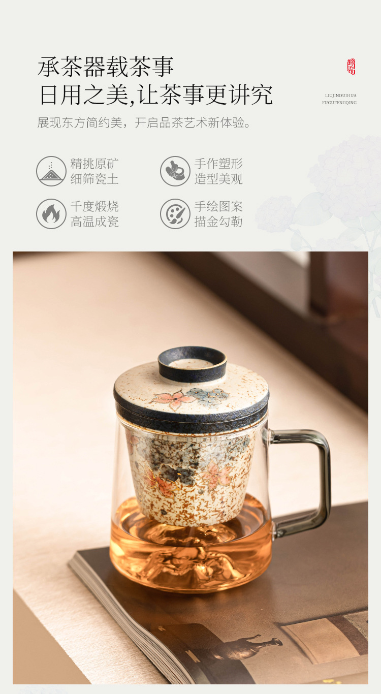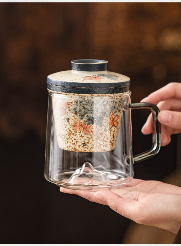 - Cốc trà thủy tinh đỏ lục lam trắng, cốc tách nước trà, cốc văn phòng thêu vàng hoa cẩm tú cầu mây, cốc retro cao cấp