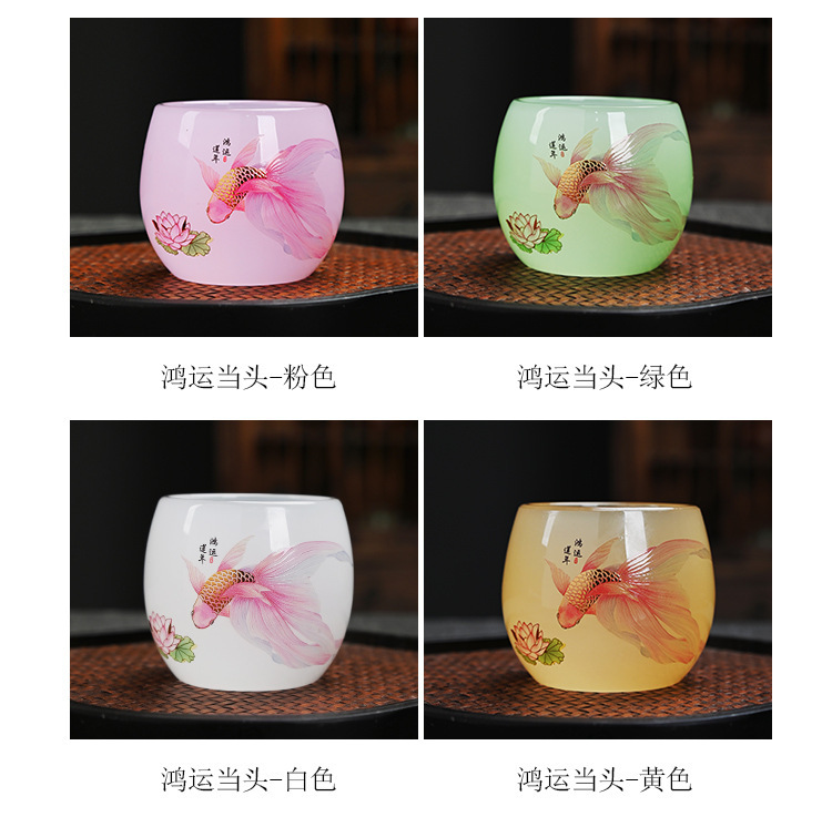 Cốc trà thủy tinh nữ màu hồng cốc chủ nhân gốm sứ cốc trà Kung Fu gia dụng cốc thủy tinh đơn sản phẩm ngọc bích cốc trà bán buôn