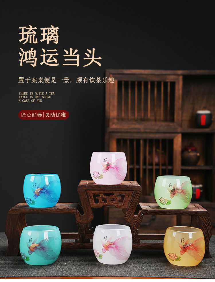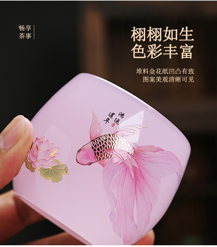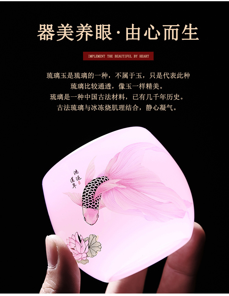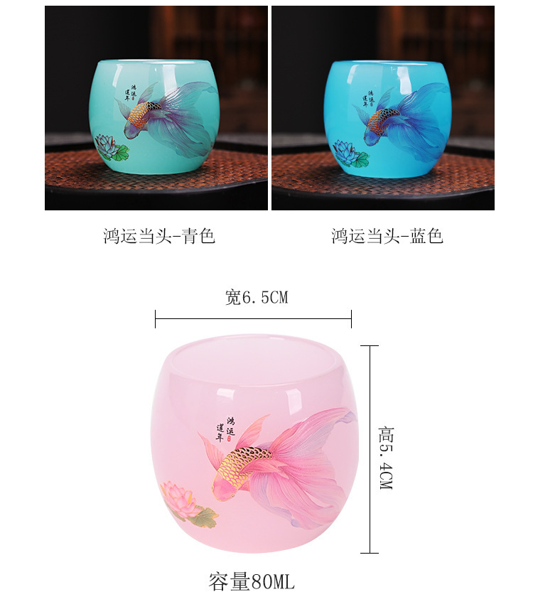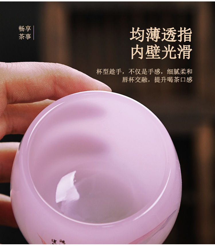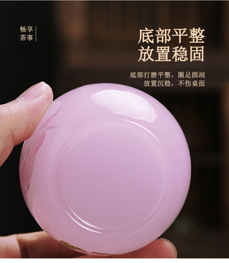 - Cốc trà thủy tinh nữ màu hồng cốc chủ nhân gốm sứ cốc trà Kung Fu gia dụng cốc thủy tinh đơn sản phẩm ngọc bích cốc trà bán buôn