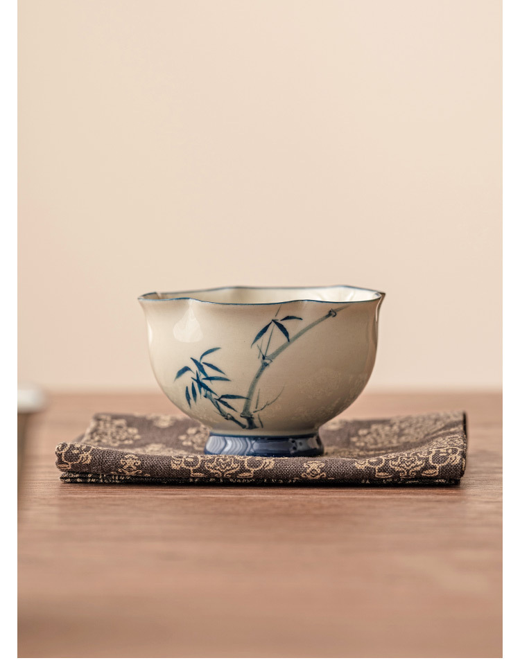 Cốc trà tre gấu trúc xám thực vật cốc gia dụng cốc đơn bộ trà Kung Fu cốc cánh hoa gốm sứ