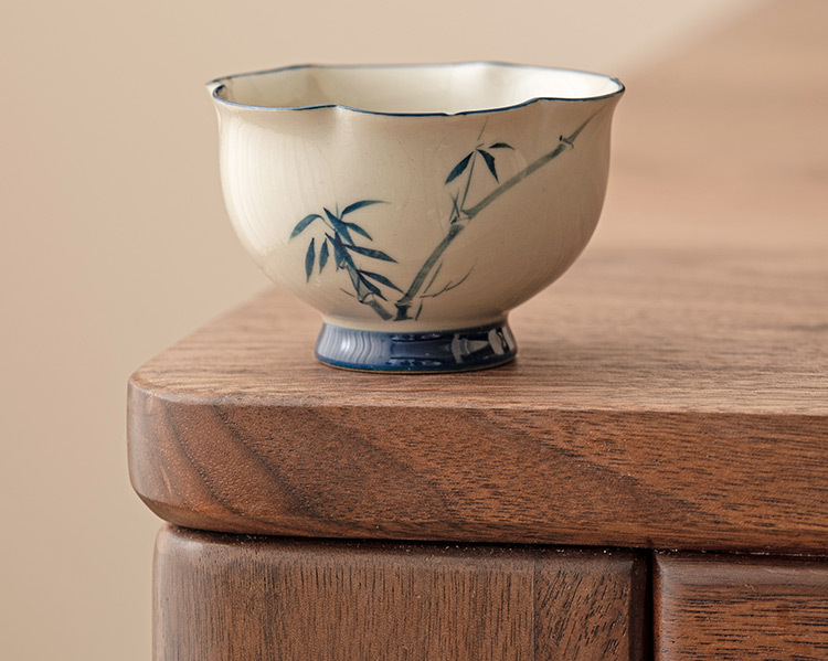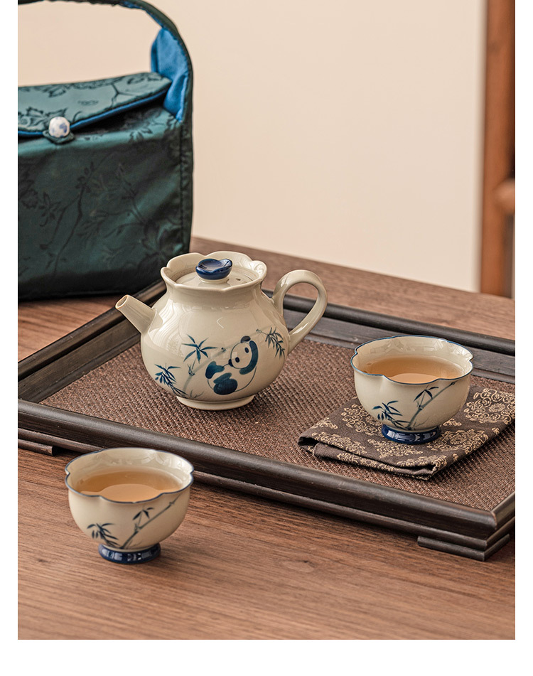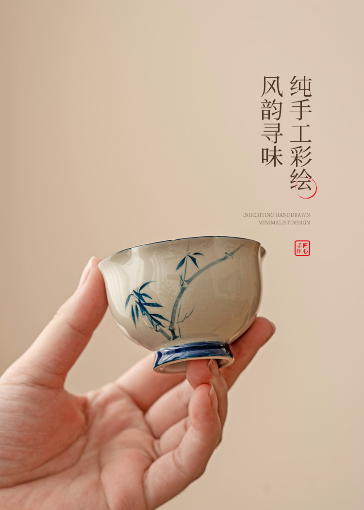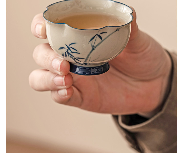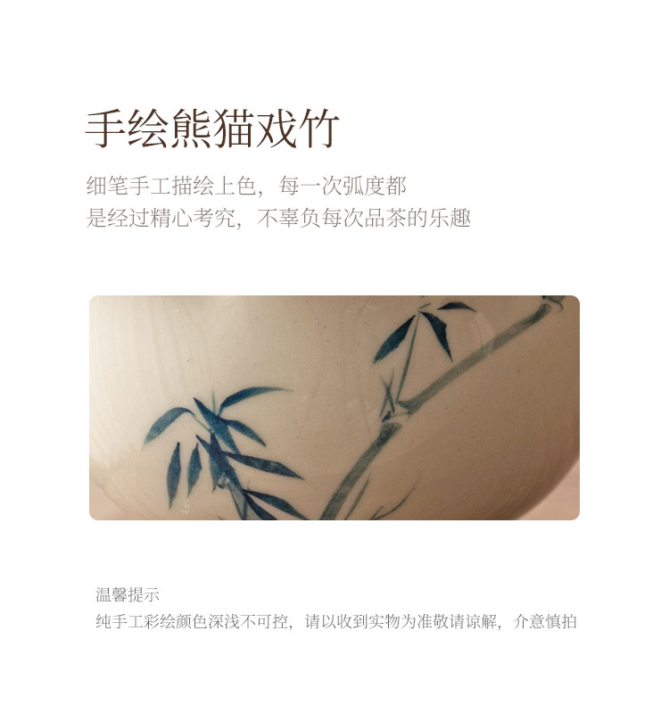 - Cốc trà tre gấu trúc xám thực vật cốc gia dụng cốc đơn bộ trà Kung Fu cốc cánh hoa gốm sứ