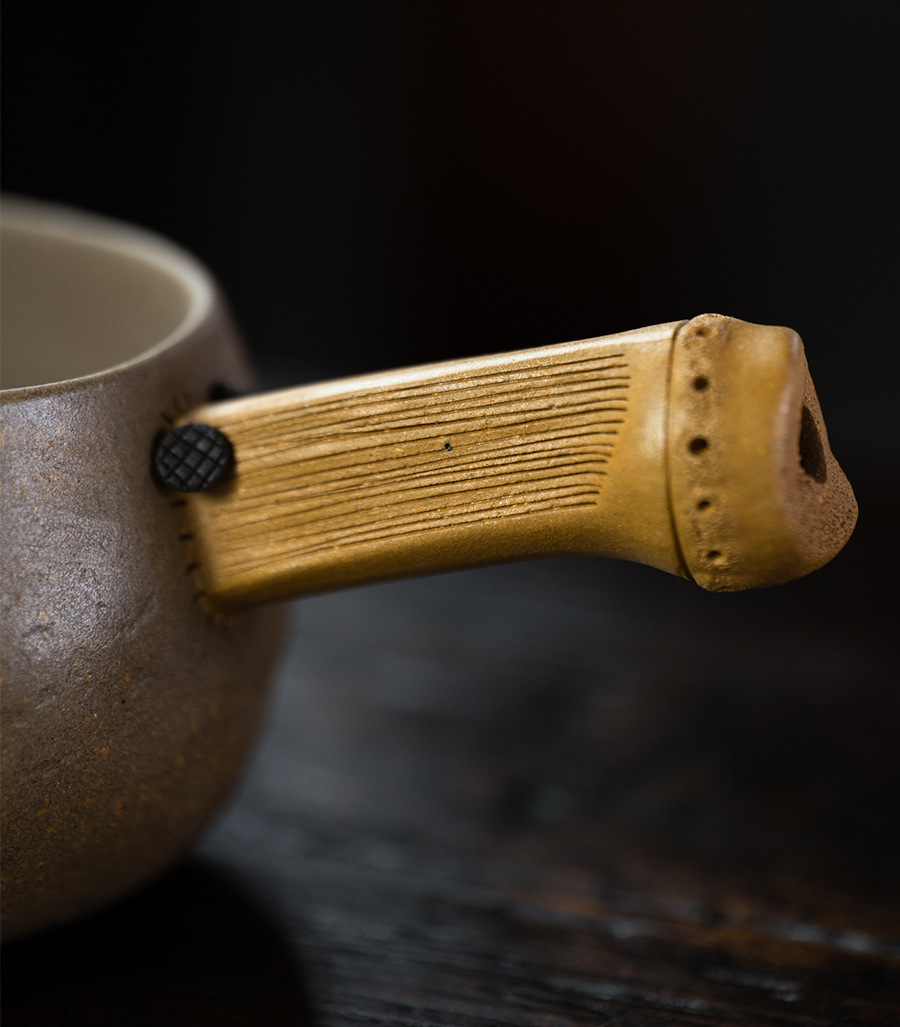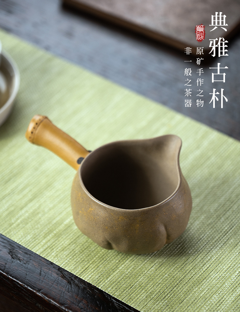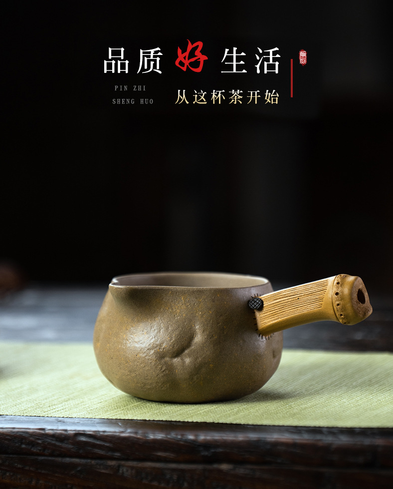 Cốc trà tử sa Nghi Hưng cốc trà tay cầm bằng tre, cốc sữa kiểu Nhật, dụng cụ trà, phụ kiện trà đạo, đồ trang trí cốc công cộng