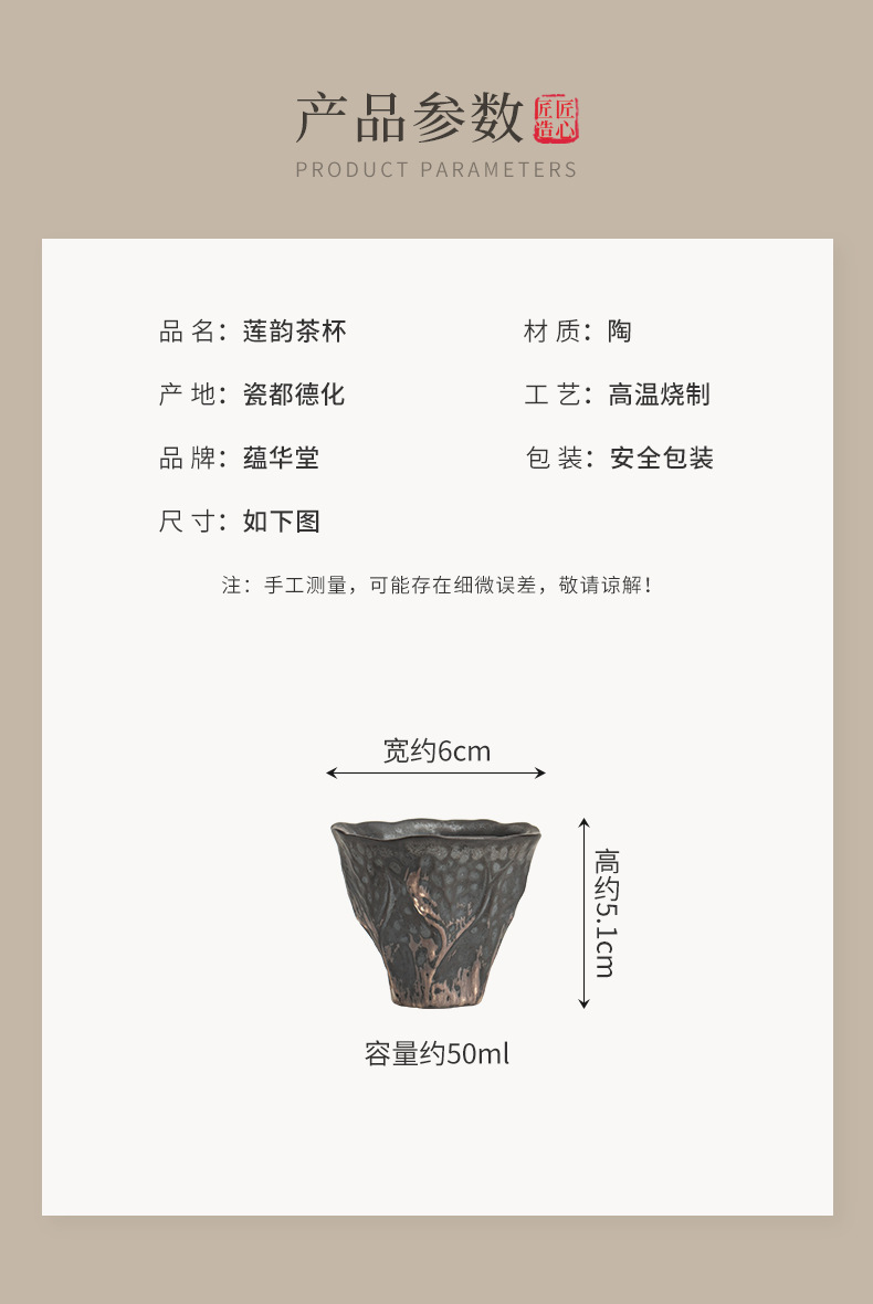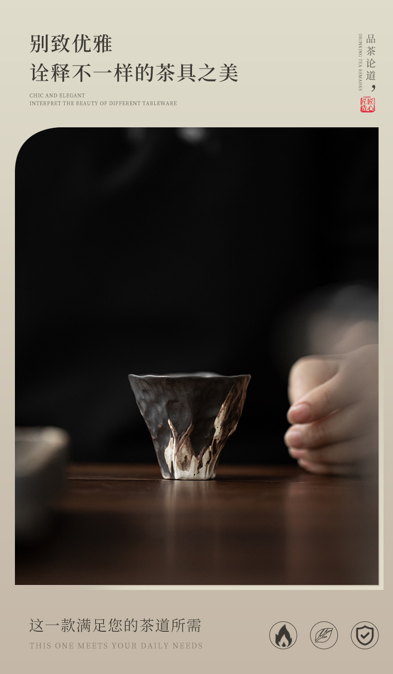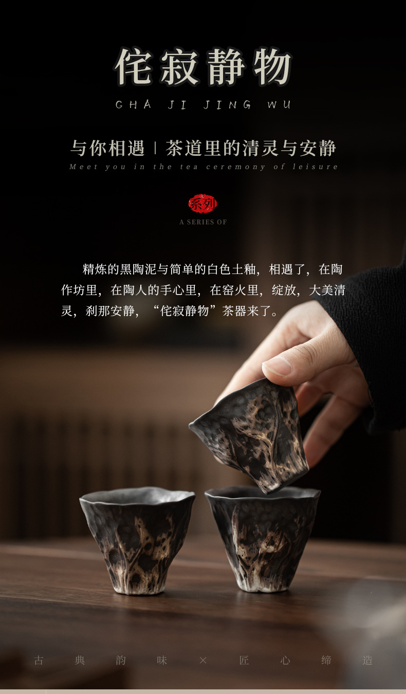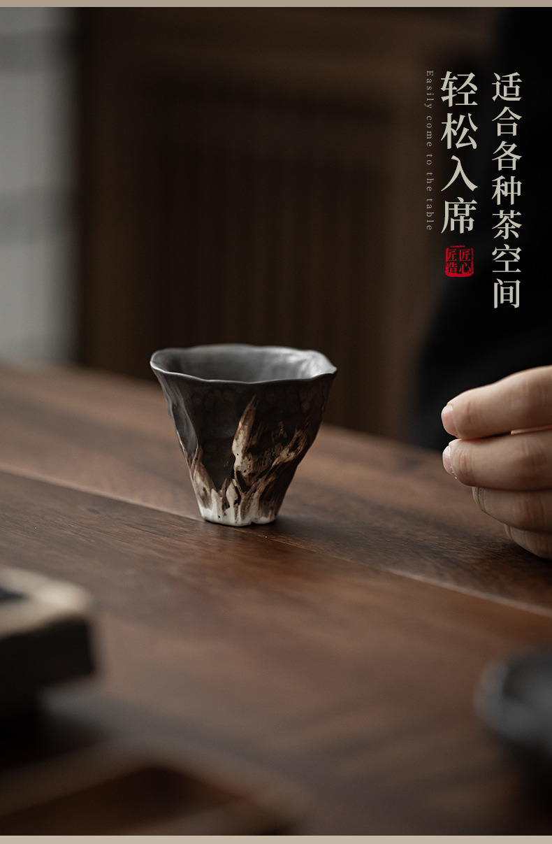 Cốc trà văn hoa sen phong cách Nhật Wabi-Ji Phong cách Nhật Bản, Bộ trà gốm thô, cốc trà, cốc đơn cỡ nhỏ, cốc chủ nhân, cá tính sáng tạo